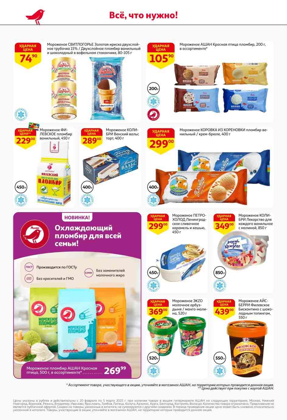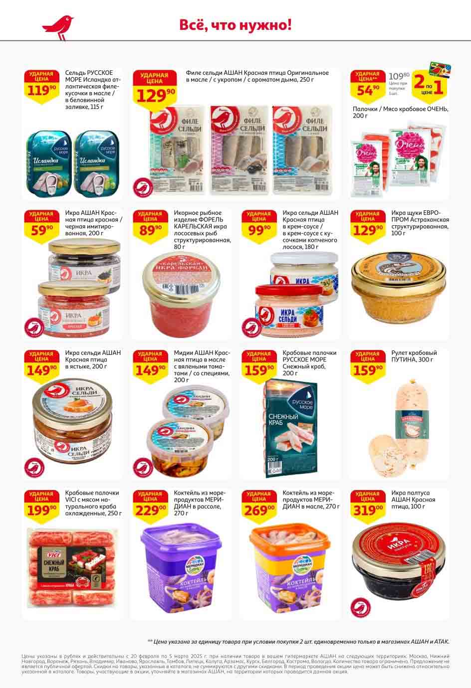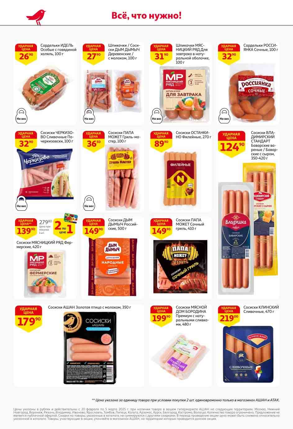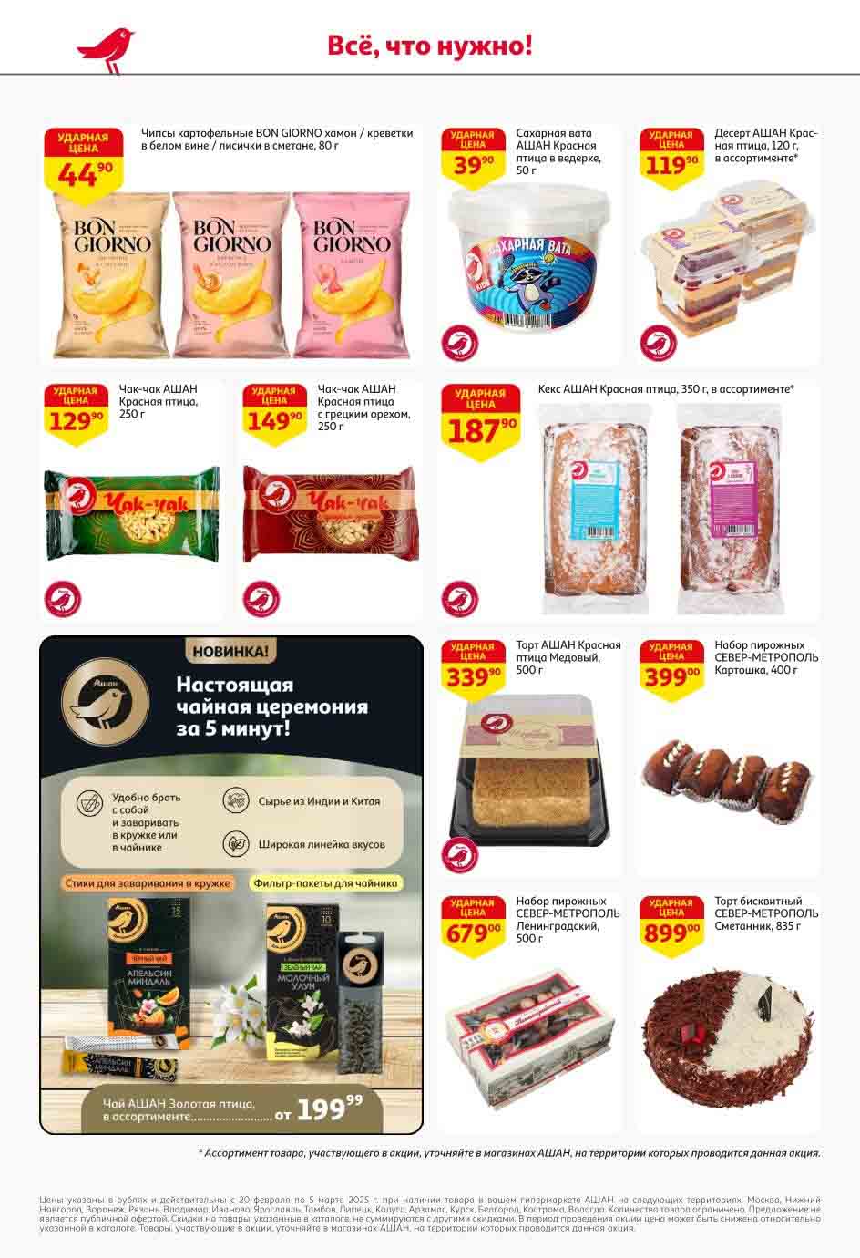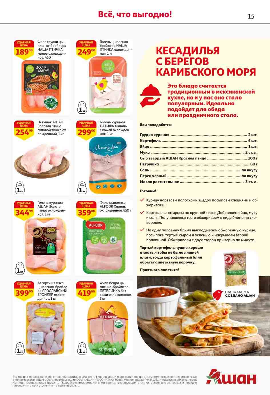 На страницах каталога Ашан вы найдете все свои любимые продукты, которые сейчас предлагаются в супермаркете. Не пропустите последние специальные предложения и сэкономьте на покупках. Предложение действительно при наличии товара на прилавках. Скидки на товары, указанные в каталоге, не суммируются с другими скидками. Изображения товаров могут незначительно отличаться от представленных на полках. Цены по акции Ашан действуют в городах: Москва. Балашиха. Химки. Подольск. Королев. Мытищи. Люберцы. Электросталь. Коломна. Одинцово. Железнодорожный, Серпухов, Орехово-Зуево. Красногорск, Щелково, Сергиев Посад, Пушкино. Жуковский, Ногинск, Раменское и многих других населенных пунктах Московского региона.