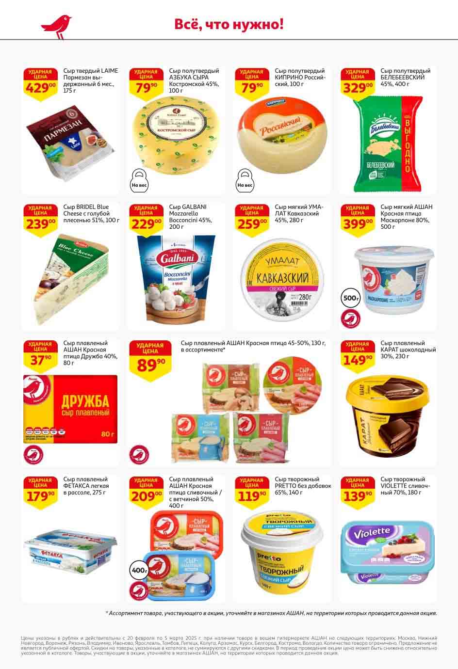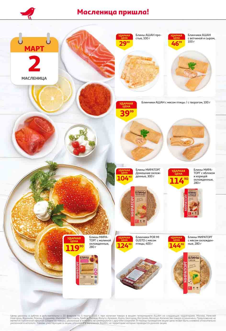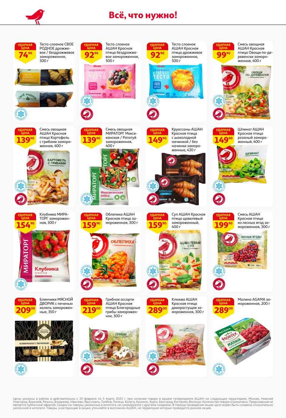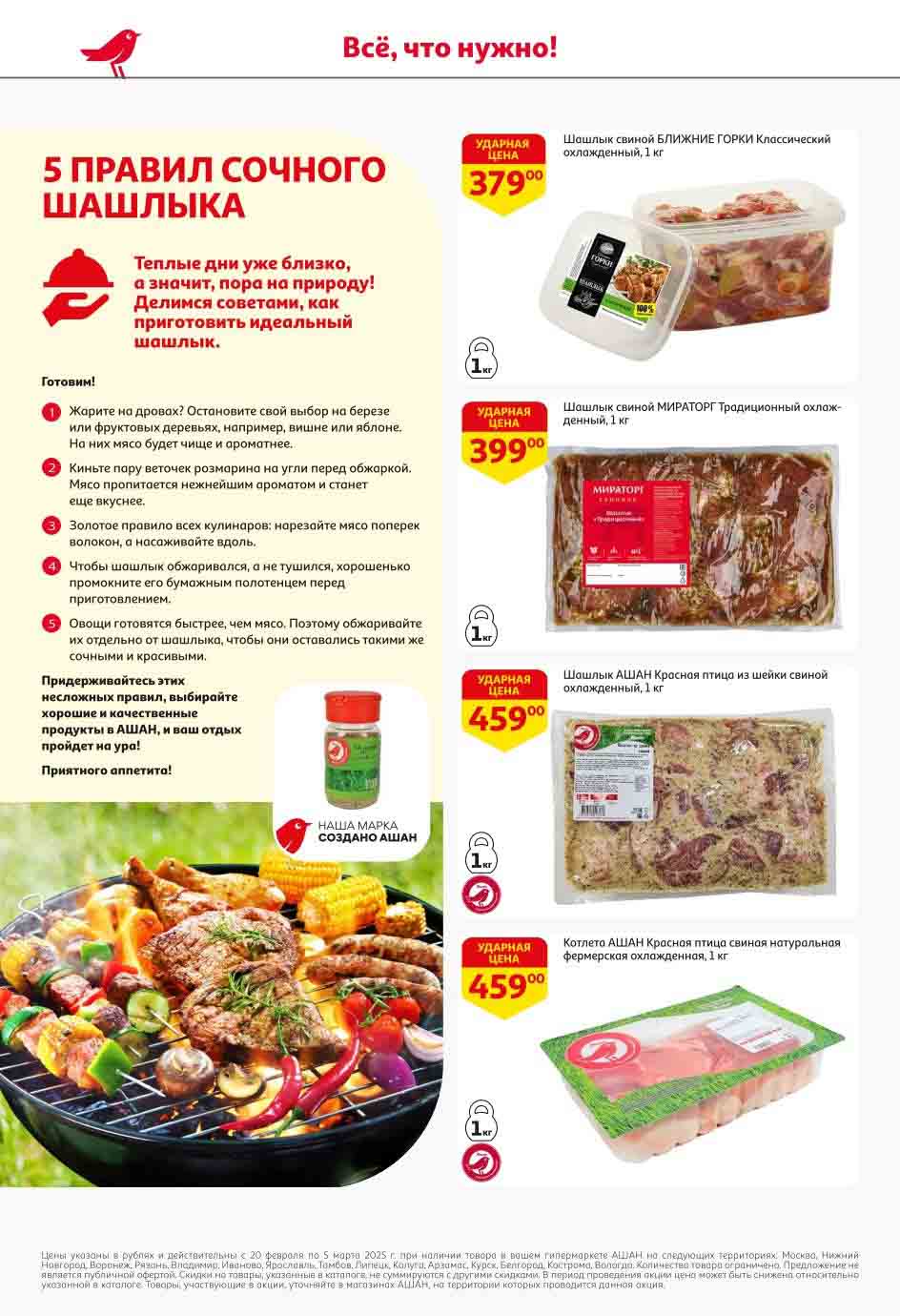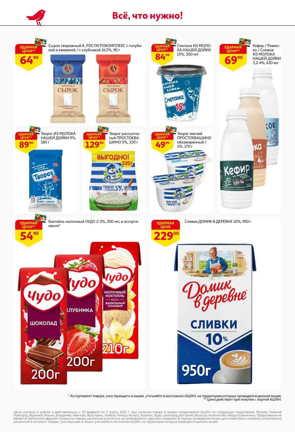 На страницах каталога Ашан вы найдете все свои любимые продукты, которые сейчас предлагаются в супермаркете. Не пропустите последние специальные предложения и сэкономьте на покупках. Предложение действительно при наличии товара на прилавках. Скидки на товары, указанные в каталоге, не суммируются с другими скидками. Изображения товаров могут незначительно отличаться от представленных на полках. Цены по акции Ашан действуют в городах: Москва. Балашиха. Химки. Подольск. Королев. Мытищи. Люберцы. Электросталь. Коломна. Одинцово. Железнодорожный, Серпухов, Орехово-Зуево. Красногорск, Щелково, Сергиев Посад, Пушкино. Жуковский, Ногинск, Раменское и многих других населенных пунктах Московского региона.