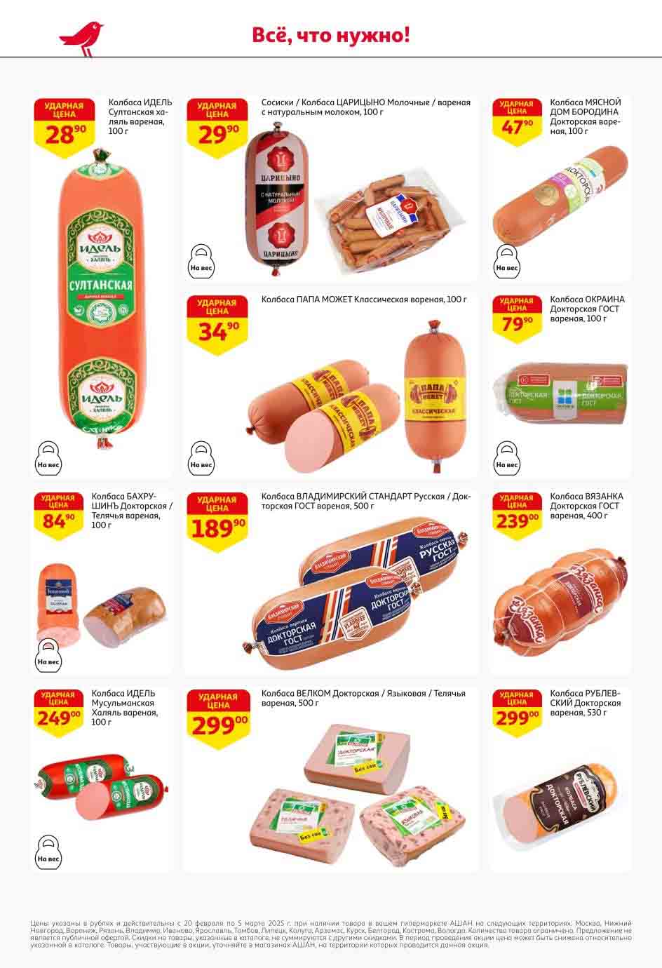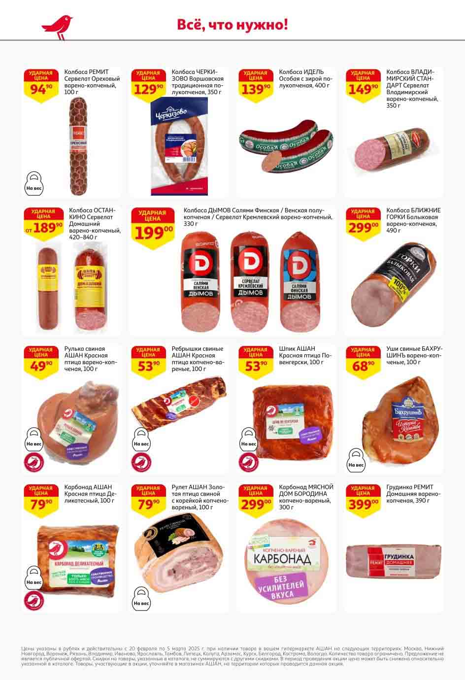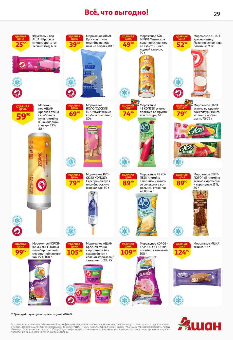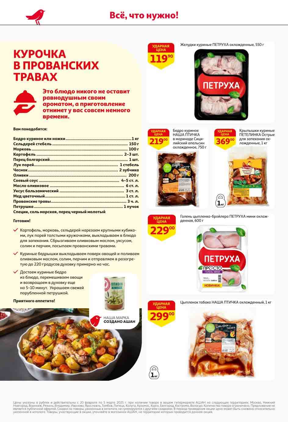 На страницах каталога Ашан вы найдете все свои любимые продукты, которые сейчас предлагаются в супермаркете. Не пропустите последние специальные предложения и сэкономьте на покупках. Предложение действительно при наличии товара на прилавках. Скидки на товары, указанные в каталоге, не суммируются с другими скидками. Изображения товаров могут незначительно отличаться от представленных на полках. Цены по акции Ашан действуют в городах: Москва. Балашиха. Химки. Подольск. Королев. Мытищи. Люберцы. Электросталь. Коломна. Одинцово. Железнодорожный, Серпухов, Орехово-Зуево. Красногорск, Щелково, Сергиев Посад, Пушкино. Жуковский, Ногинск, Раменское и многих других населенных пунктах Московского региона.