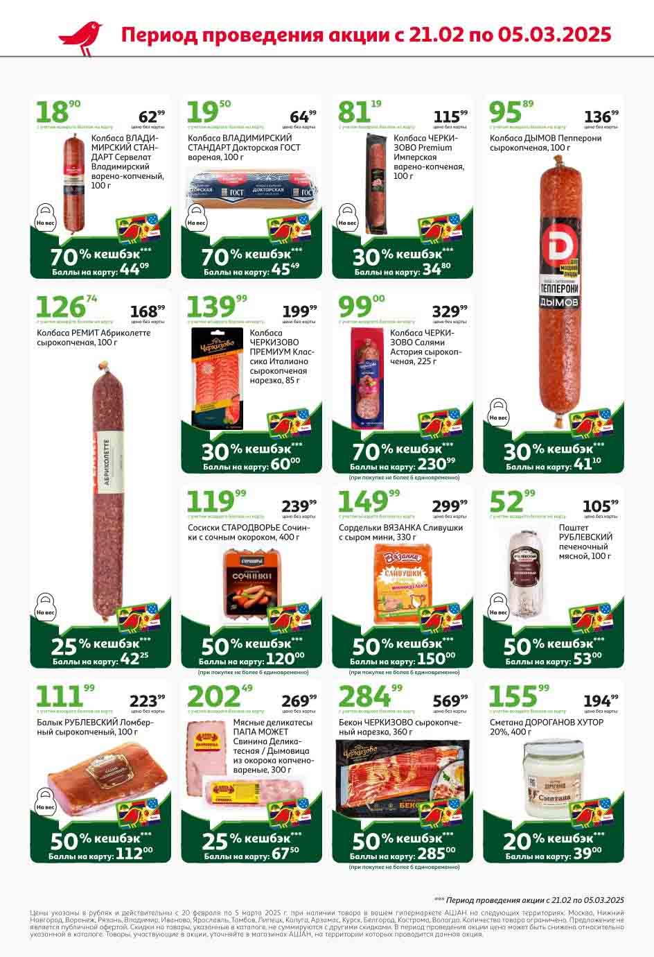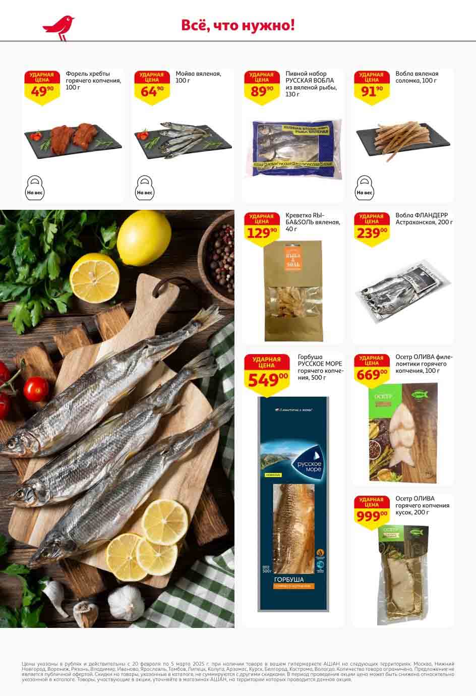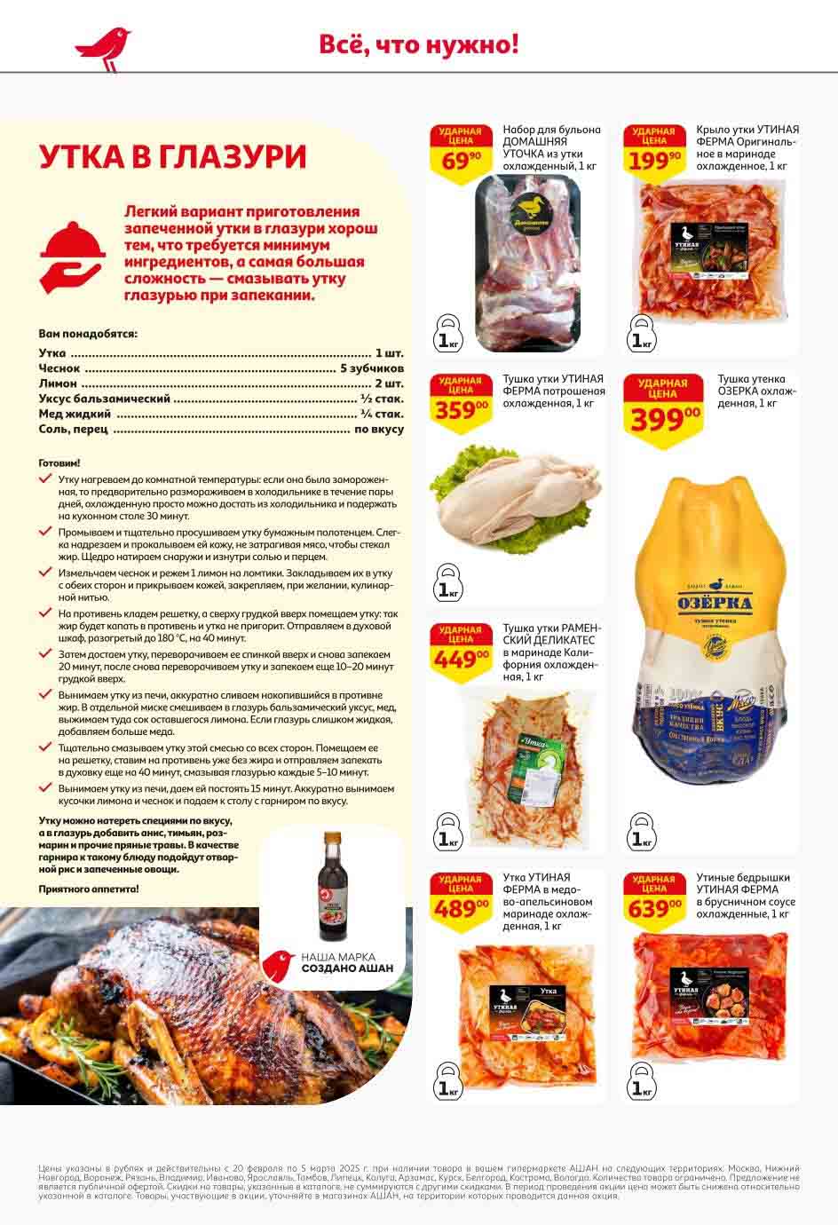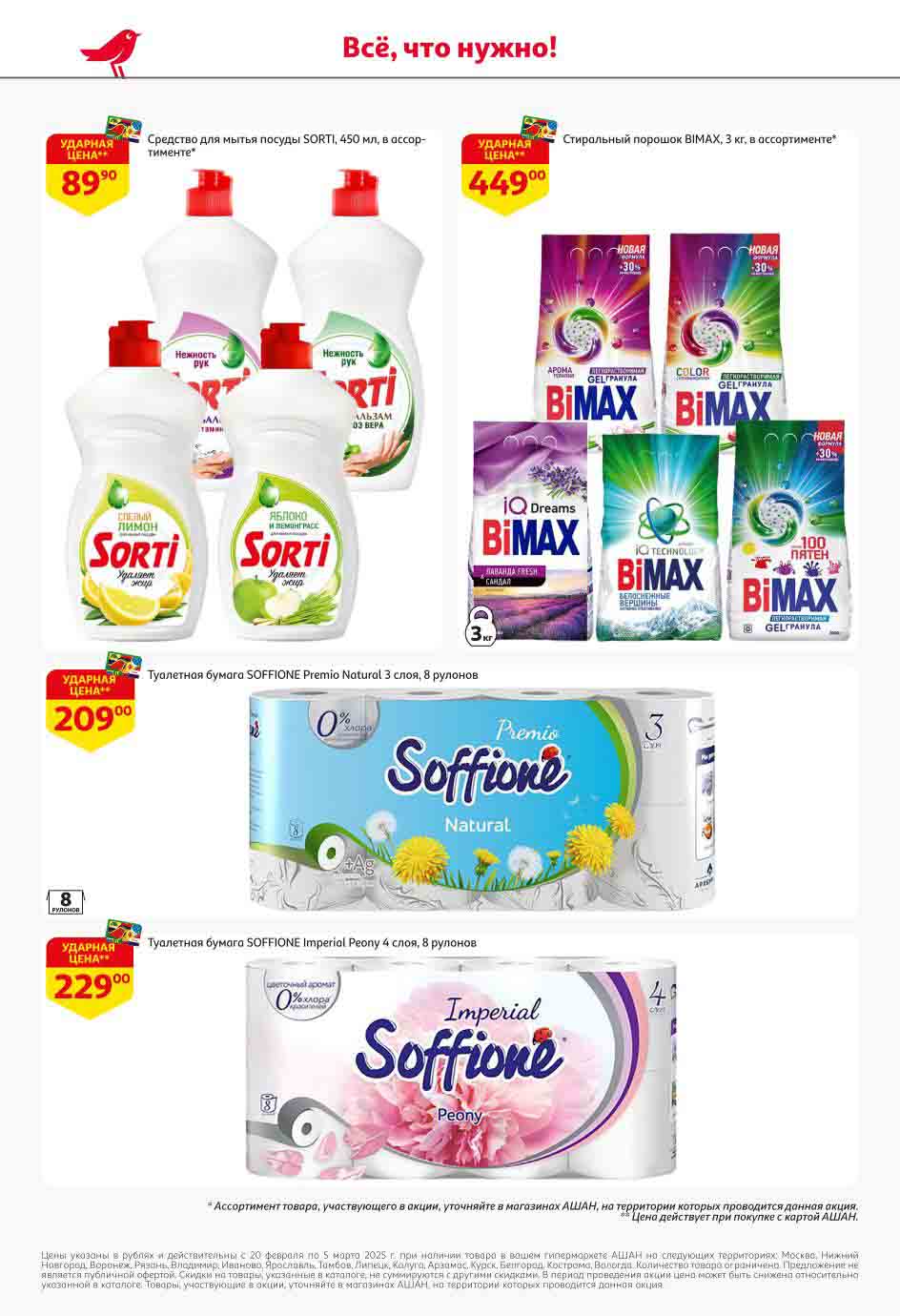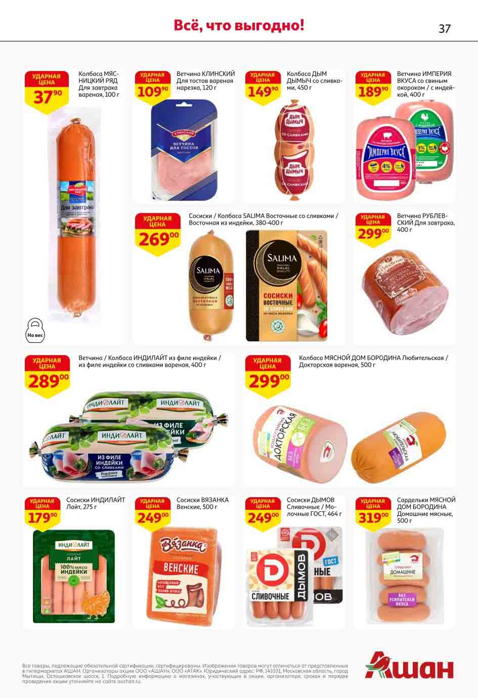 На страницах каталога Ашан вы найдете все свои любимые продукты, которые сейчас предлагаются в супермаркете. Не пропустите последние специальные предложения и сэкономьте на покупках. Предложение действительно при наличии товара на прилавках. Скидки на товары, указанные в каталоге, не суммируются с другими скидками. Изображения товаров могут незначительно отличаться от представленных на полках. Цены по акции Ашан действуют в городах: Москва. Балашиха. Химки. Подольск. Королев. Мытищи. Люберцы. Электросталь. Коломна. Одинцово. Железнодорожный, Серпухов, Орехово-Зуево. Красногорск, Щелково, Сергиев Посад, Пушкино. Жуковский, Ногинск, Раменское и многих других населенных пунктах Московского региона.