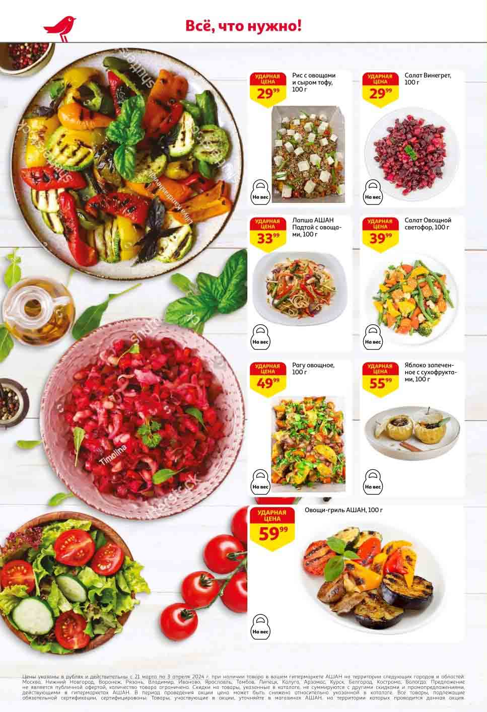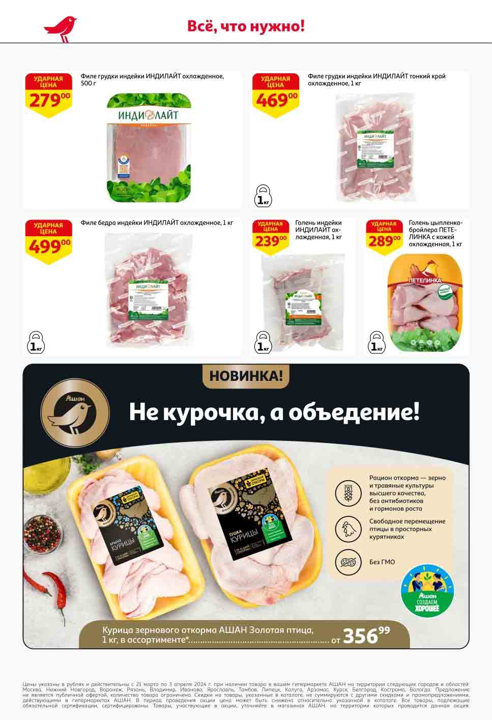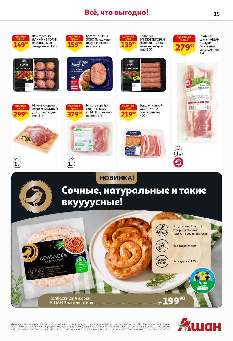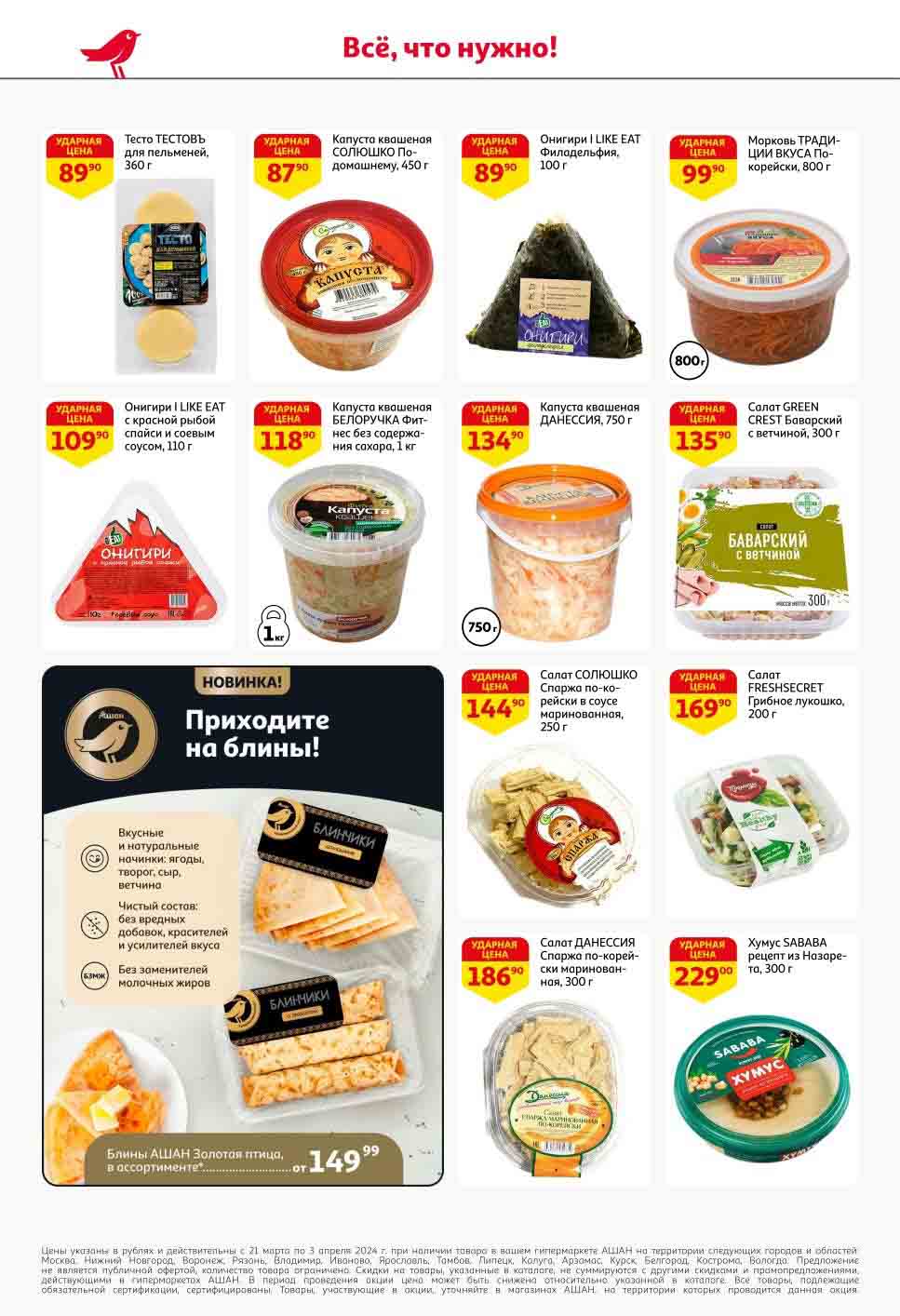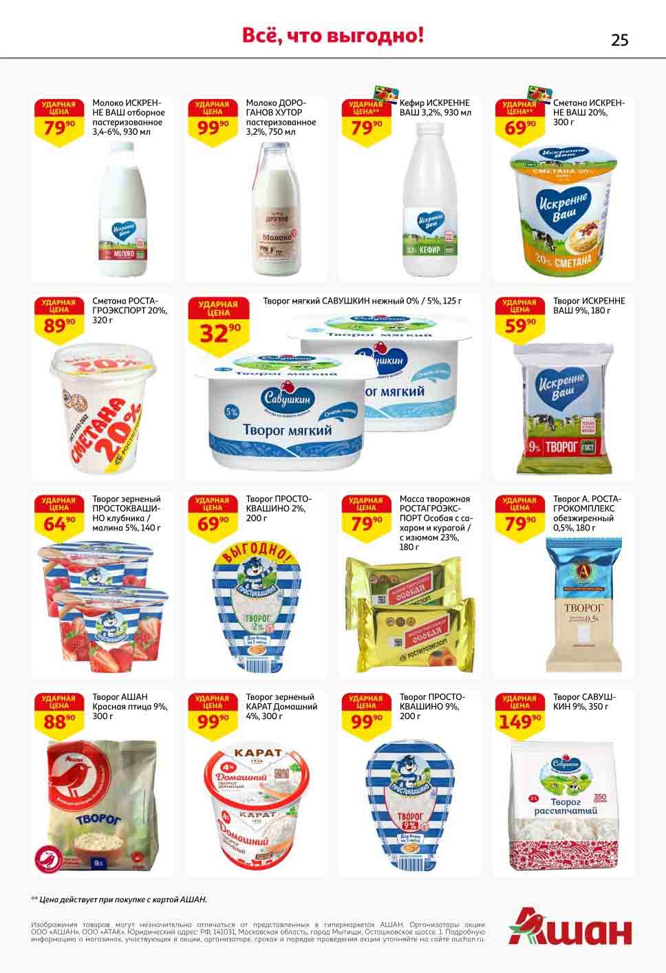 На страницах каталога Ашан вы найдете все свои любимые продукты, которые сейчас предлагаются в супермаркете. Не пропустите последние специальные предложения и сэкономьте на покупках. Предложение действительно при наличии товара на прилавках. Скидки на товары, указанные в каталоге, не суммируются с другими скидками. Изображения товаров могут незначительно отличаться от представленных на полках. Цены по акции Ашан действуют в городах: Москва. Балашиха. Химки. Подольск. Королев. Мытищи. Люберцы. Электросталь. Коломна. Одинцово. Железнодорожный, Серпухов, Орехово-Зуево. Красногорск, Щелково, Сергиев Посад, Пушкино. Жуковский, Ногинск, Раменское и многих других населенных пунктах Московского региона.