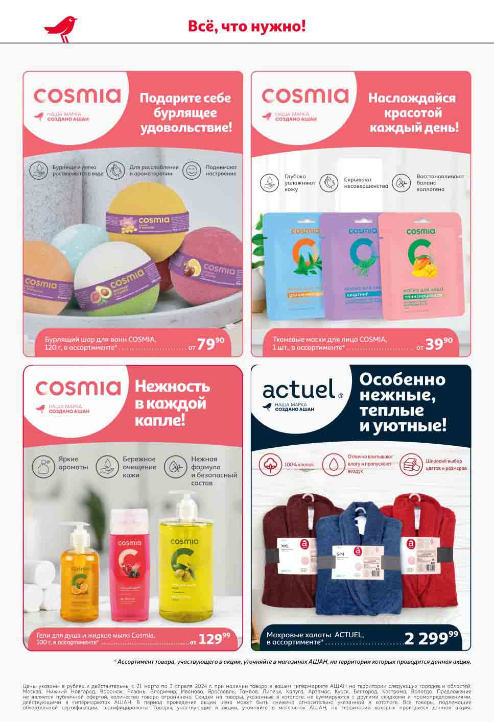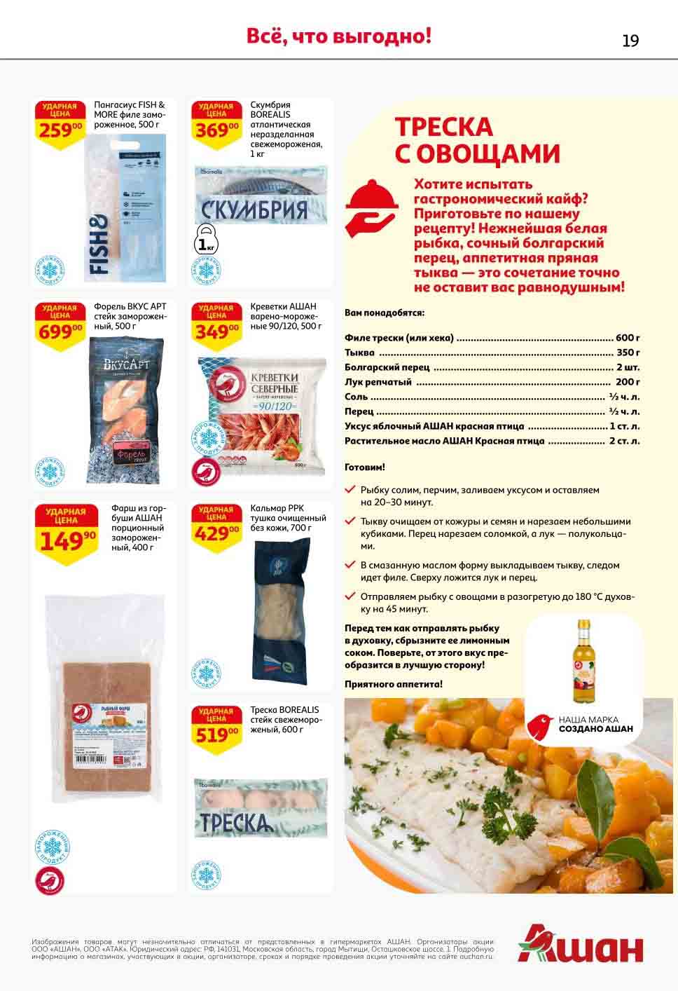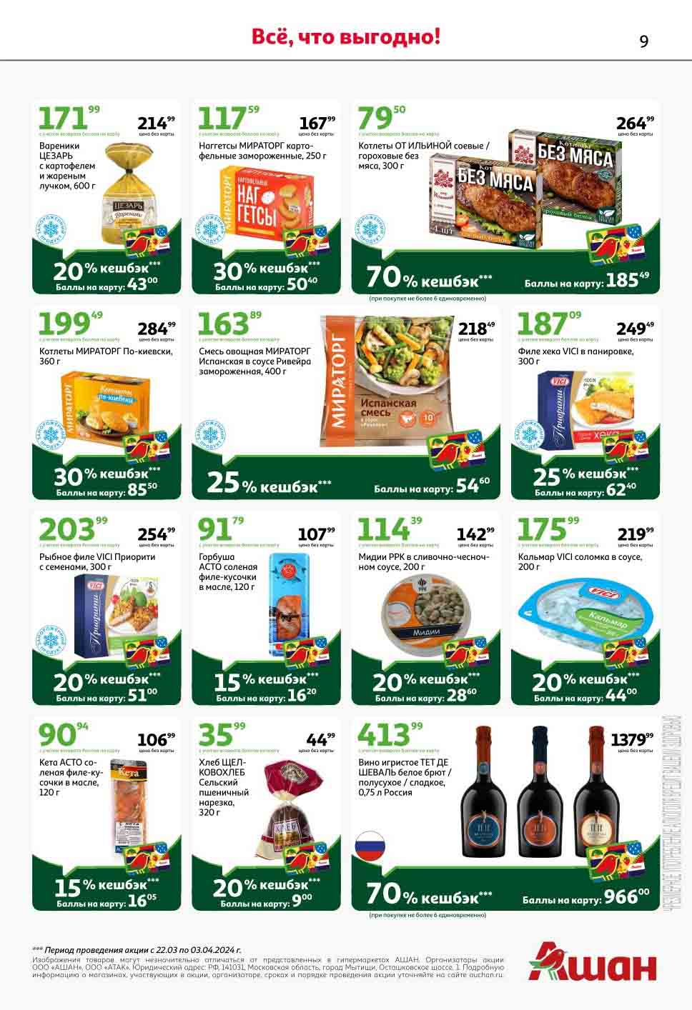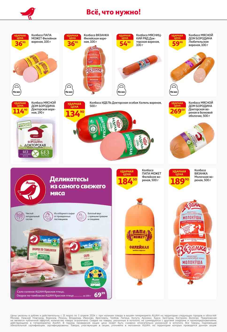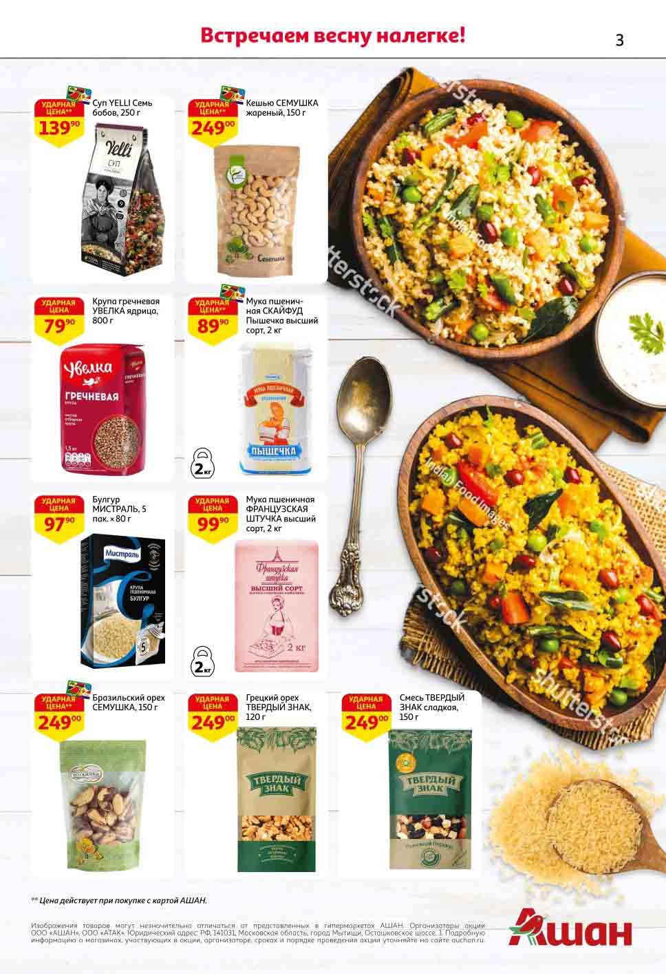 На страницах каталога Ашан вы найдете все свои любимые продукты, которые сейчас предлагаются в супермаркете. Не пропустите последние специальные предложения и сэкономьте на покупках. Предложение действительно при наличии товара на прилавках. Скидки на товары, указанные в каталоге, не суммируются с другими скидками. Изображения товаров могут незначительно отличаться от представленных на полках. Цены по акции Ашан действуют в городах: Москва. Балашиха. Химки. Подольск. Королев. Мытищи. Люберцы. Электросталь. Коломна. Одинцово. Железнодорожный, Серпухов, Орехово-Зуево. Красногорск, Щелково, Сергиев Посад, Пушкино. Жуковский, Ногинск, Раменское и многих других населенных пунктах Московского региона.