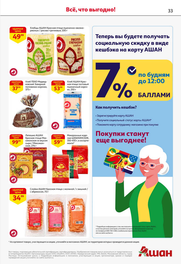 Подробную информацию об правилах, адресах и скидках узнавайте в магазинах или по тел. 8 800 700-58-00 и на сайте: auchan.ru