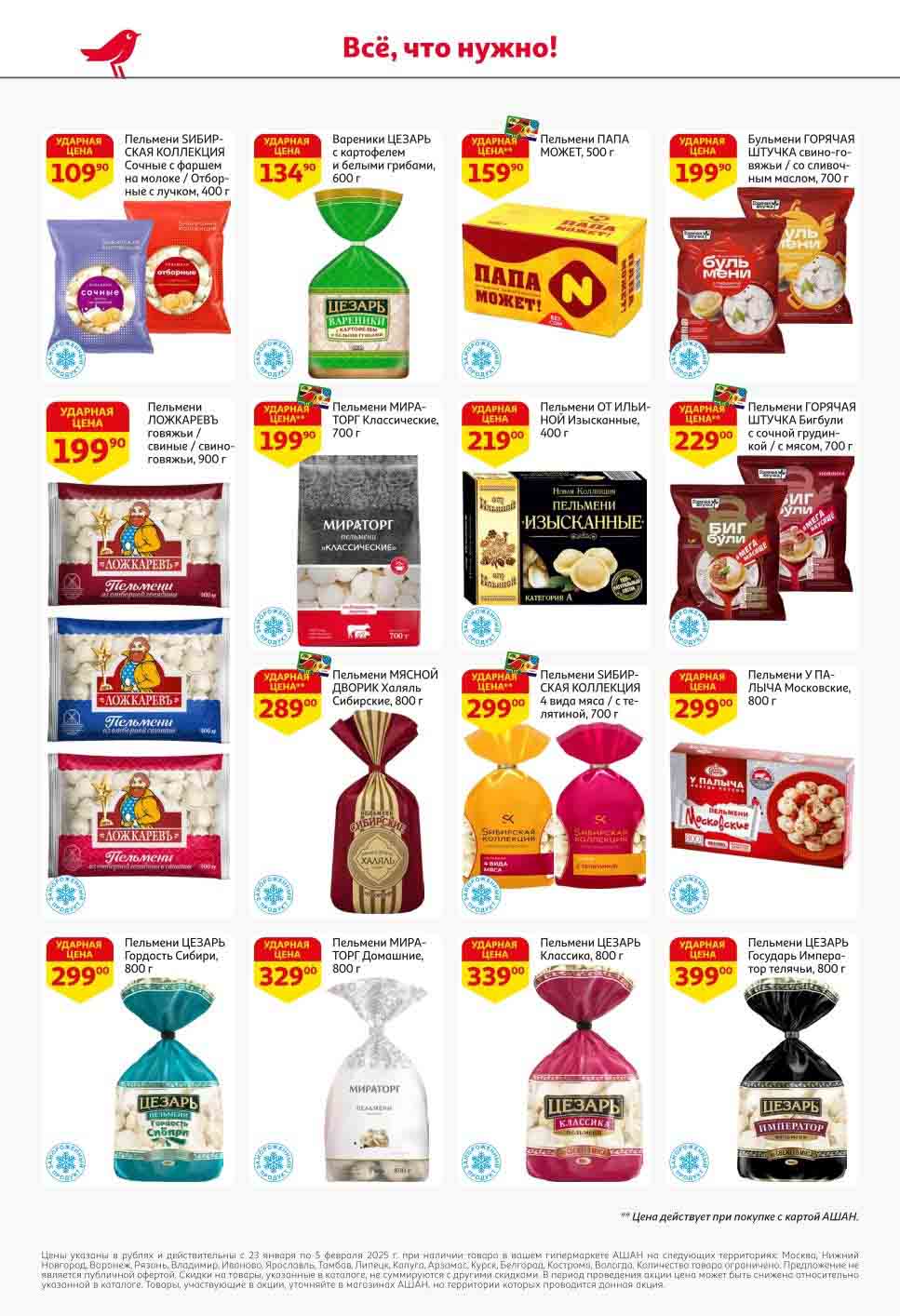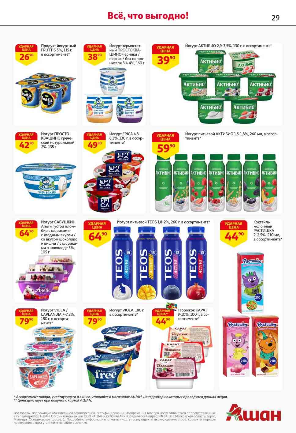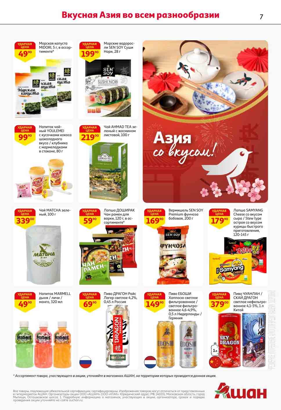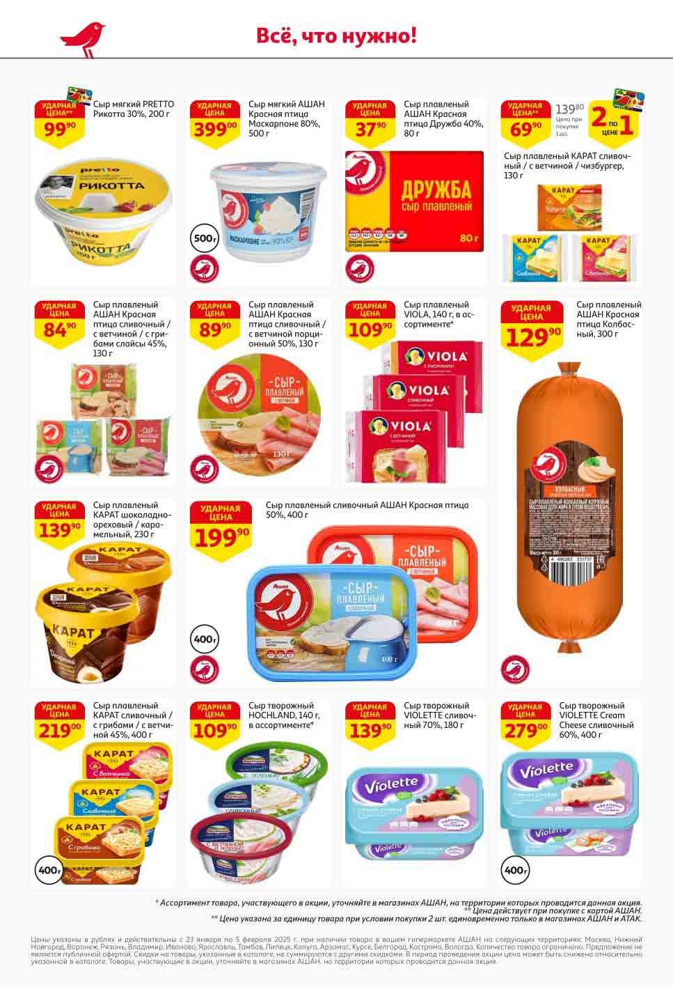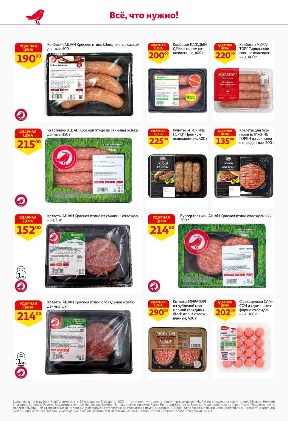 На страницах каталога Ашан вы найдете все свои любимые продукты, которые сейчас предлагаются в супермаркете. Не пропустите последние специальные предложения и сэкономьте на покупках. Предложение действительно при наличии товара на прилавках. Скидки на товары, указанные в каталоге, не суммируются с другими скидками. Изображения товаров могут незначительно отличаться от представленных на полках. Цены по акции Ашан действуют в городах: Москва. Балашиха. Химки. Подольск. Королев. Мытищи. Люберцы. Электросталь. Коломна. Одинцово. Железнодорожный, Серпухов, Орехово-Зуево. Красногорск, Щелково, Сергиев Посад, Пушкино. Жуковский, Ногинск, Раменское и многих других населенных пунктах Московского региона.