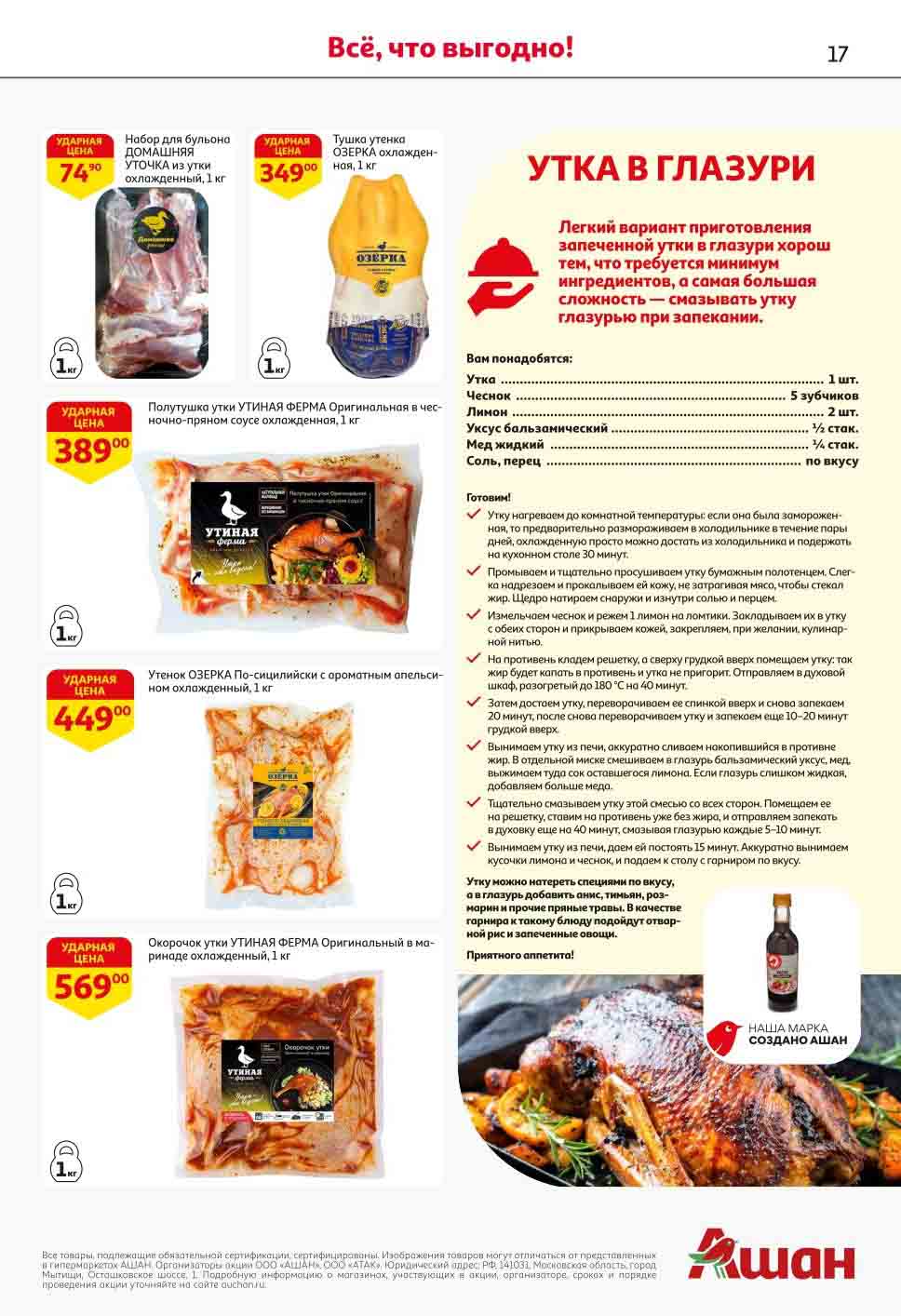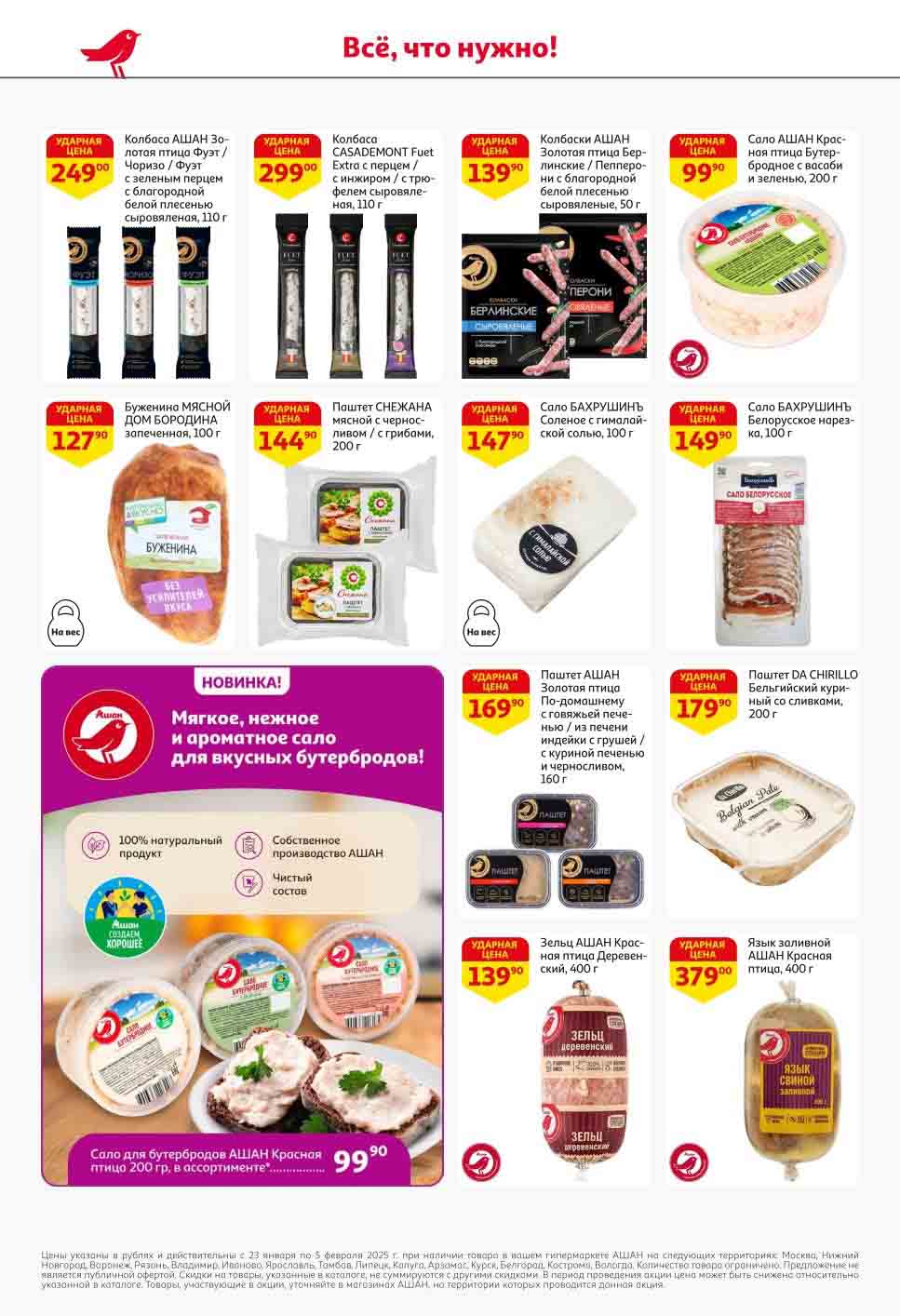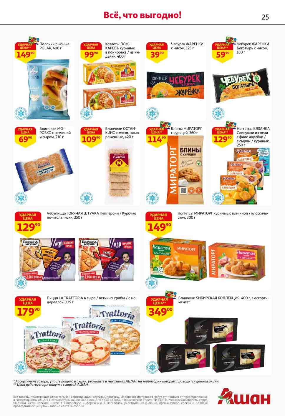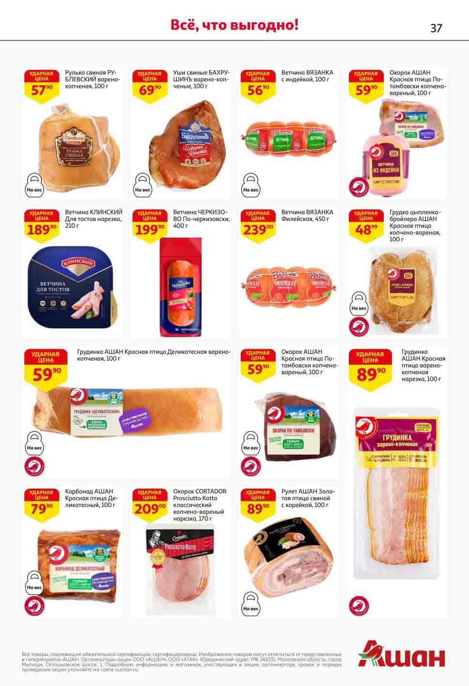 На страницах каталога Ашан вы найдете все свои любимые продукты, которые сейчас предлагаются в супермаркете. Не пропустите последние специальные предложения и сэкономьте на покупках. Предложение действительно при наличии товара на прилавках. Скидки на товары, указанные в каталоге, не суммируются с другими скидками. Изображения товаров могут незначительно отличаться от представленных на полках. Цены по акции Ашан действуют в городах: Москва. Балашиха. Химки. Подольск. Королев. Мытищи. Люберцы. Электросталь. Коломна. Одинцово. Железнодорожный, Серпухов, Орехово-Зуево. Красногорск, Щелково, Сергиев Посад, Пушкино. Жуковский, Ногинск, Раменское и многих других населенных пунктах Московского региона.