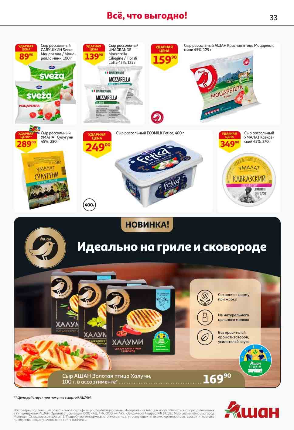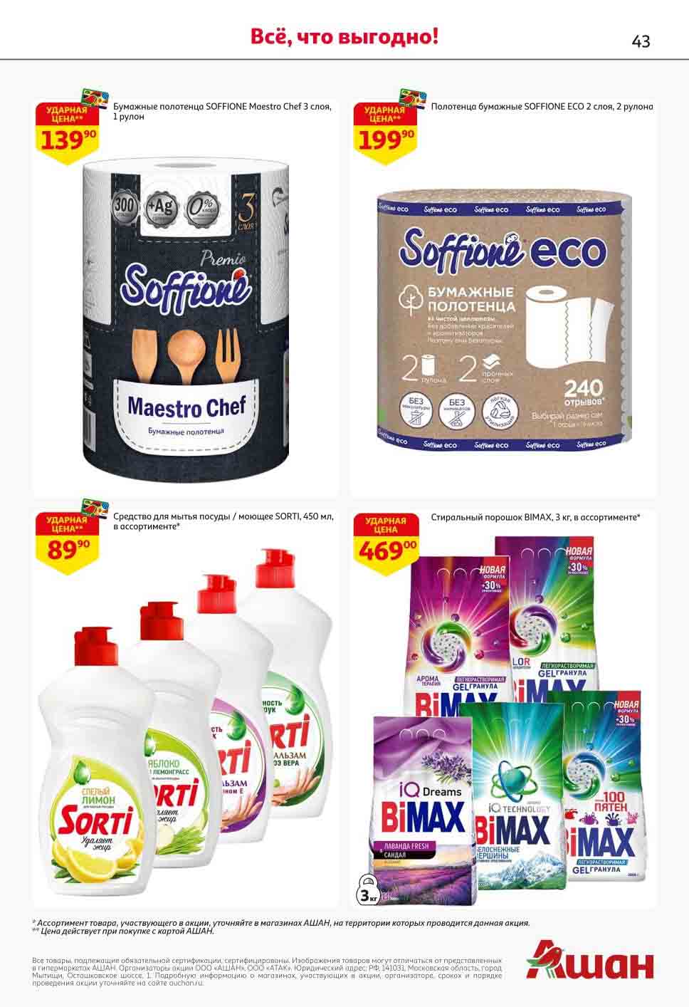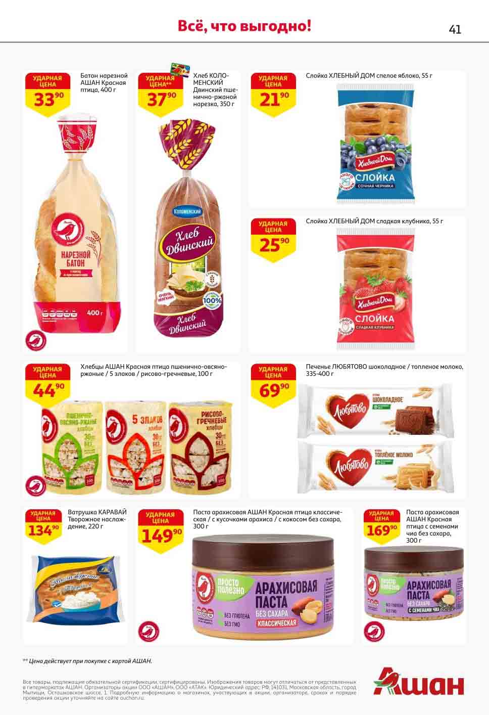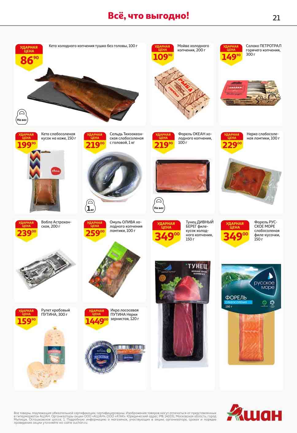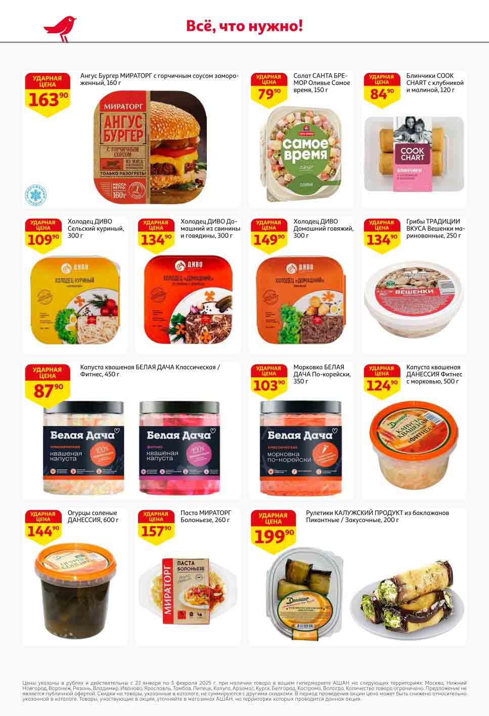 На страницах каталога Ашан вы найдете все свои любимые продукты, которые сейчас предлагаются в супермаркете. Не пропустите последние специальные предложения и сэкономьте на покупках. Предложение действительно при наличии товара на прилавках. Скидки на товары, указанные в каталоге, не суммируются с другими скидками. Изображения товаров могут незначительно отличаться от представленных на полках. Цены по акции Ашан действуют в городах: Москва. Балашиха. Химки. Подольск. Королев. Мытищи. Люберцы. Электросталь. Коломна. Одинцово. Железнодорожный, Серпухов, Орехово-Зуево. Красногорск, Щелково, Сергиев Посад, Пушкино. Жуковский, Ногинск, Раменское и многих других населенных пунктах Московского региона.