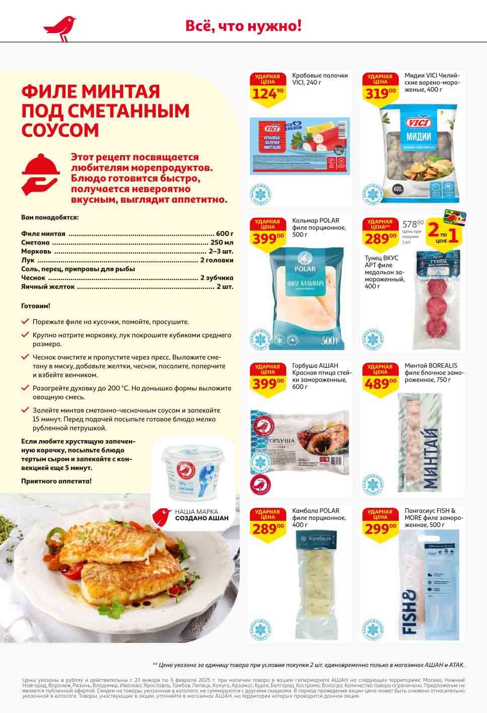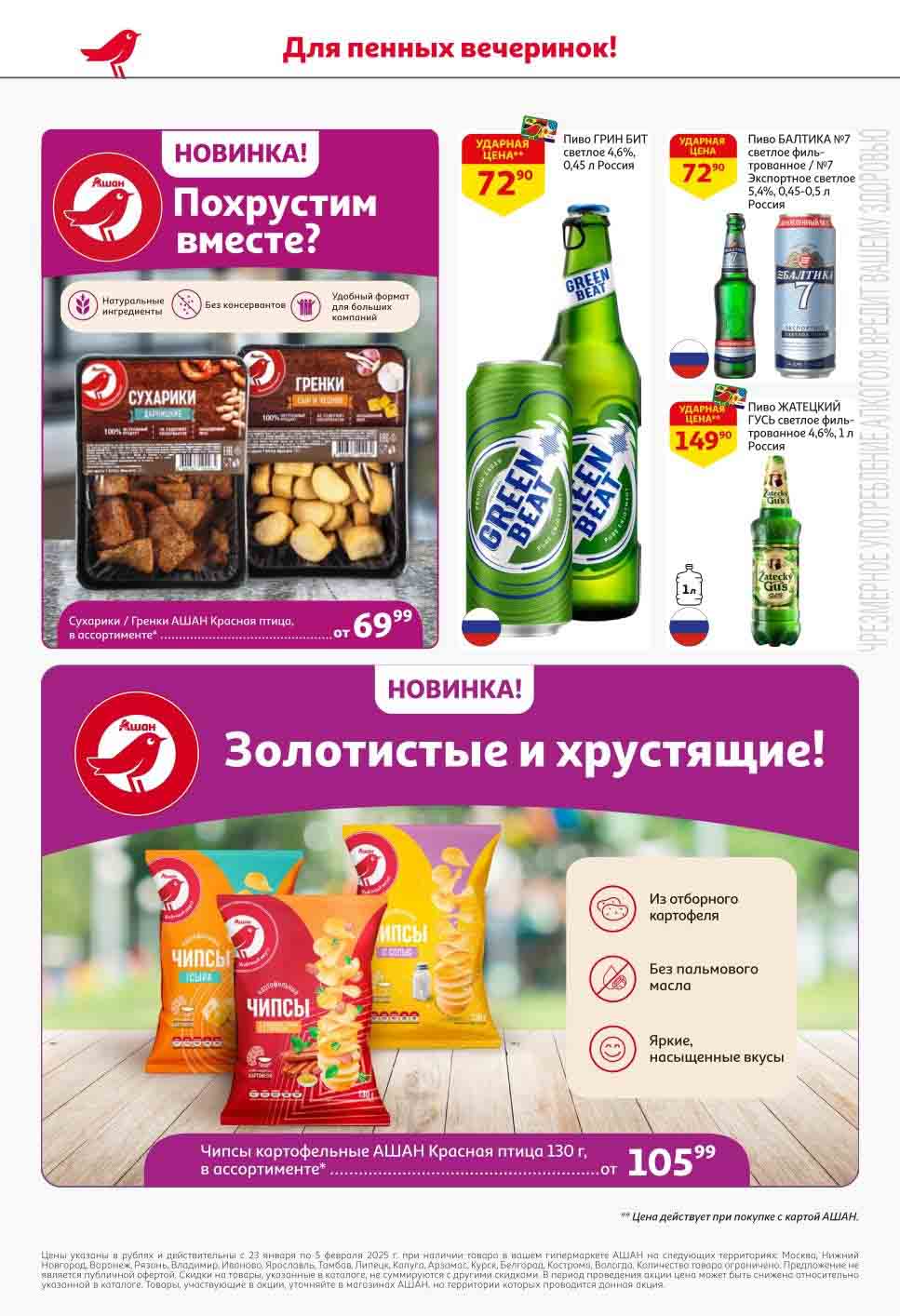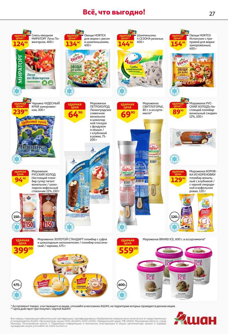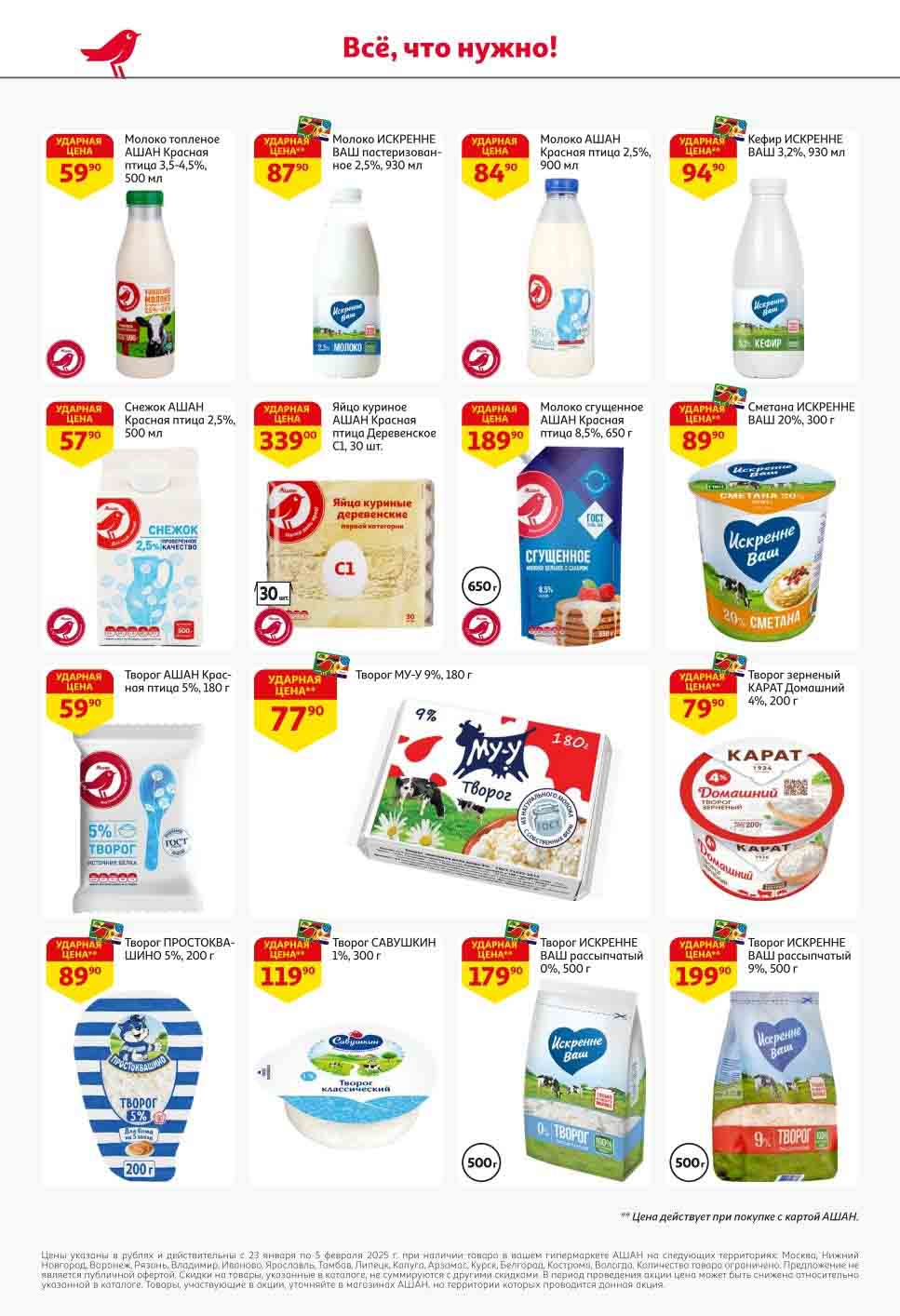 На страницах каталога Ашан вы найдете все свои любимые продукты, которые сейчас предлагаются в супермаркете. Не пропустите последние специальные предложения и сэкономьте на покупках. Предложение действительно при наличии товара на прилавках. Скидки на товары, указанные в каталоге, не суммируются с другими скидками. Изображения товаров могут незначительно отличаться от представленных на полках. Цены по акции Ашан действуют в городах: Москва. Балашиха. Химки. Подольск. Королев. Мытищи. Люберцы. Электросталь. Коломна. Одинцово. Железнодорожный, Серпухов, Орехово-Зуево. Красногорск, Щелково, Сергиев Посад, Пушкино. Жуковский, Ногинск, Раменское и многих других населенных пунктах Московского региона.