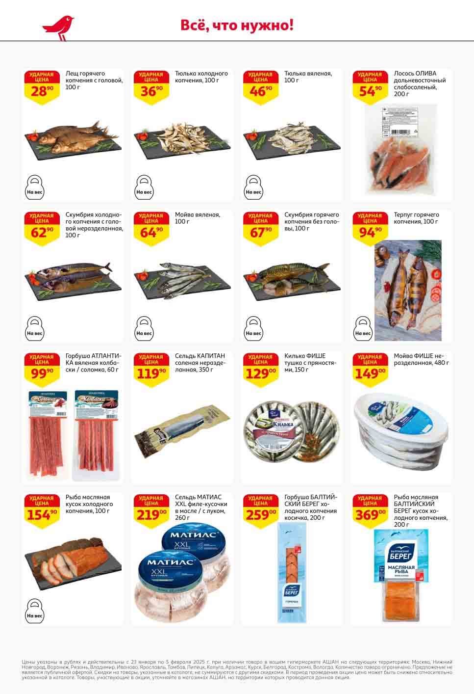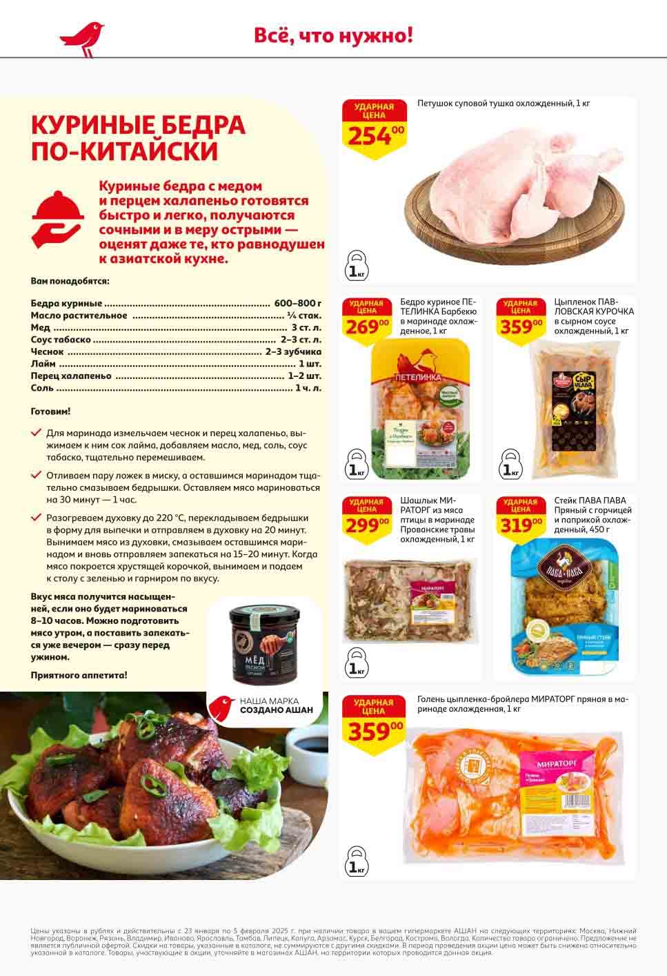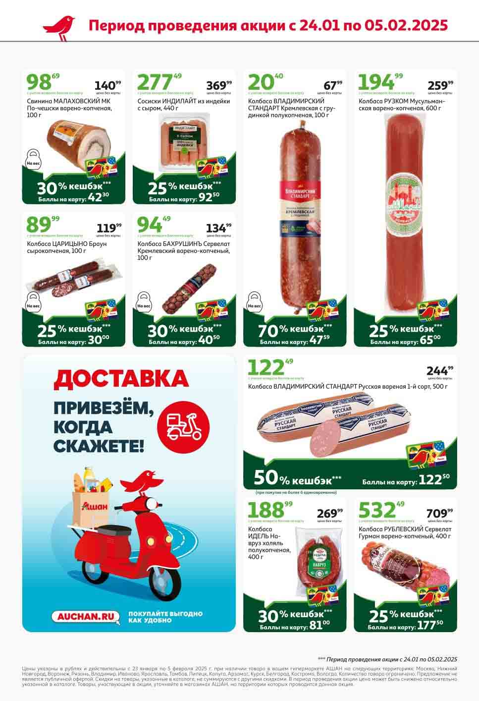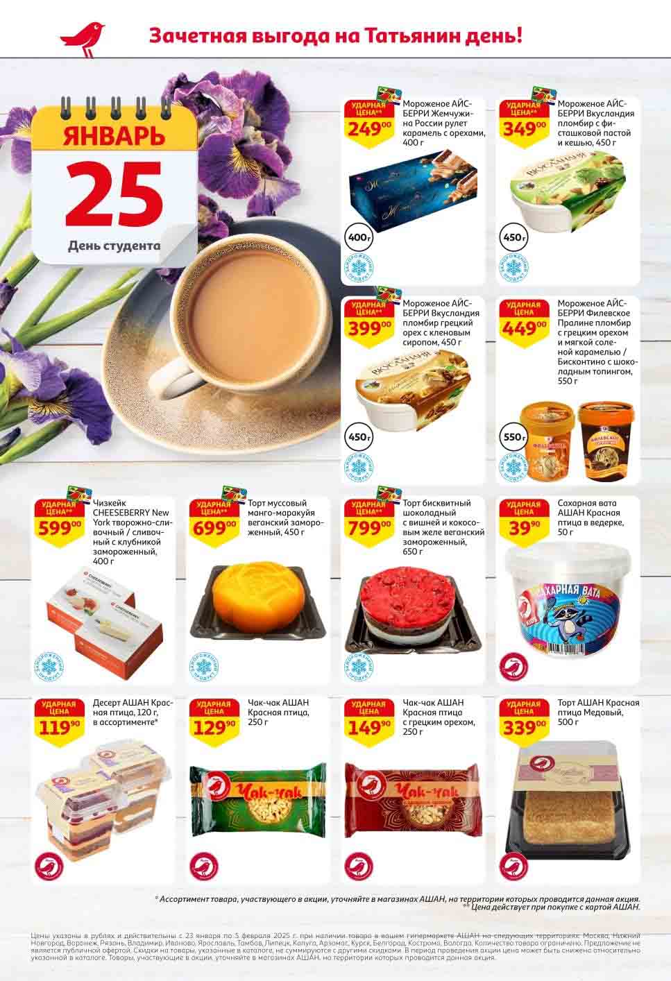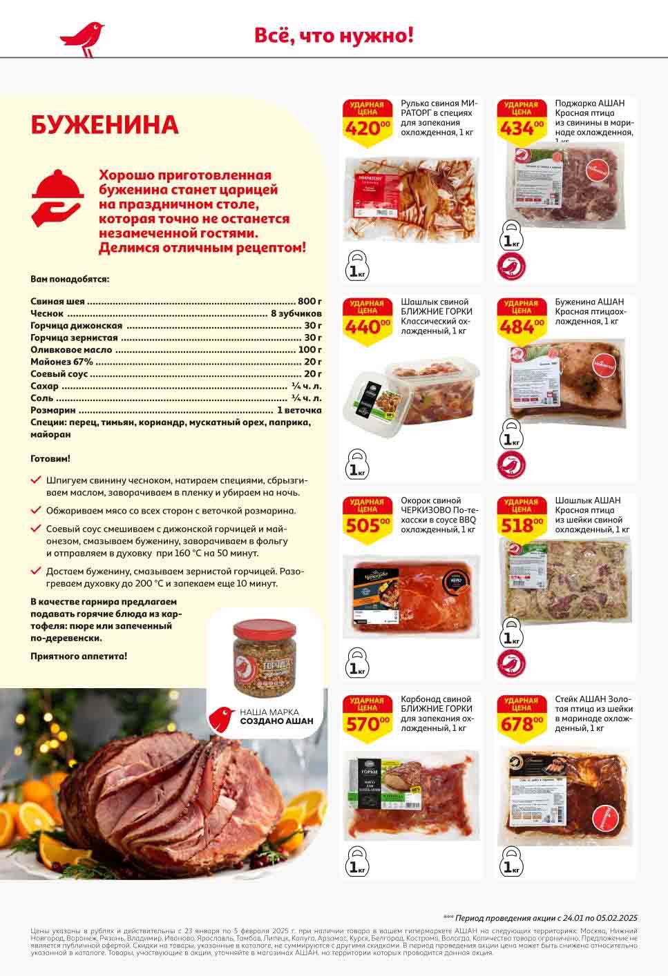 На страницах каталога Ашан вы найдете все свои любимые продукты, которые сейчас предлагаются в супермаркете. Не пропустите последние специальные предложения и сэкономьте на покупках. Предложение действительно при наличии товара на прилавках. Скидки на товары, указанные в каталоге, не суммируются с другими скидками. Изображения товаров могут незначительно отличаться от представленных на полках. Цены по акции Ашан действуют в городах: Москва. Балашиха. Химки. Подольск. Королев. Мытищи. Люберцы. Электросталь. Коломна. Одинцово. Железнодорожный, Серпухов, Орехово-Зуево. Красногорск, Щелково, Сергиев Посад, Пушкино. Жуковский, Ногинск, Раменское и многих других населенных пунктах Московского региона.