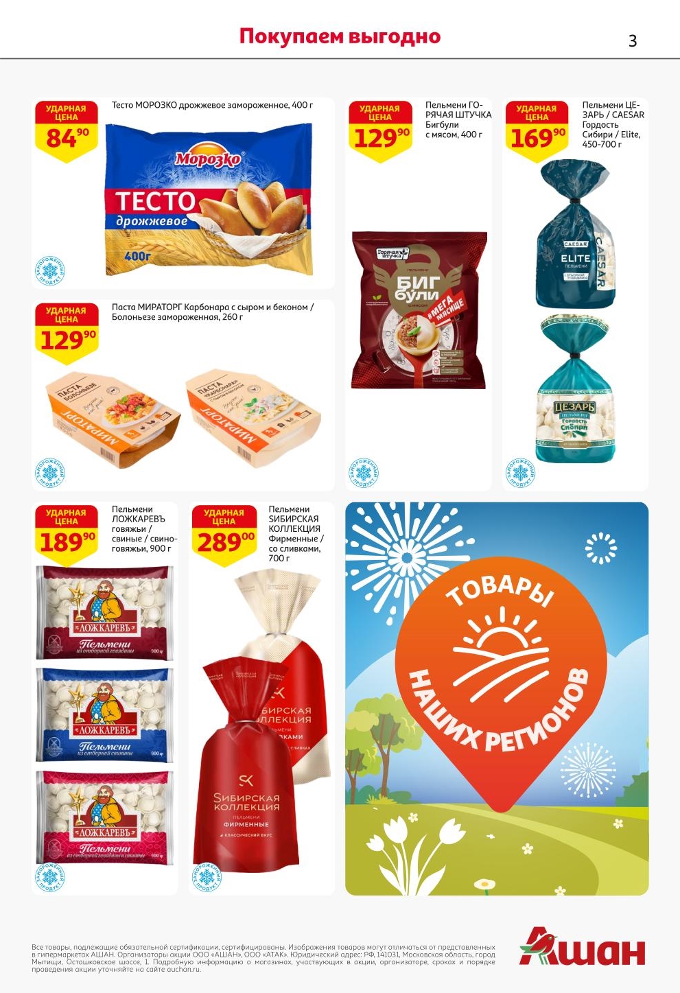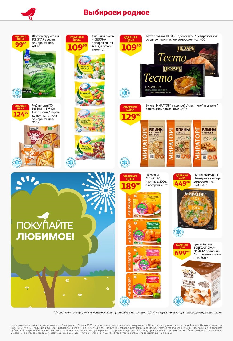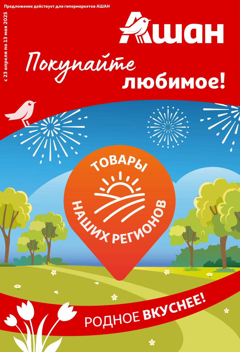 На страницах каталога Ашан вы найдете все свои любимые продукты, которые сейчас предлагаются в супермаркете. Не пропустите последние специальные предложения и сэкономьте на покупках. Предложение действительно при наличии товара на прилавках. Скидки на товары, указанные в каталоге, не суммируются с другими скидками. Изображения товаров могут незначительно отличаться от представленных на полках. Цены по акции Ашан действуют в городах: Москва. Балашиха. Химки. Подольск. Королев. Мытищи. Люберцы. Электросталь. Коломна. Одинцово. Железнодорожный, Серпухов, Орехово-Зуево. Красногорск, Щелково, Сергиев Посад, Пушкино. Жуковский, Ногинск, Раменское и многих других населенных пунктах Московского региона.