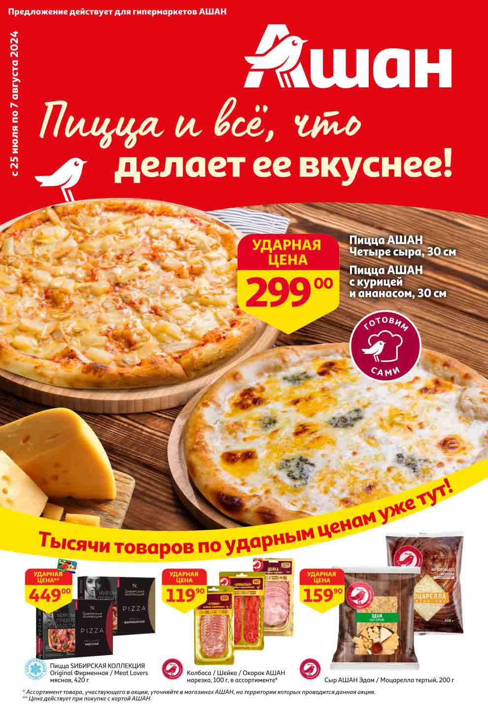 Ашан акции с 25 июля — 7 августа 2024. Каталог Пицца и все, что делает ее вкуснее