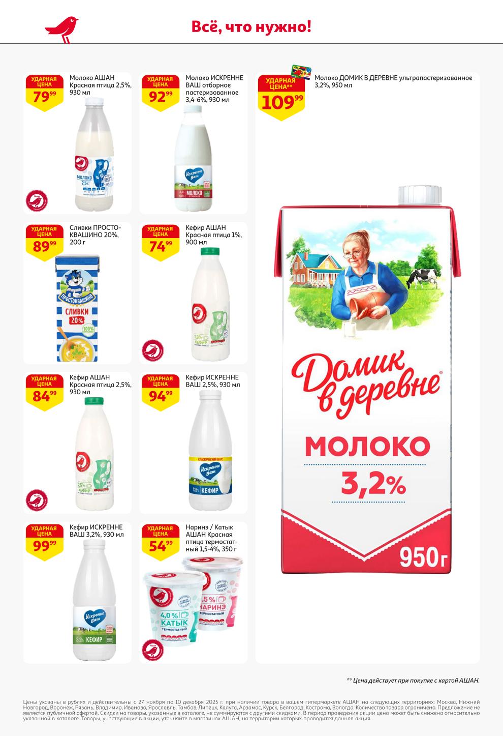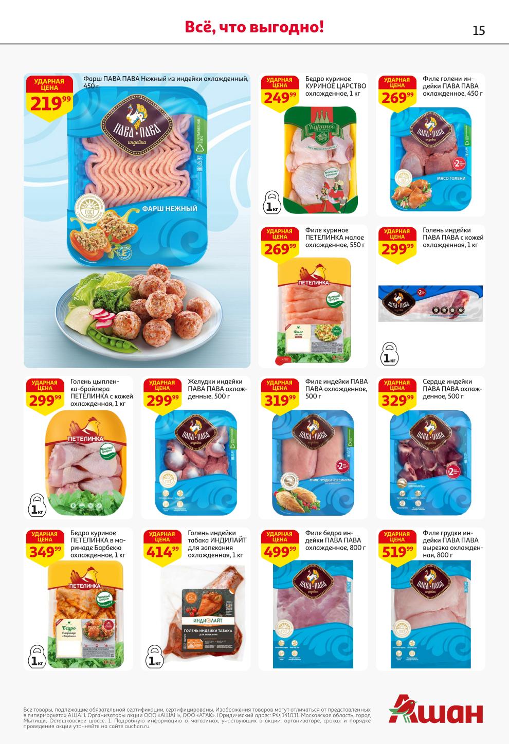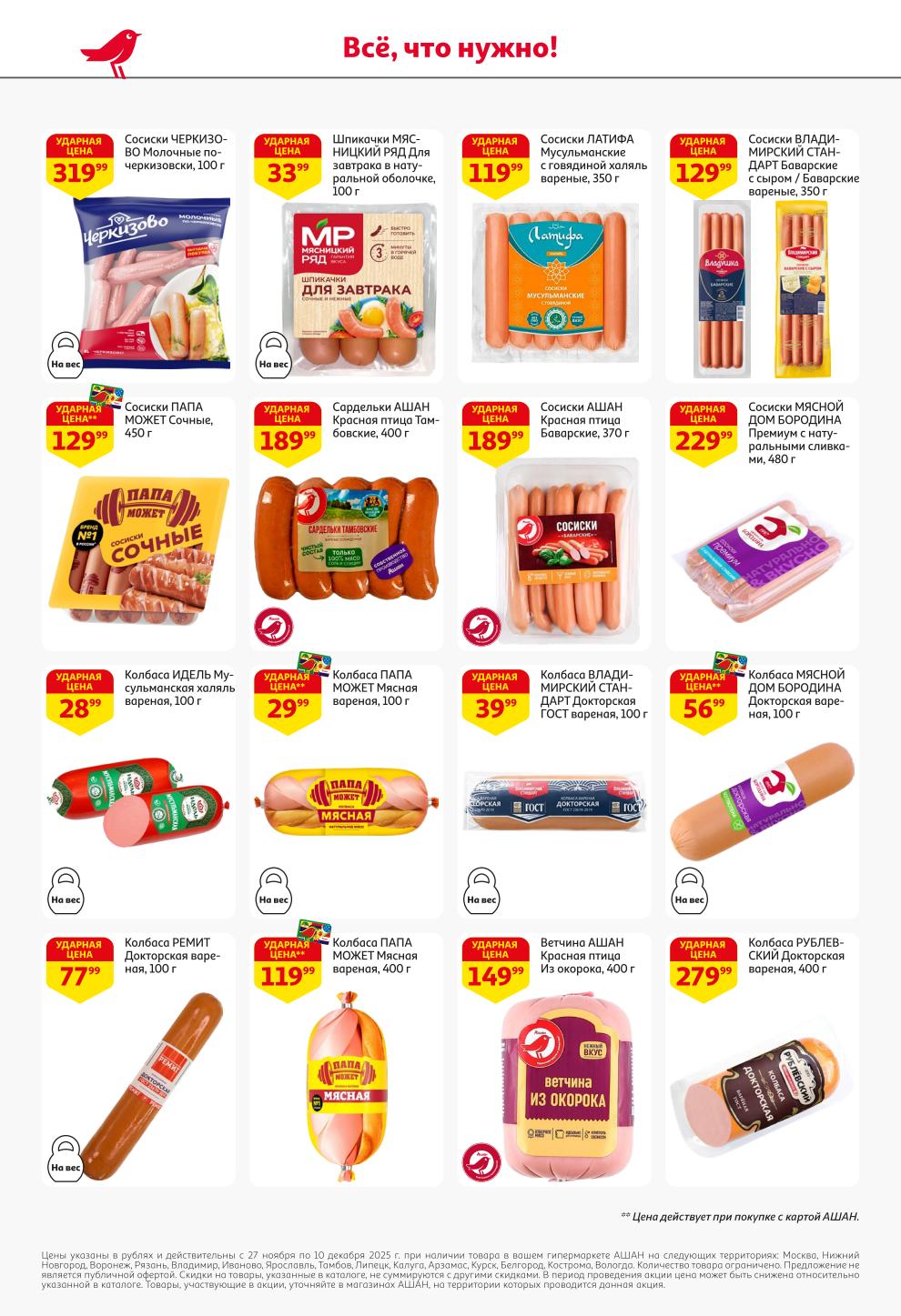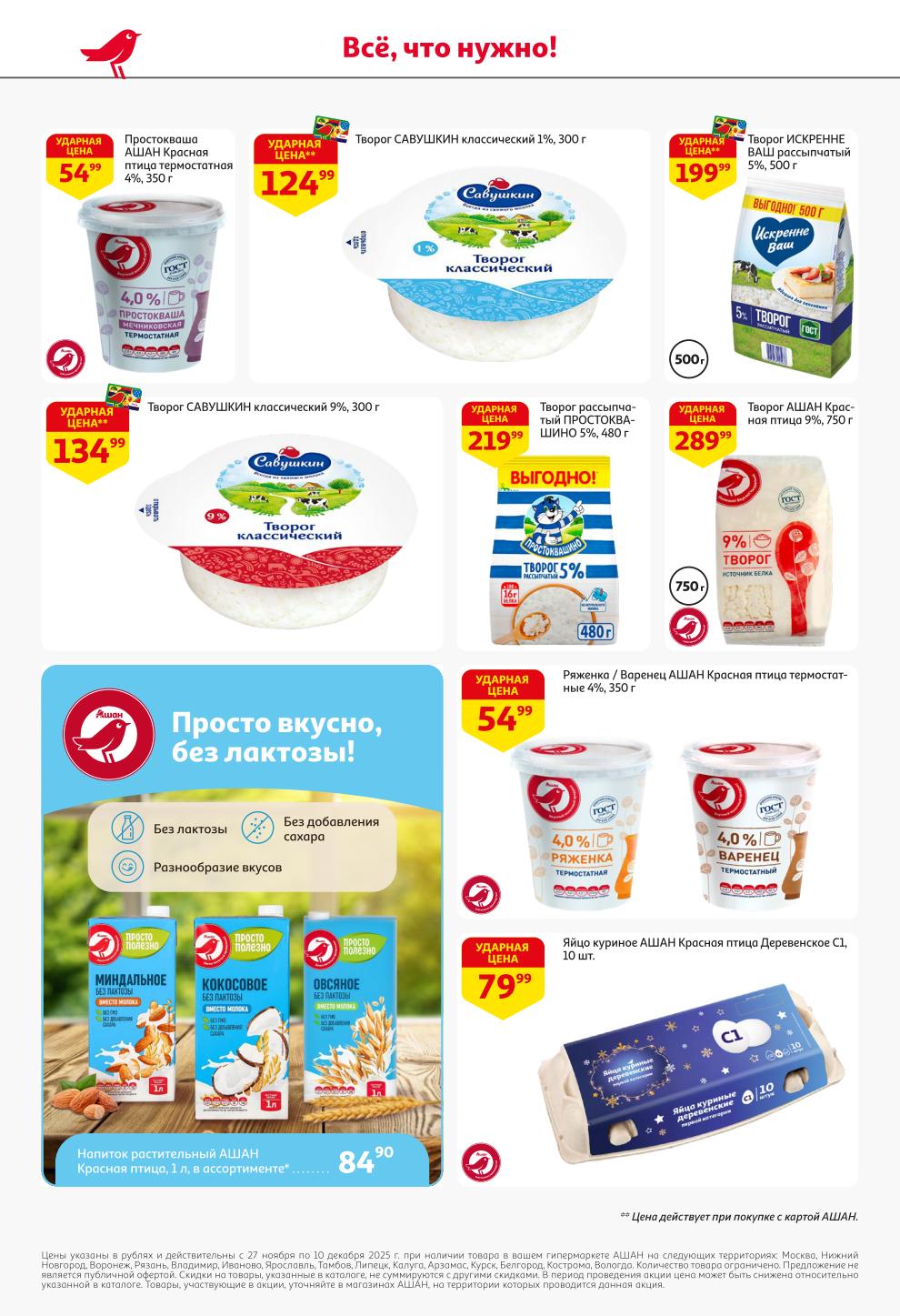 На страницах каталога Ашан вы найдете все свои любимые продукты, которые сейчас предлагаются в супермаркете. Не пропустите последние специальные предложения и сэкономьте на покупках. Предложение действительно при наличии товара на прилавках. Скидки на товары, указанные в каталоге, не суммируются с другими скидками. Изображения товаров могут незначительно отличаться от представленных на полках. Цены по акции Ашан действуют в городах: Москва. Балашиха. Химки. Подольск. Королев. Мытищи. Люберцы. Электросталь. Коломна. Одинцово. Железнодорожный, Серпухов, Орехово-Зуево. Красногорск, Щелково, Сергиев Посад, Пушкино. Жуковский, Ногинск, Раменское и многих других населенных пунктах Московского региона.