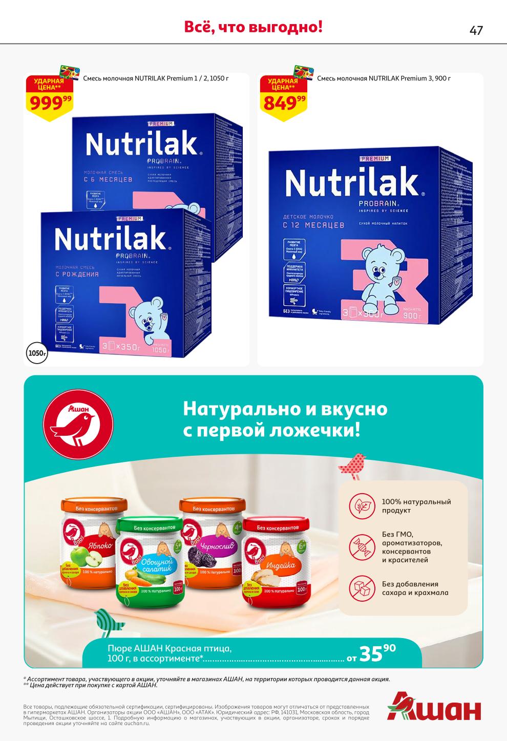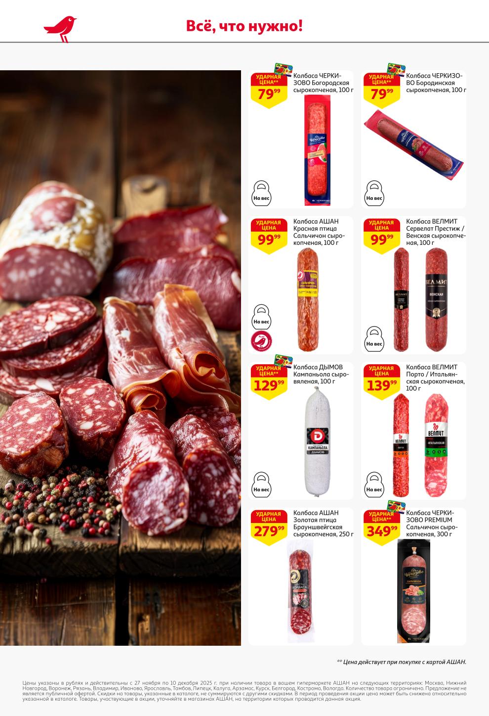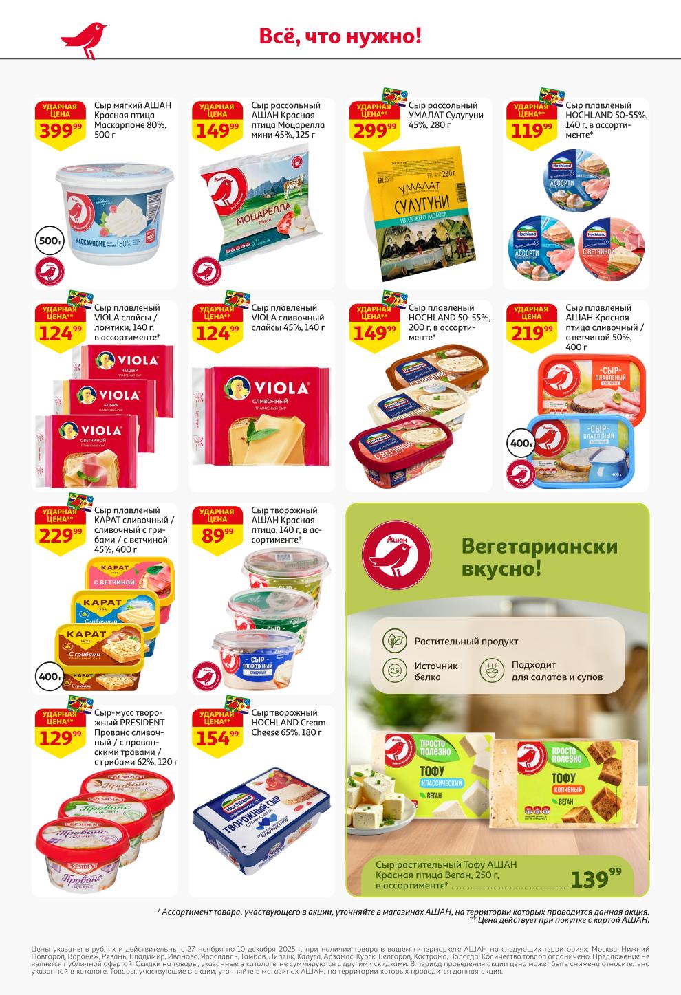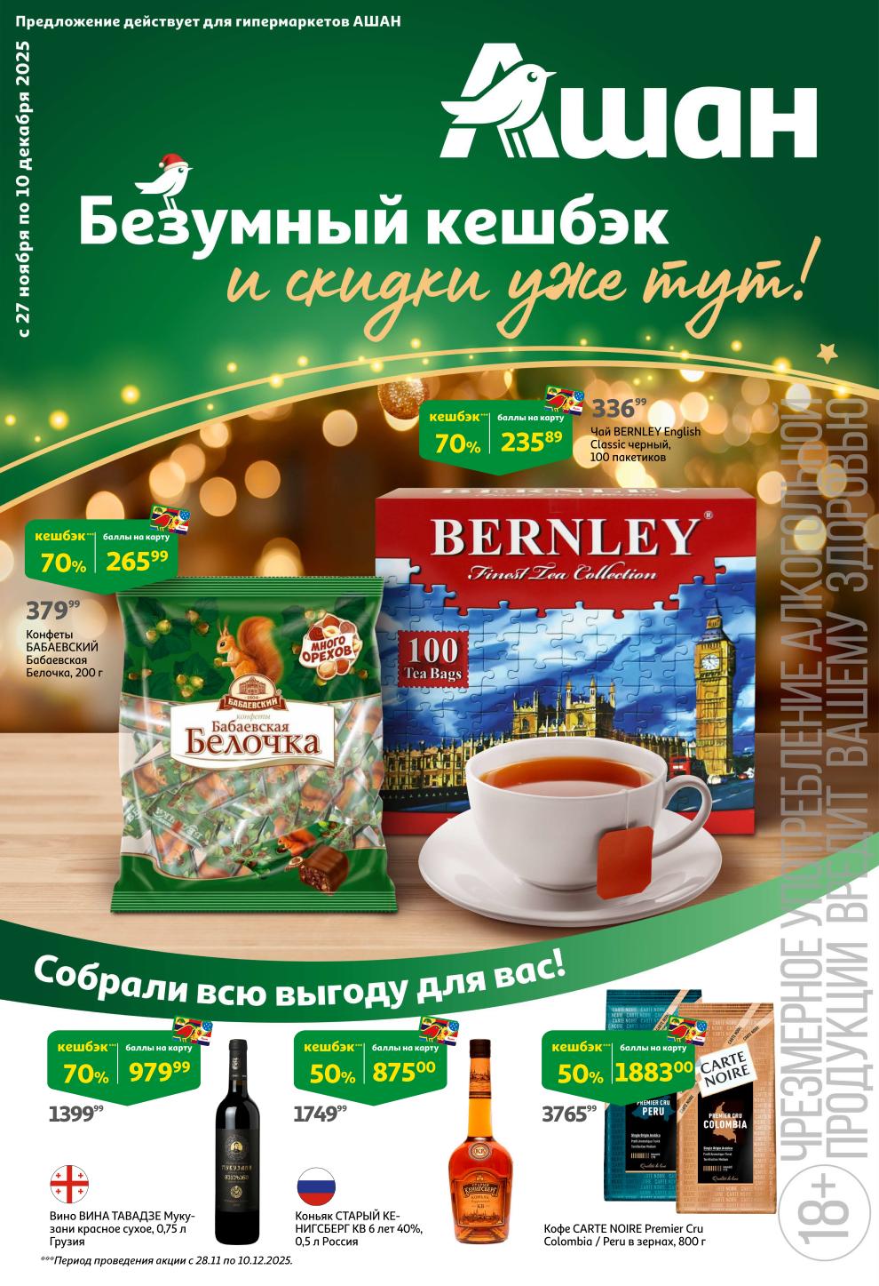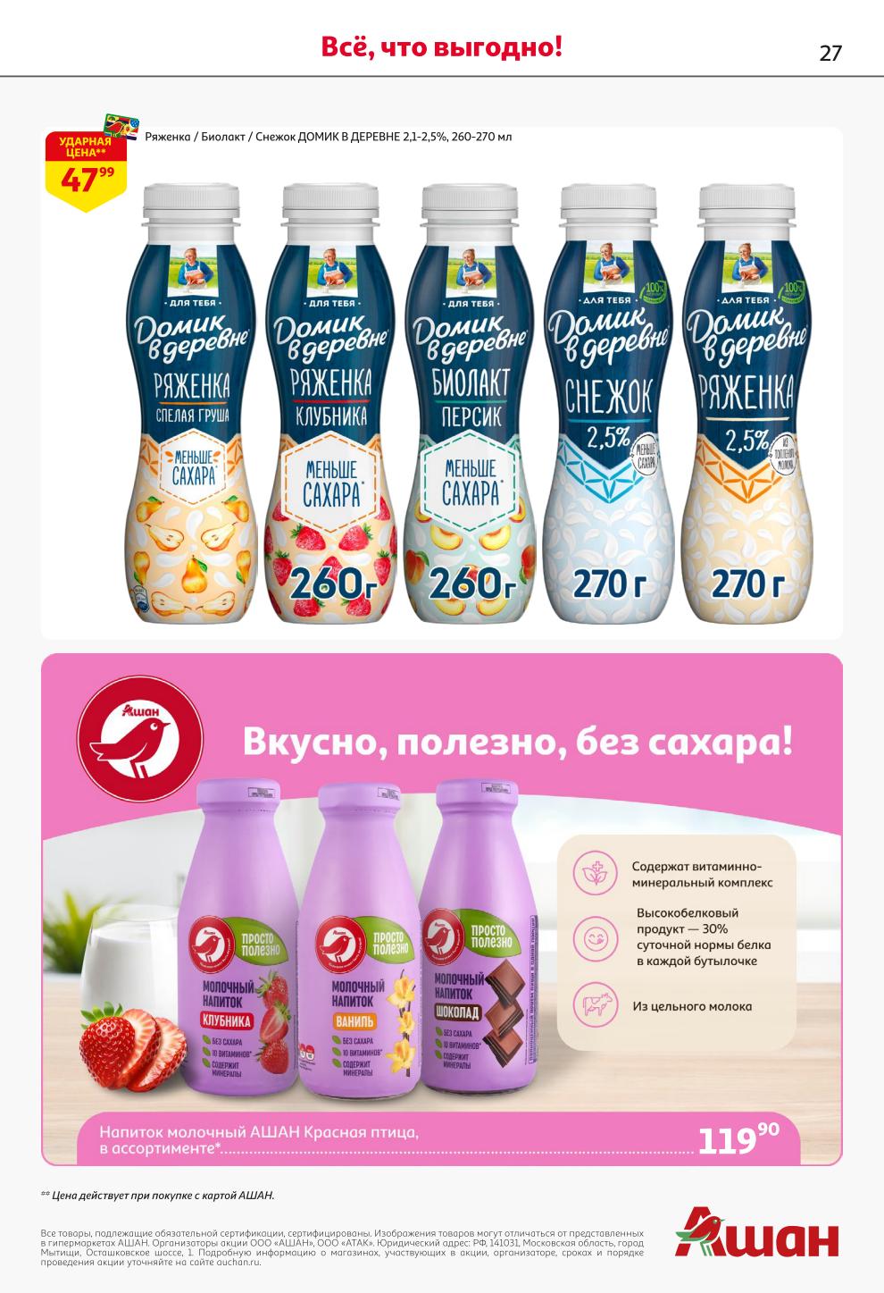 На страницах каталога Ашан вы найдете все свои любимые продукты, которые сейчас предлагаются в супермаркете. Не пропустите последние специальные предложения и сэкономьте на покупках. Предложение действительно при наличии товара на прилавках. Скидки на товары, указанные в каталоге, не суммируются с другими скидками. Изображения товаров могут незначительно отличаться от представленных на полках. Цены по акции Ашан действуют в городах: Москва. Балашиха. Химки. Подольск. Королев. Мытищи. Люберцы. Электросталь. Коломна. Одинцово. Железнодорожный, Серпухов, Орехово-Зуево. Красногорск, Щелково, Сергиев Посад, Пушкино. Жуковский, Ногинск, Раменское и многих других населенных пунктах Московского региона.