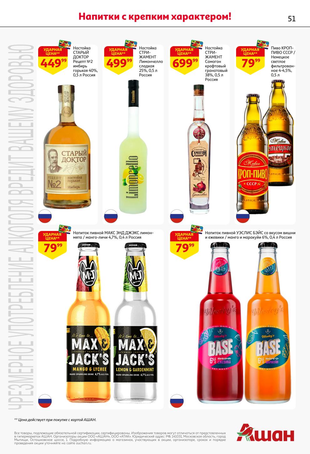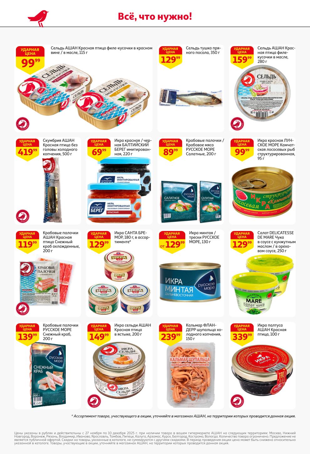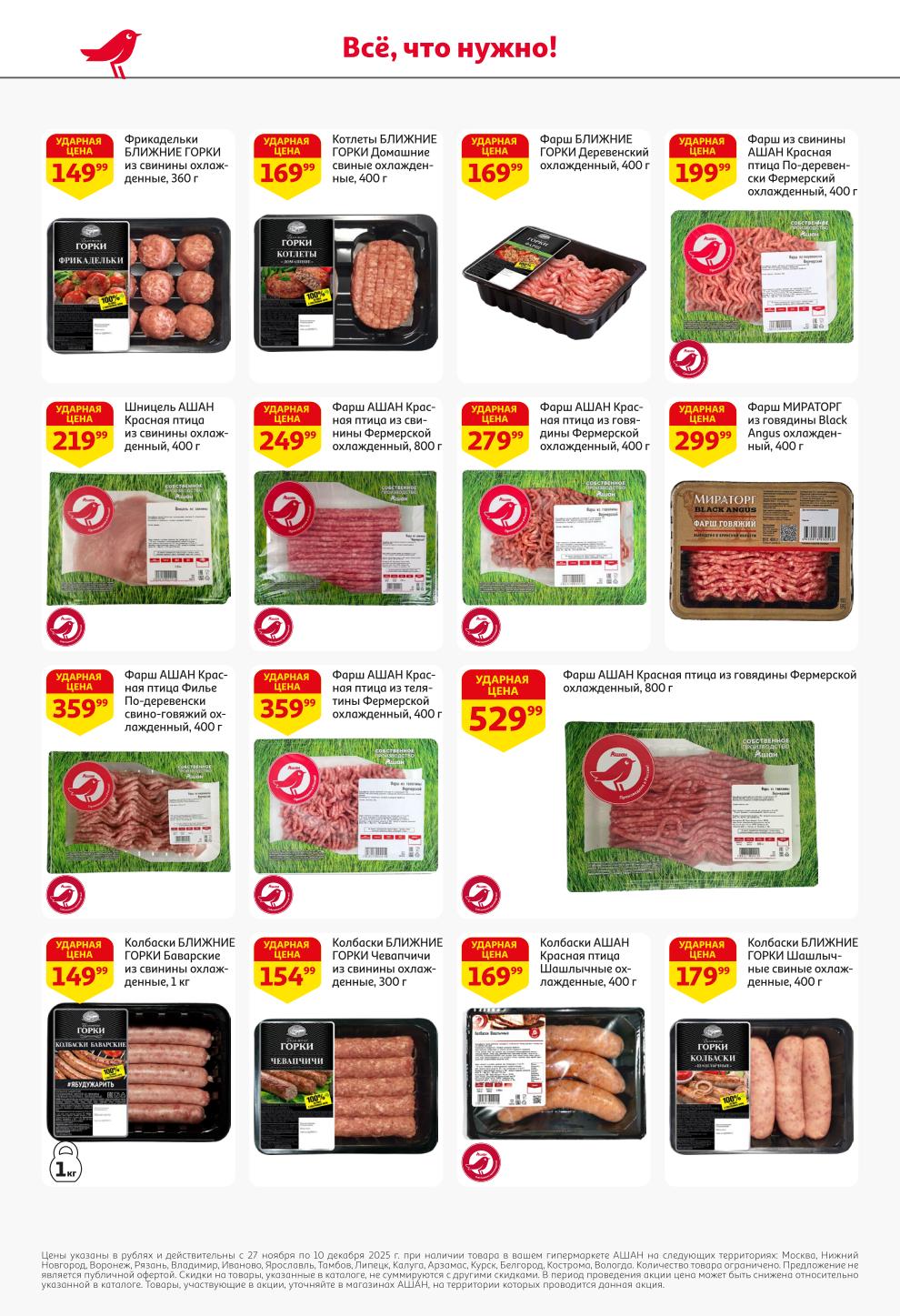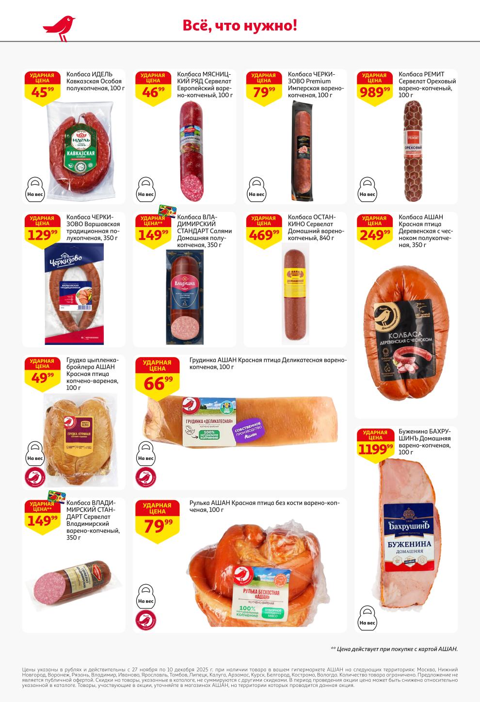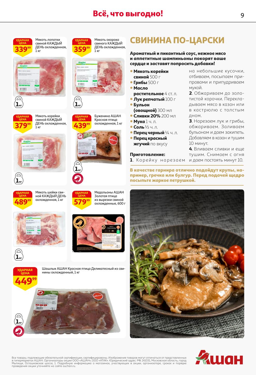 На страницах каталога Ашан вы найдете все свои любимые продукты, которые сейчас предлагаются в супермаркете. Не пропустите последние специальные предложения и сэкономьте на покупках. Предложение действительно при наличии товара на прилавках. Скидки на товары, указанные в каталоге, не суммируются с другими скидками. Изображения товаров могут незначительно отличаться от представленных на полках. Цены по акции Ашан действуют в городах: Москва. Балашиха. Химки. Подольск. Королев. Мытищи. Люберцы. Электросталь. Коломна. Одинцово. Железнодорожный, Серпухов, Орехово-Зуево. Красногорск, Щелково, Сергиев Посад, Пушкино. Жуковский, Ногинск, Раменское и многих других населенных пунктах Московского региона.