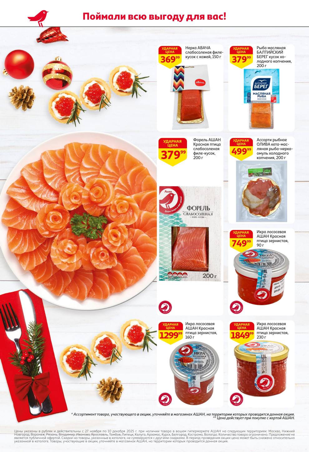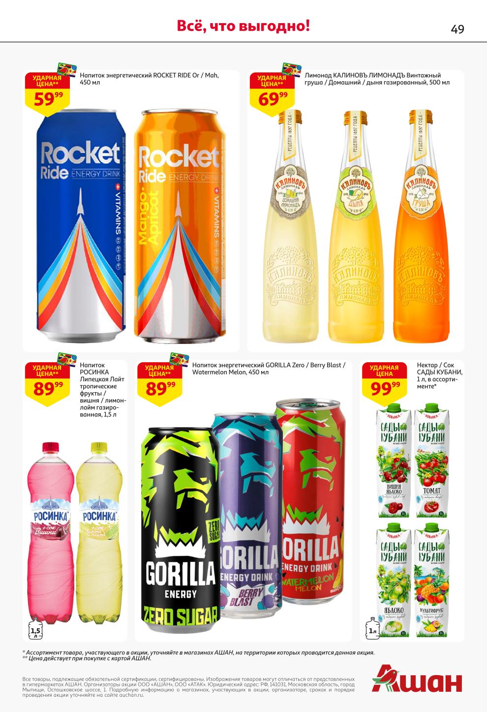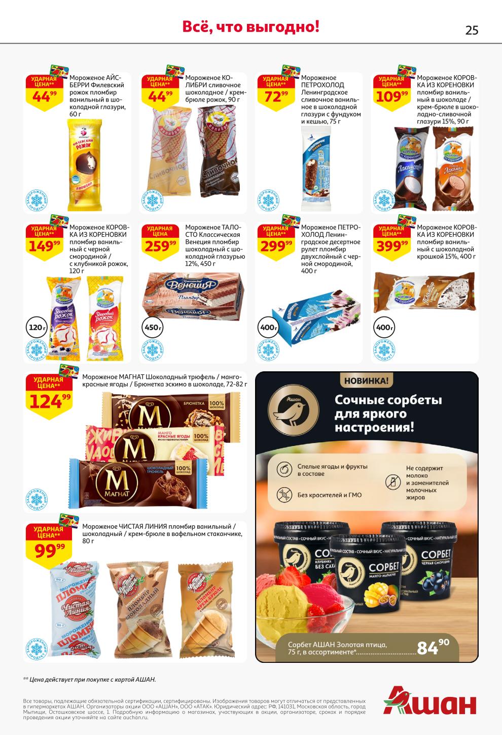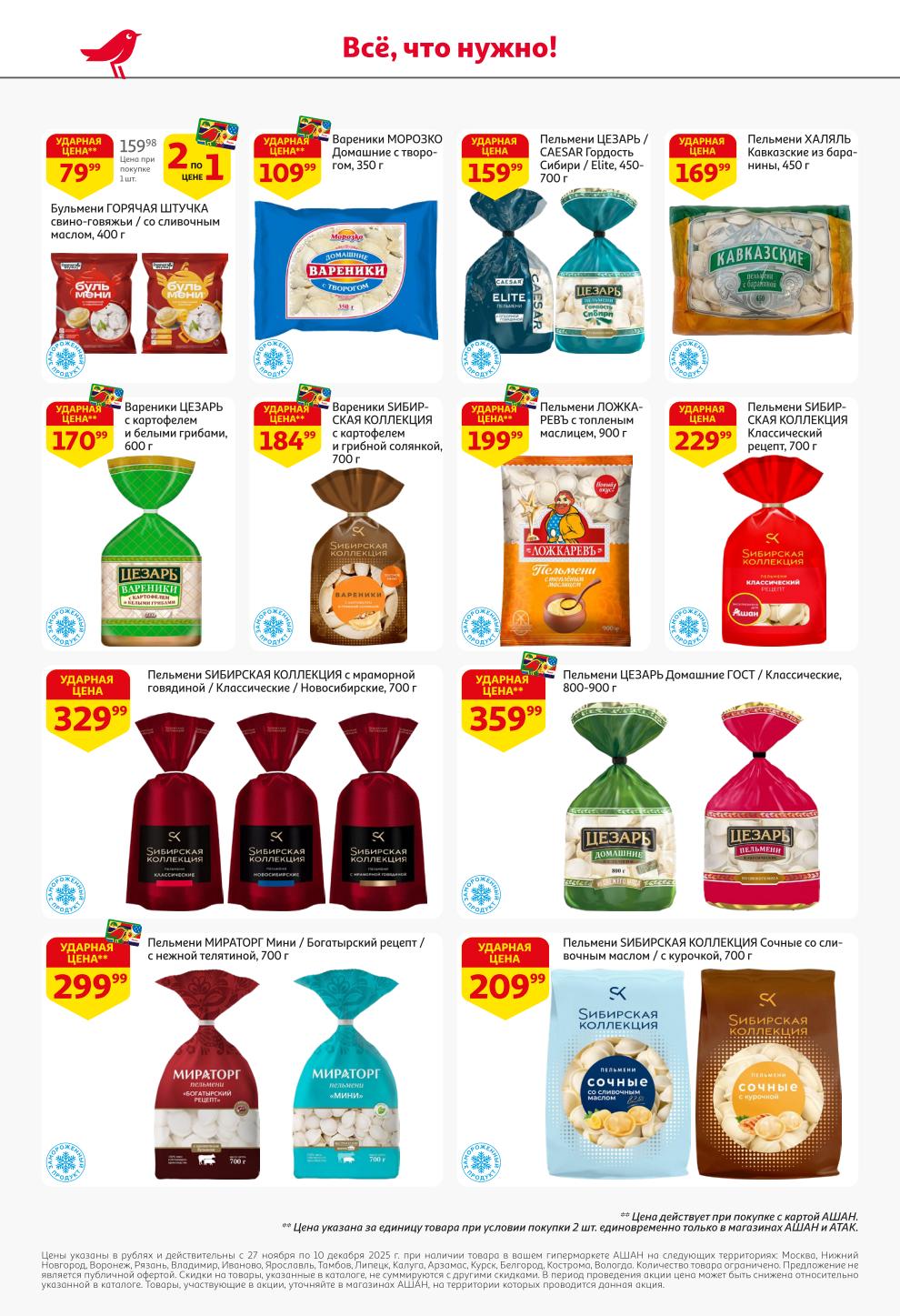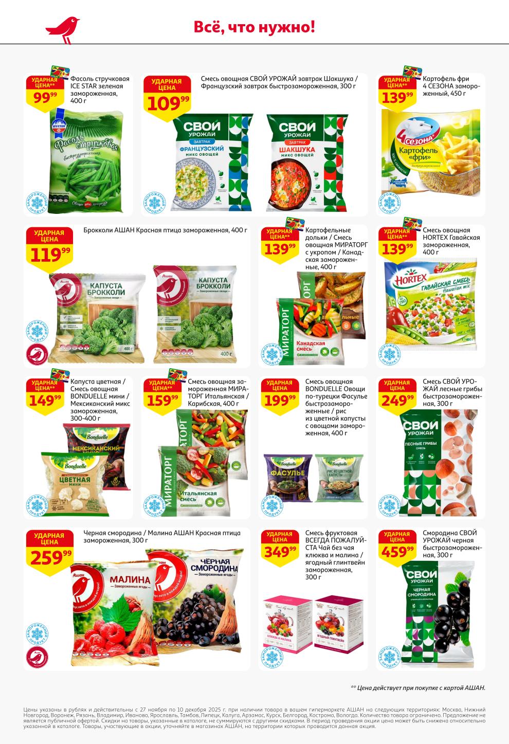 На страницах каталога Ашан вы найдете все свои любимые продукты, которые сейчас предлагаются в супермаркете. Не пропустите последние специальные предложения и сэкономьте на покупках. Предложение действительно при наличии товара на прилавках. Скидки на товары, указанные в каталоге, не суммируются с другими скидками. Изображения товаров могут незначительно отличаться от представленных на полках. Цены по акции Ашан действуют в городах: Москва. Балашиха. Химки. Подольск. Королев. Мытищи. Люберцы. Электросталь. Коломна. Одинцово. Железнодорожный, Серпухов, Орехово-Зуево. Красногорск, Щелково, Сергиев Посад, Пушкино. Жуковский, Ногинск, Раменское и многих других населенных пунктах Московского региона.