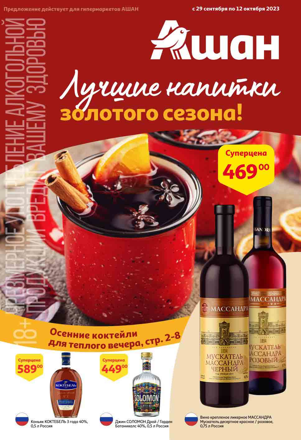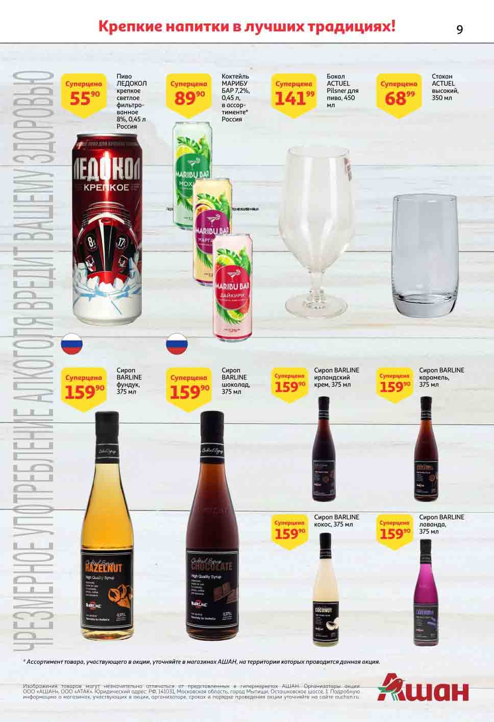На страницах каталога Ашан вы найдете все свои любимые продукты, которые сейчас предлагаются в супермаркете. Не пропустите последние специальные предложения и сэкономьте на покупках. Предложение действительно при наличии товара на прилавках. Скидки на товары, указанные в каталоге, не суммируются с другими скидками. Изображения товаров могут незначительно отличаться от представленных на полках. Цены по акции Ашан действуют в городах: Москва. Балашиха. Химки. Подольск. Королев. Мытищи. Люберцы. Электросталь. Коломна. Одинцово. Железнодорожный, Серпухов, Орехово-Зуево. Красногорск, Щелково, Сергиев Посад, Пушкино. Жуковский, Ногинск, Раменское и многих других населенных пунктах Московского региона.