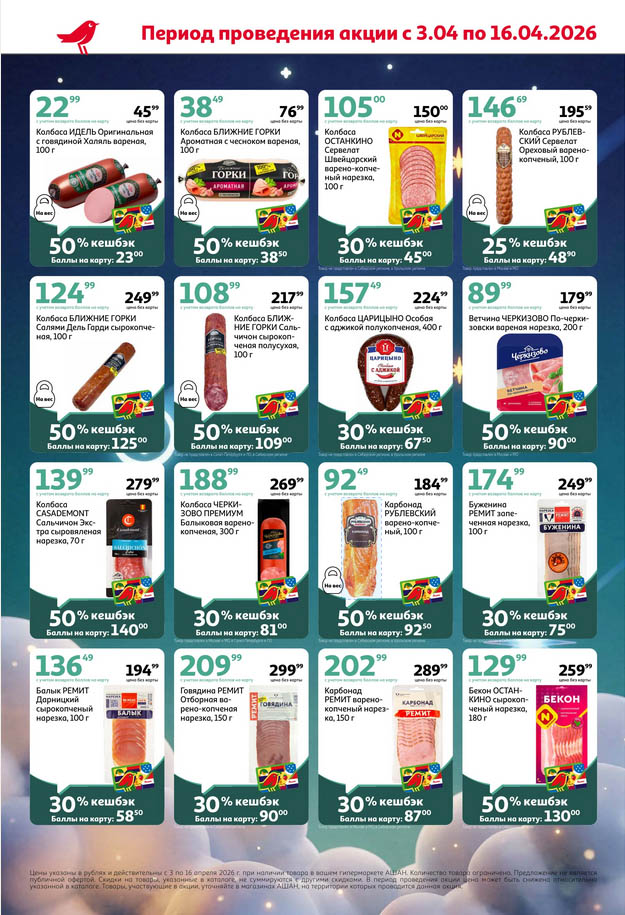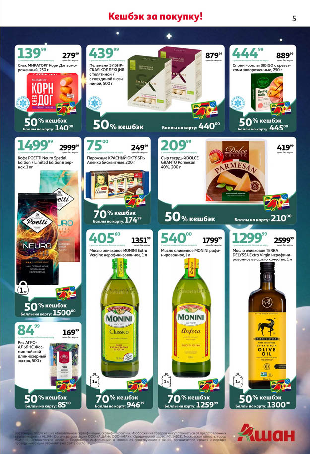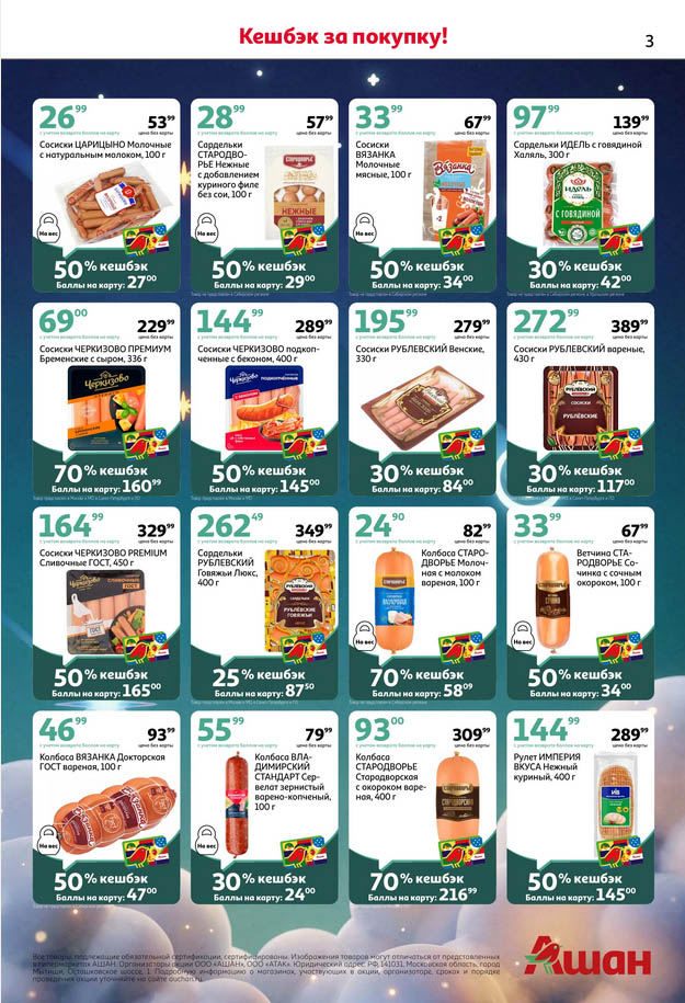 Собственные марки: Товары линеек «Каждый день» и «Ашан Селект» часто участвуют в дополнительных акциях — уточняйте условия на ценнике.