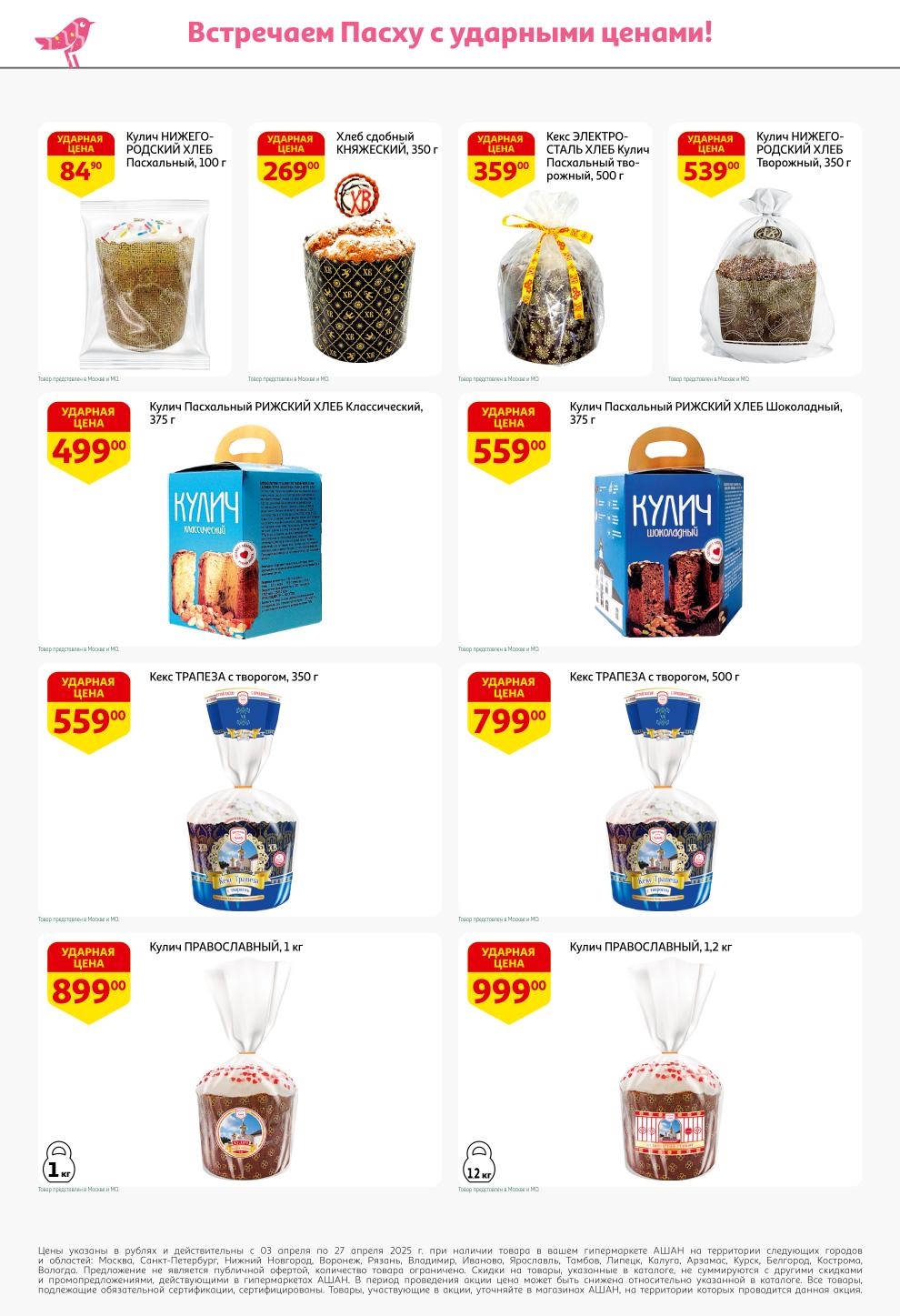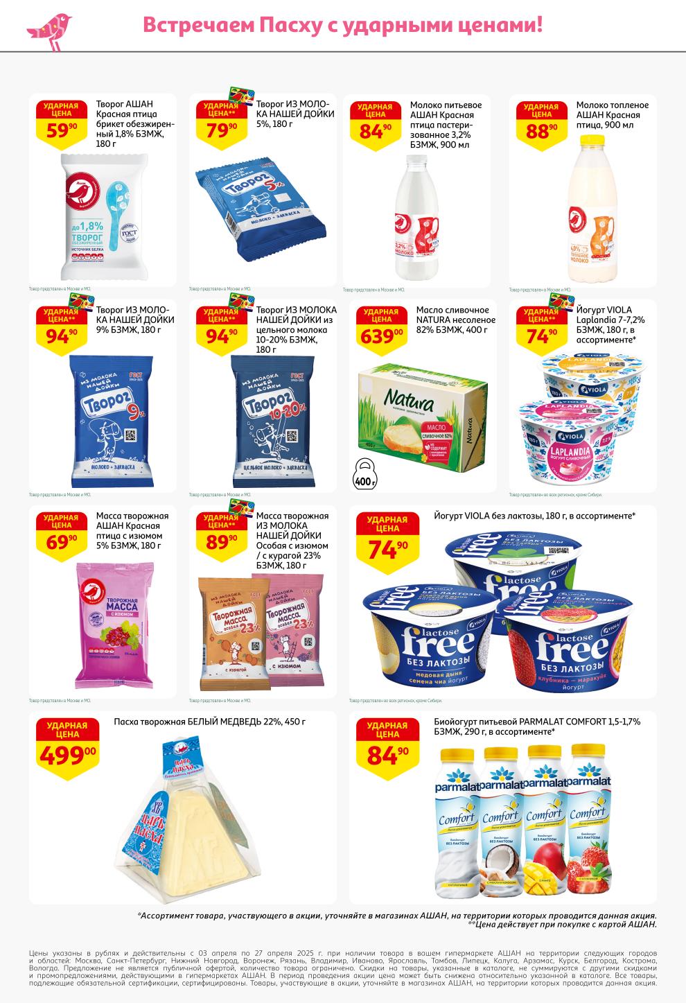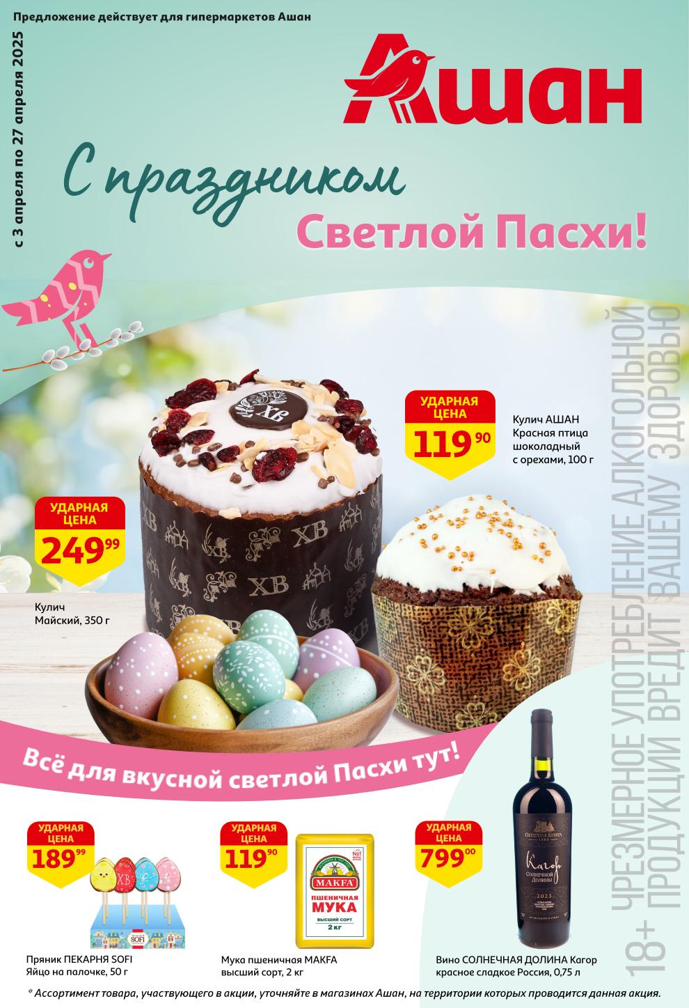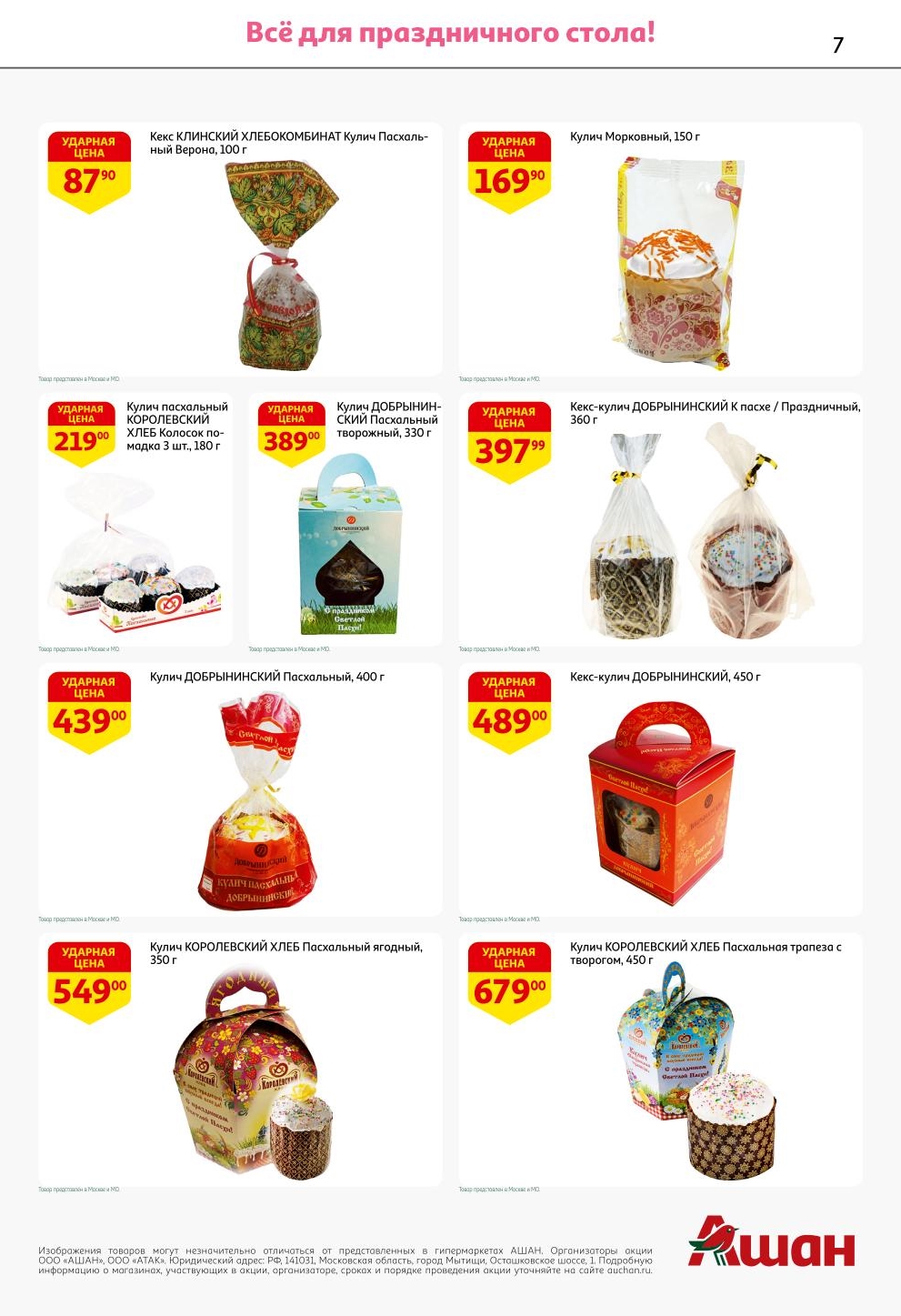 На страницах каталога Ашан вы найдете все свои любимые продукты, которые сейчас предлагаются в супермаркете. Не пропустите последние специальные предложения и сэкономьте на покупках. Предложение действительно при наличии товара на прилавках. Скидки на товары, указанные в каталоге, не суммируются с другими скидками. Изображения товаров могут незначительно отличаться от представленных на полках. Цены по акции Ашан действуют в городах: Москва. Балашиха. Химки. Подольск. Королев. Мытищи. Люберцы. Электросталь. Коломна. Одинцово. Железнодорожный, Серпухов, Орехово-Зуево. Красногорск, Щелково, Сергиев Посад, Пушкино. Жуковский, Ногинск, Раменское и многих других населенных пунктах Московского региона.