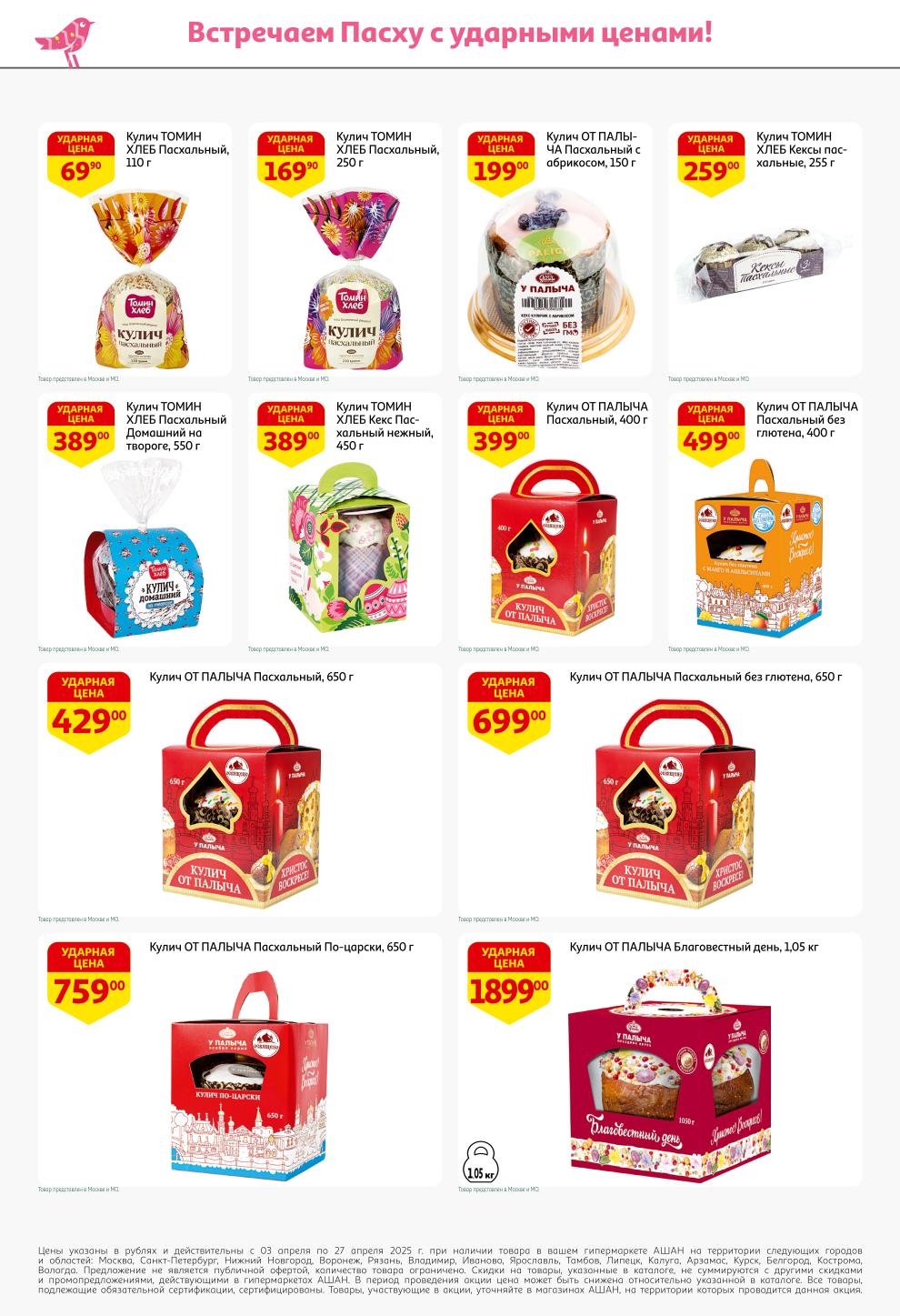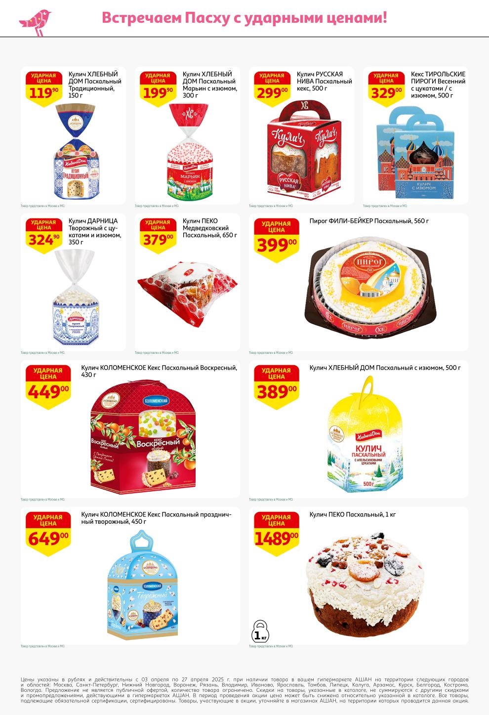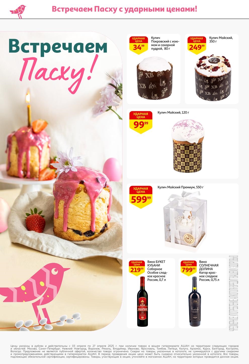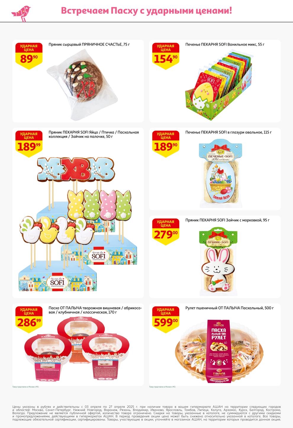 На страницах каталога Ашан вы найдете все свои любимые продукты, которые сейчас предлагаются в супермаркете. Не пропустите последние специальные предложения и сэкономьте на покупках. Предложение действительно при наличии товара на прилавках. Скидки на товары, указанные в каталоге, не суммируются с другими скидками. Изображения товаров могут незначительно отличаться от представленных на полках. Цены по акции Ашан действуют в городах: Москва. Балашиха. Химки. Подольск. Королев. Мытищи. Люберцы. Электросталь. Коломна. Одинцово. Железнодорожный, Серпухов, Орехово-Зуево. Красногорск, Щелково, Сергиев Посад, Пушкино. Жуковский, Ногинск, Раменское и многих других населенных пунктах Московского региона.