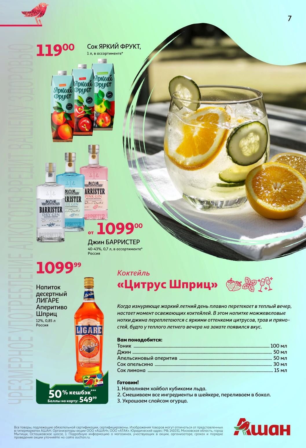 На страницах каталога Ашан вы найдете все свои любимые продукты, которые сейчас предлагаются в супермаркете. Не пропустите последние специальные предложения и сэкономьте на покупках. Предложение действительно при наличии товара на прилавках. Скидки на товары, указанные в каталоге, не суммируются с другими скидками. Изображения товаров могут незначительно отличаться от представленных на полках. Цены по акции Ашан действуют в городах: Москва. Балашиха. Химки. Подольск. Королев. Мытищи. Люберцы. Электросталь. Коломна. Одинцово. Железнодорожный, Серпухов, Орехово-Зуево. Красногорск, Щелково, Сергиев Посад, Пушкино. Жуковский, Ногинск, Раменское и многих других населенных пунктах Московского региона.