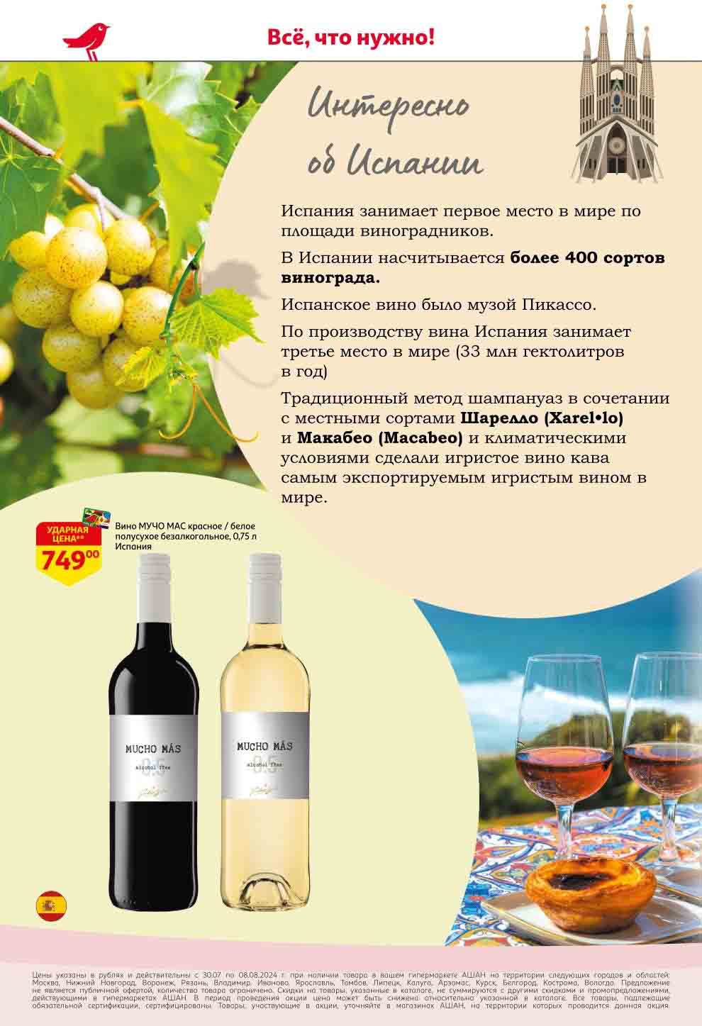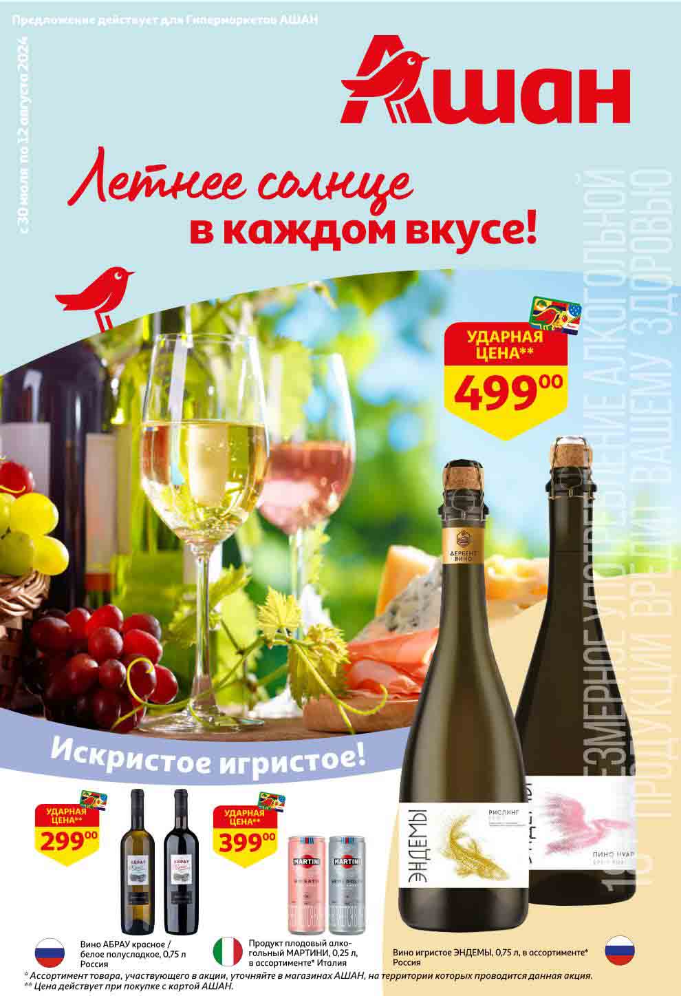 На страницах каталога Ашан вы найдете все свои любимые продукты, которые сейчас предлагаются в супермаркете. Не пропустите последние специальные предложения и сэкономьте на покупках. Предложение действительно при наличии товара на прилавках. Скидки на товары, указанные в каталоге, не суммируются с другими скидками. Изображения товаров могут незначительно отличаться от представленных на полках. Цены по акции Ашан действуют в городах: Москва. Балашиха. Химки. Подольск. Королев. Мытищи. Люберцы. Электросталь. Коломна. Одинцово. Железнодорожный, Серпухов, Орехово-Зуево. Красногорск, Щелково, Сергиев Посад, Пушкино. Жуковский, Ногинск, Раменское и многих других населенных пунктах Московского региона.