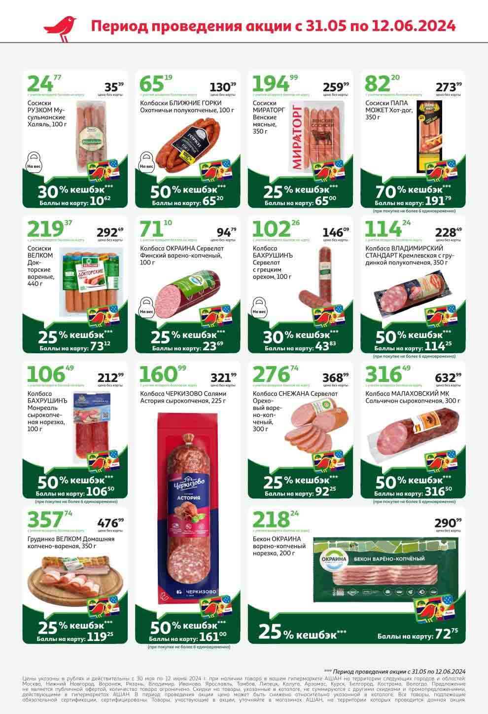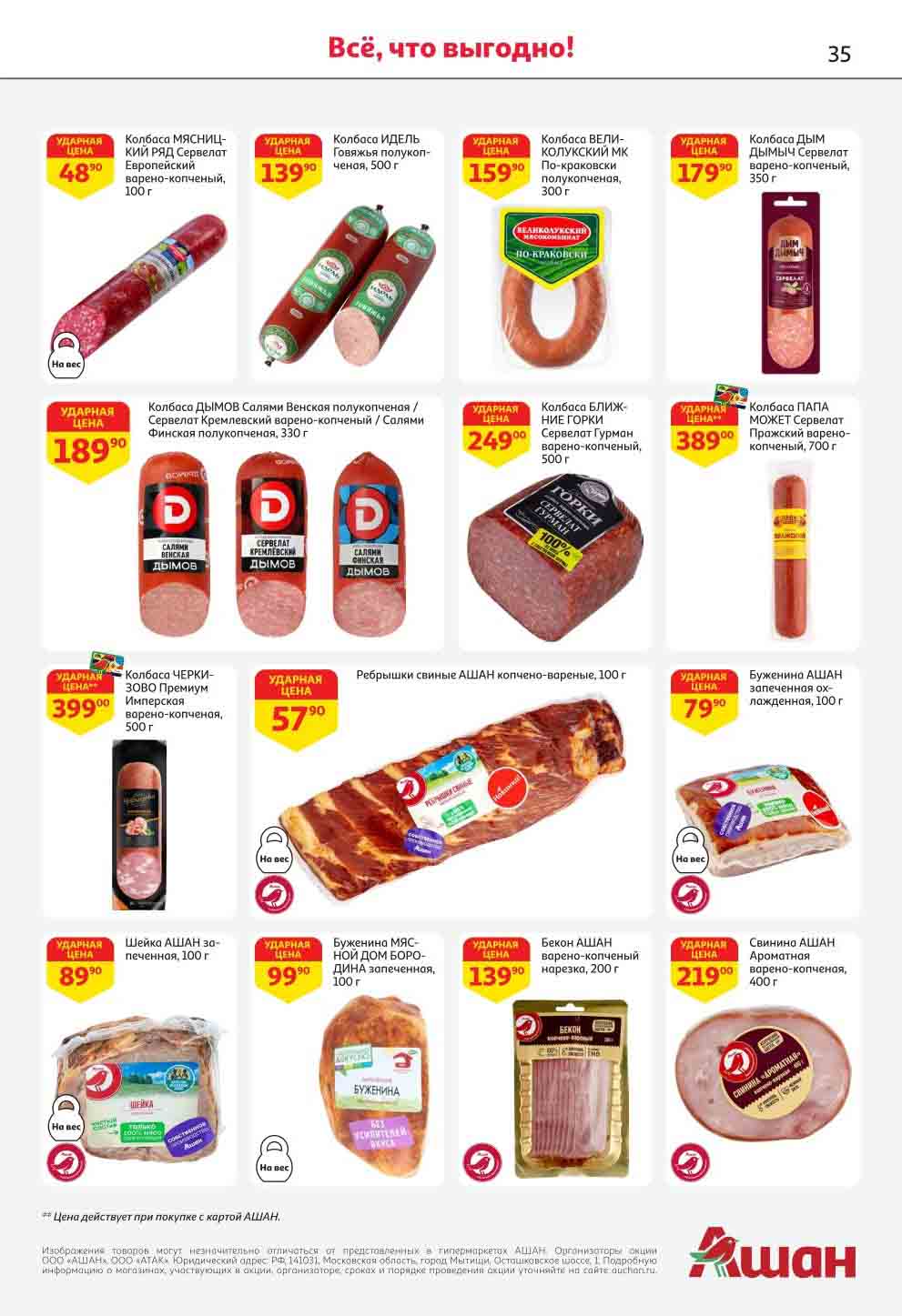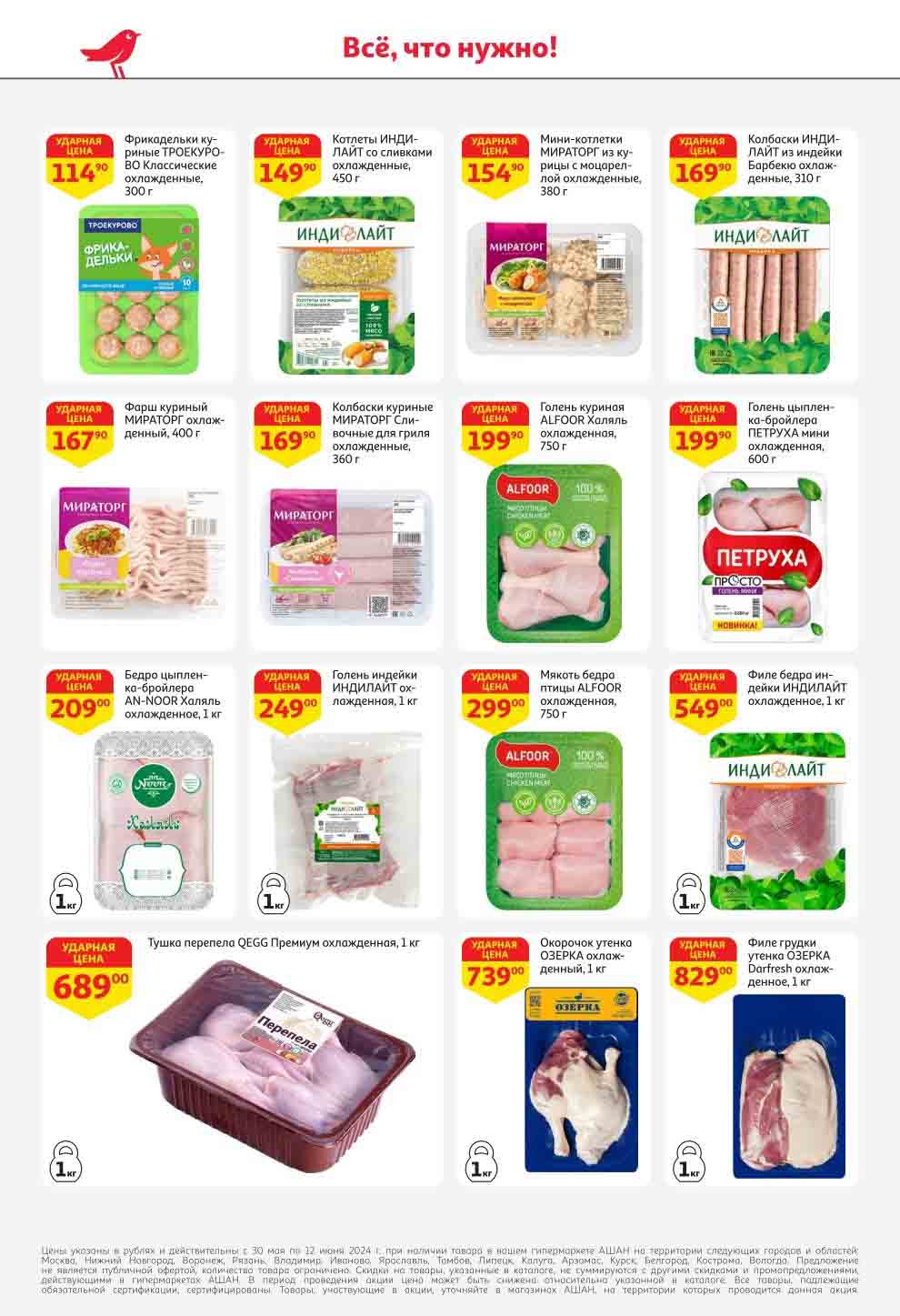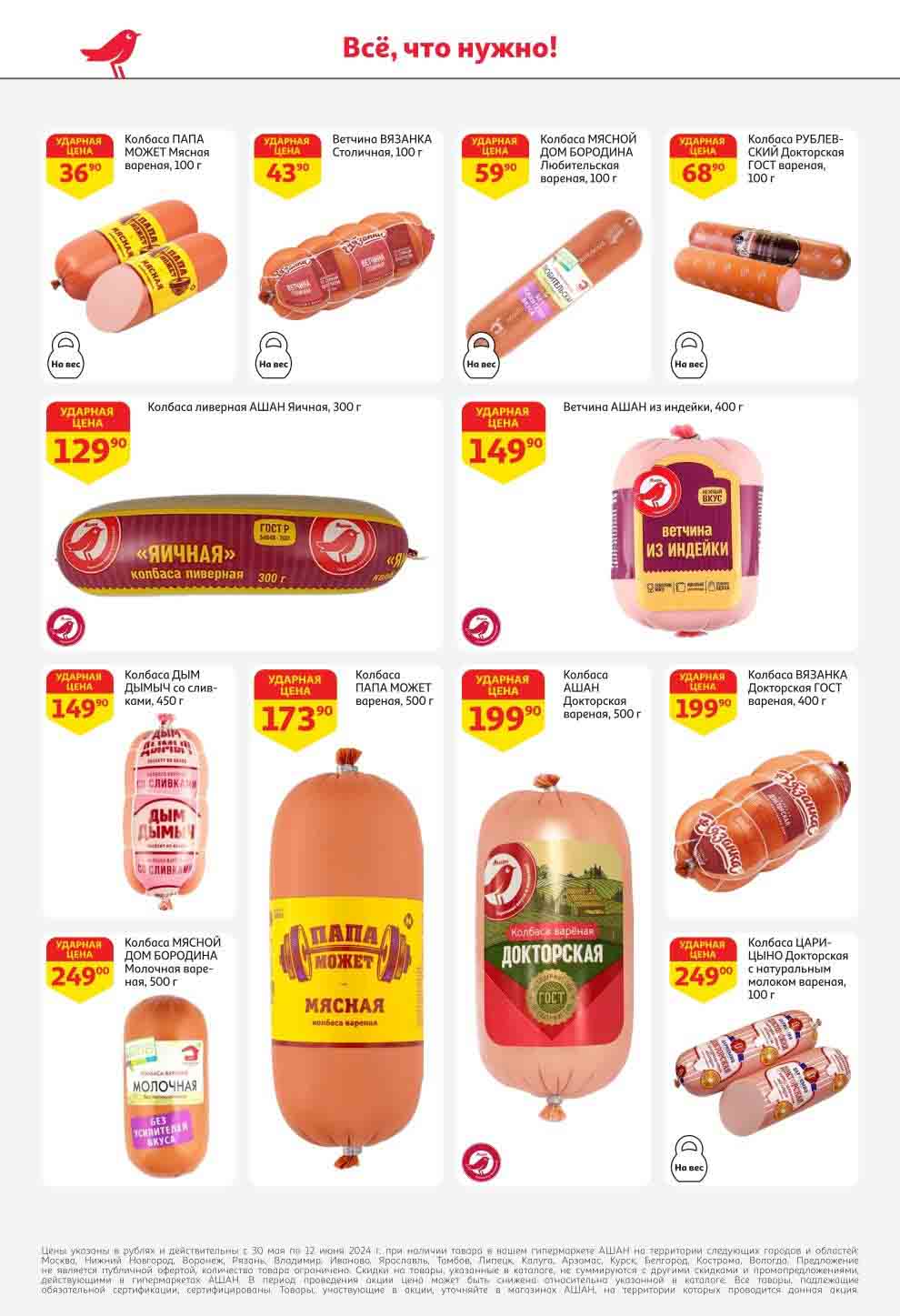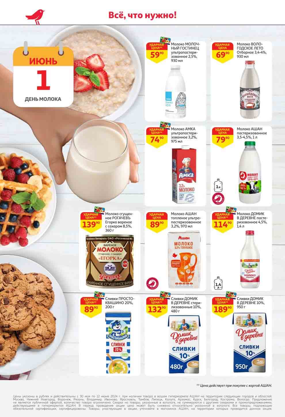 На страницах каталога Ашан вы найдете все свои любимые продукты, которые сейчас предлагаются в супермаркете. Не пропустите последние специальные предложения и сэкономьте на покупках. Предложение действительно при наличии товара на прилавках. Скидки на товары, указанные в каталоге, не суммируются с другими скидками. Изображения товаров могут незначительно отличаться от представленных на полках. Цены по акции Ашан действуют в городах: Москва. Балашиха. Химки. Подольск. Королев. Мытищи. Люберцы. Электросталь. Коломна. Одинцово. Железнодорожный, Серпухов, Орехово-Зуево. Красногорск, Щелково, Сергиев Посад, Пушкино. Жуковский, Ногинск, Раменское и многих других населенных пунктах Московского региона.