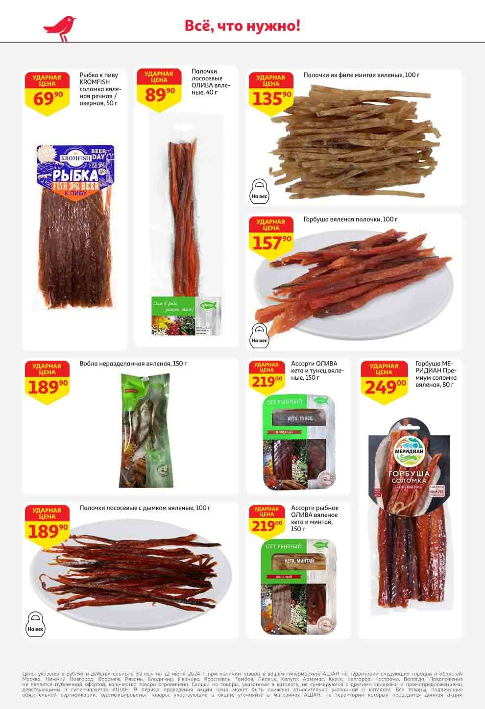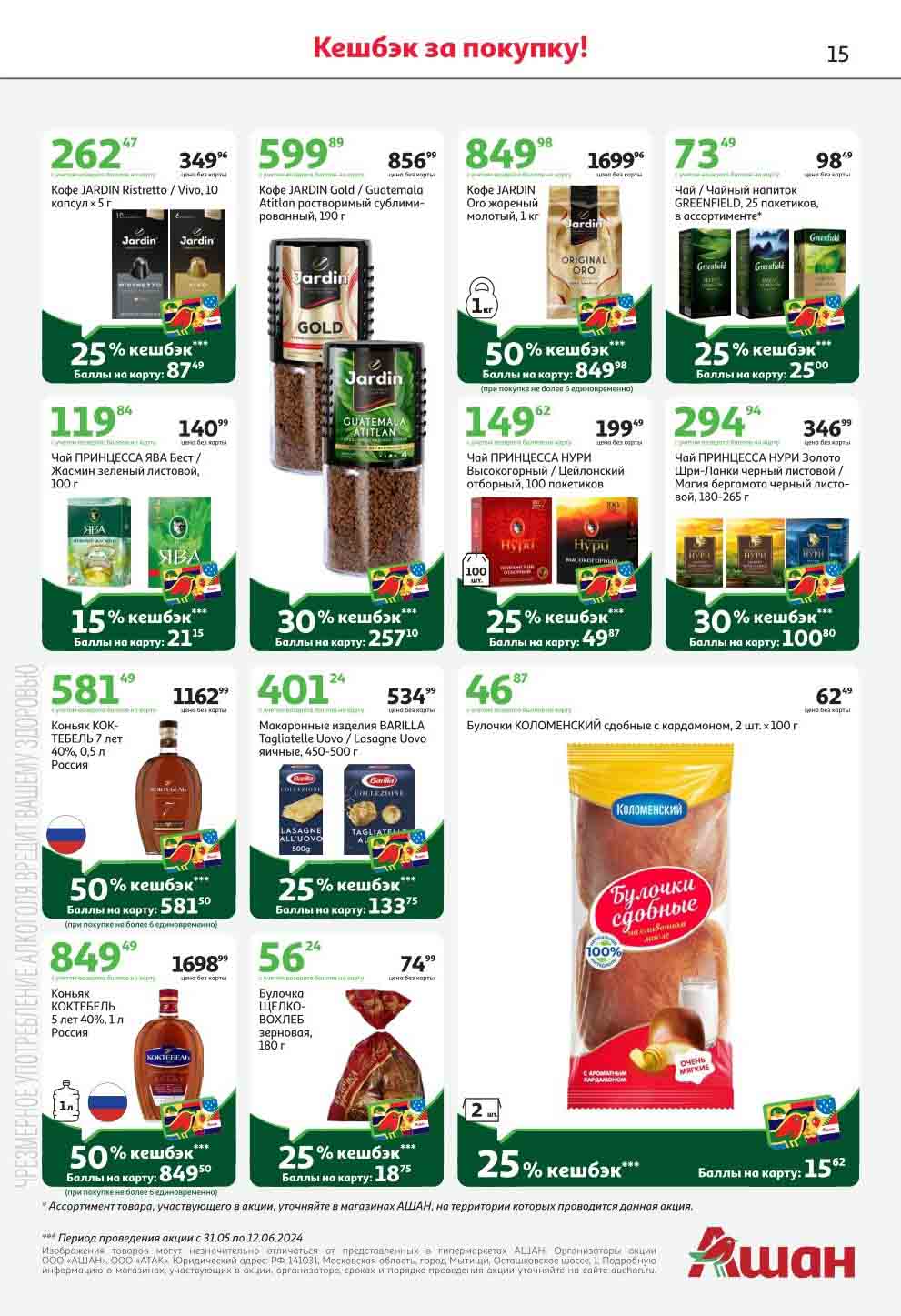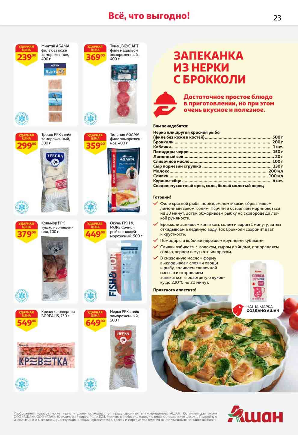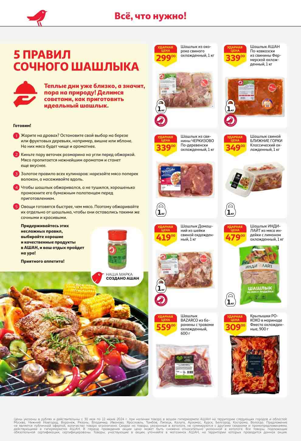 На страницах каталога Ашан вы найдете все свои любимые продукты, которые сейчас предлагаются в супермаркете. Не пропустите последние специальные предложения и сэкономьте на покупках. Предложение действительно при наличии товара на прилавках. Скидки на товары, указанные в каталоге, не суммируются с другими скидками. Изображения товаров могут незначительно отличаться от представленных на полках. Цены по акции Ашан действуют в городах: Москва. Балашиха. Химки. Подольск. Королев. Мытищи. Люберцы. Электросталь. Коломна. Одинцово. Железнодорожный, Серпухов, Орехово-Зуево. Красногорск, Щелково, Сергиев Посад, Пушкино. Жуковский, Ногинск, Раменское и многих других населенных пунктах Московского региона.