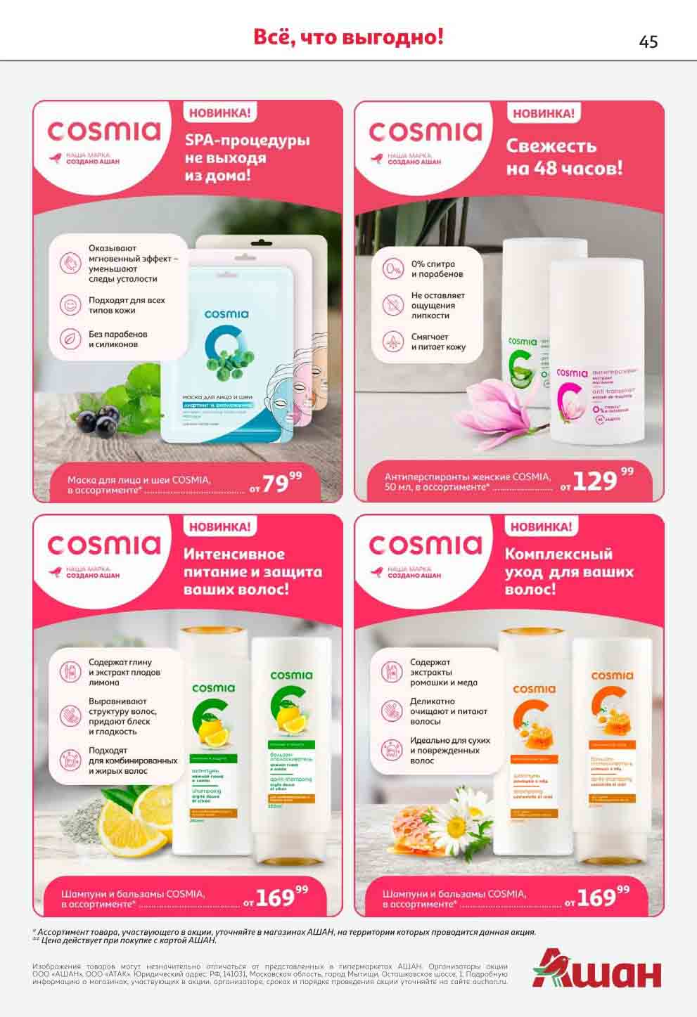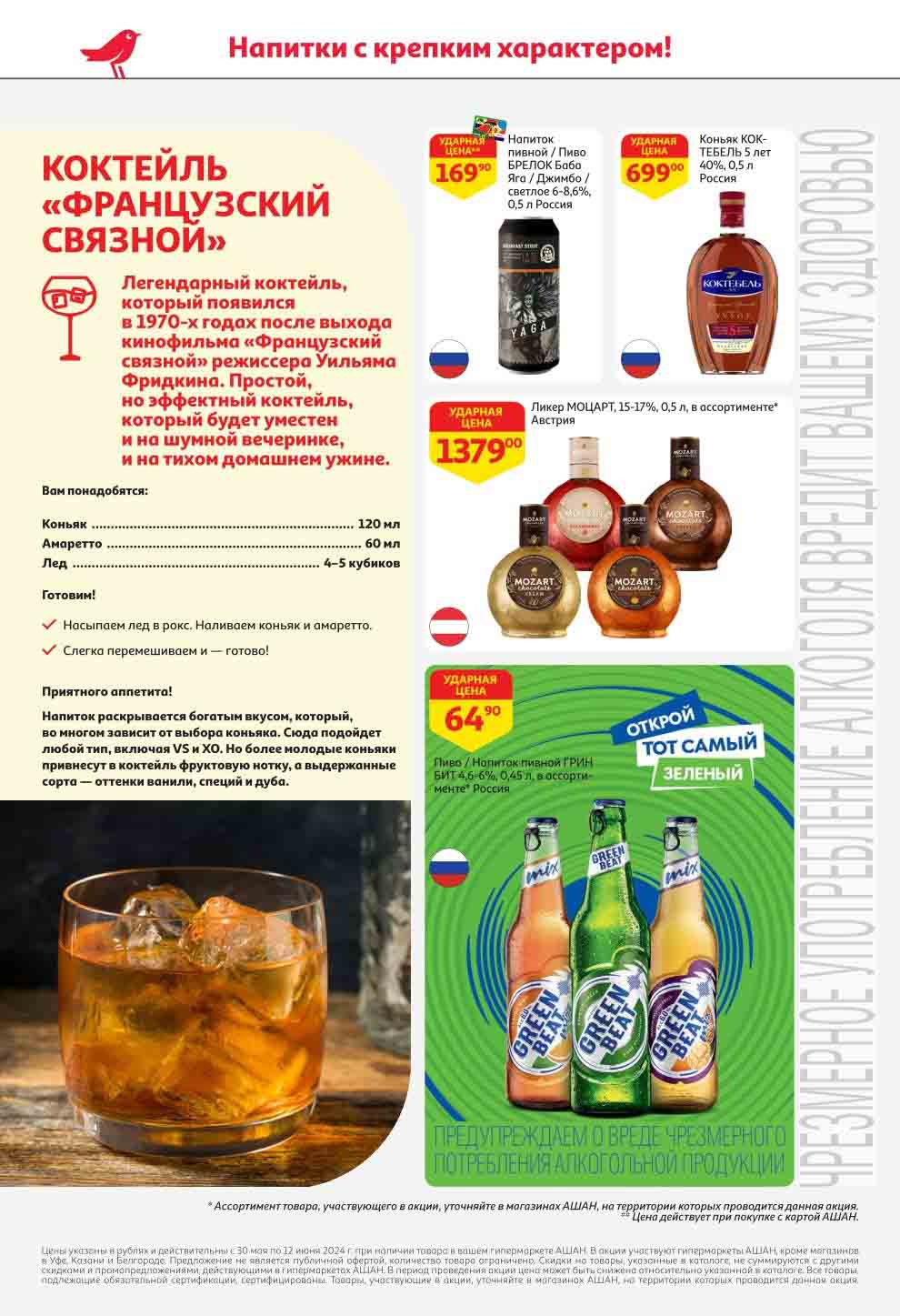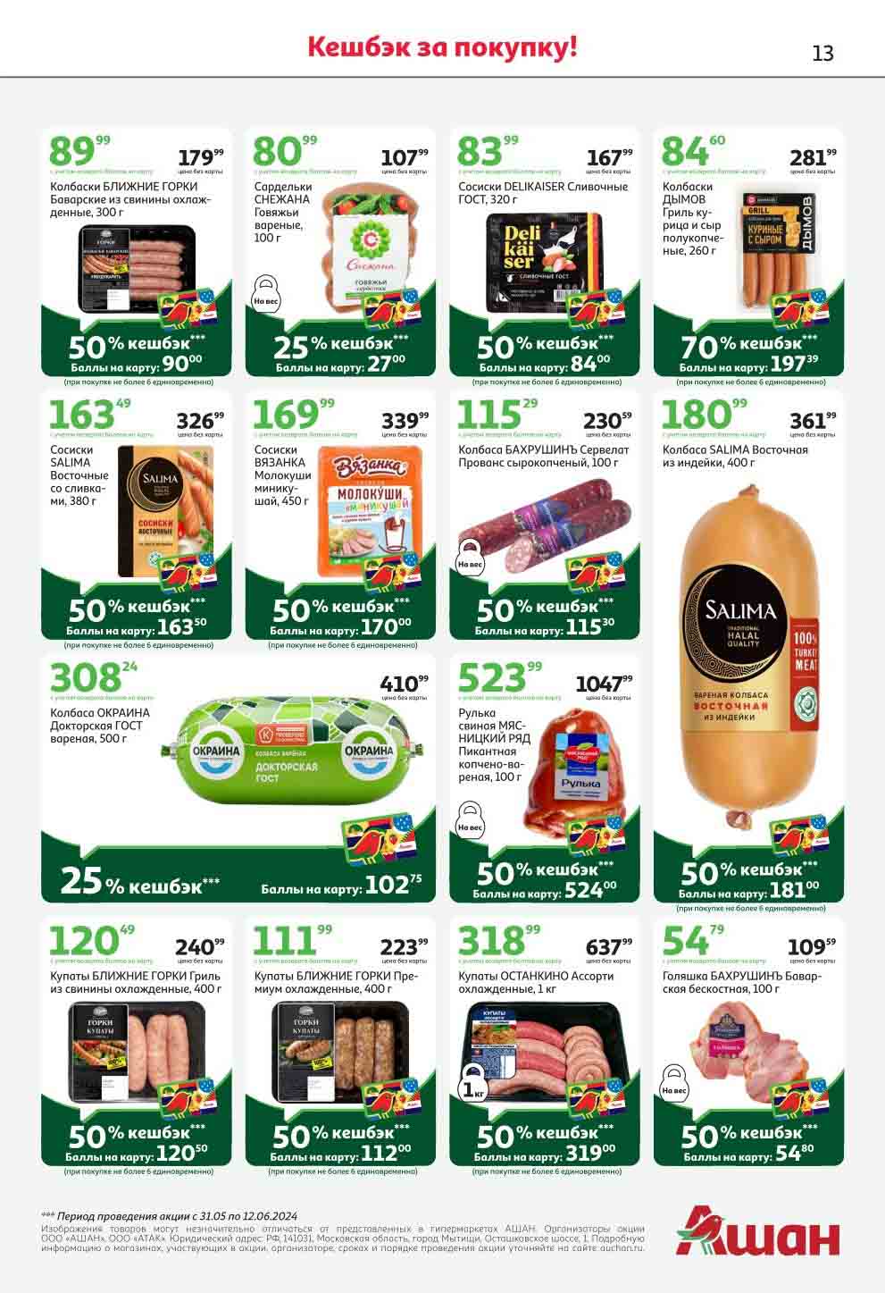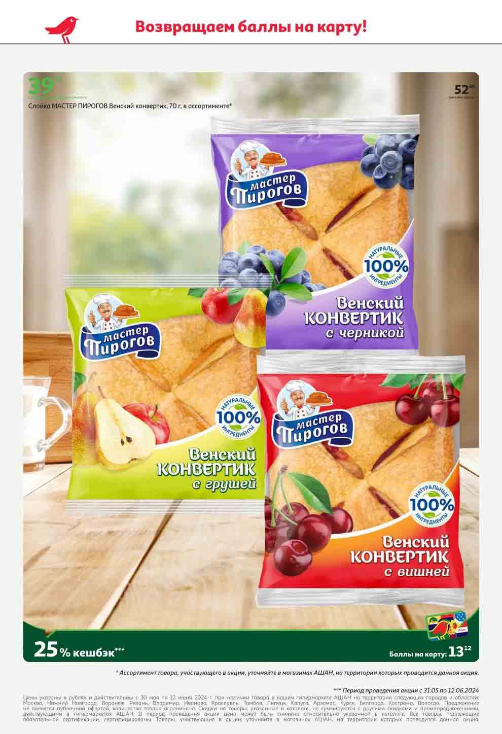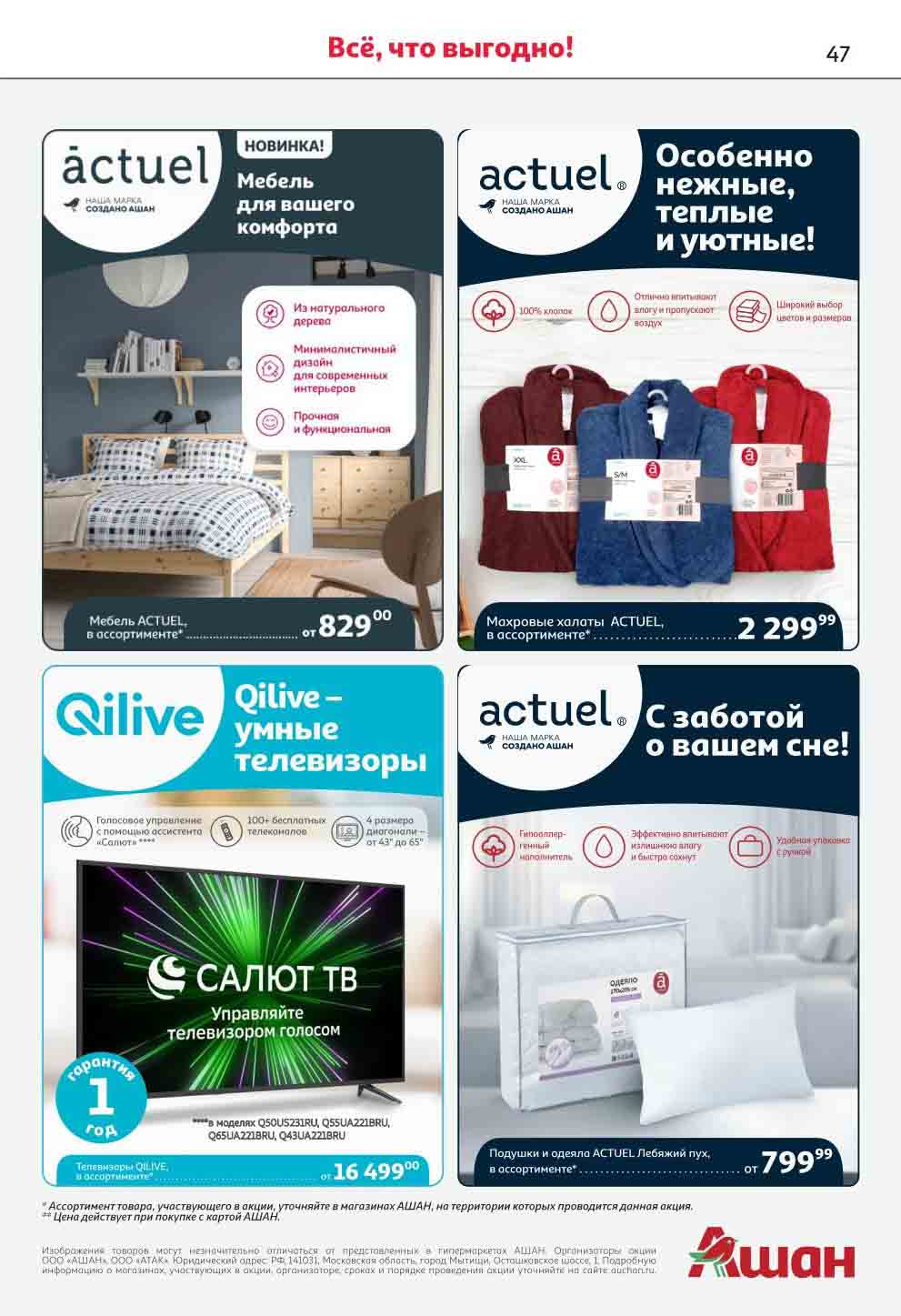 На страницах каталога Ашан вы найдете все свои любимые продукты, которые сейчас предлагаются в супермаркете. Не пропустите последние специальные предложения и сэкономьте на покупках. Предложение действительно при наличии товара на прилавках. Скидки на товары, указанные в каталоге, не суммируются с другими скидками. Изображения товаров могут незначительно отличаться от представленных на полках. Цены по акции Ашан действуют в городах: Москва. Балашиха. Химки. Подольск. Королев. Мытищи. Люберцы. Электросталь. Коломна. Одинцово. Железнодорожный, Серпухов, Орехово-Зуево. Красногорск, Щелково, Сергиев Посад, Пушкино. Жуковский, Ногинск, Раменское и многих других населенных пунктах Московского региона.