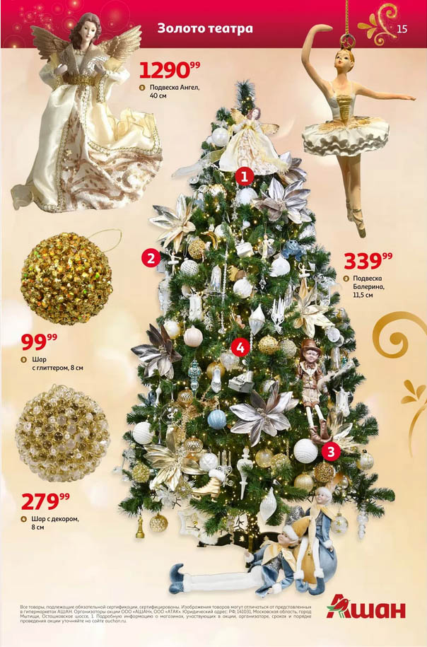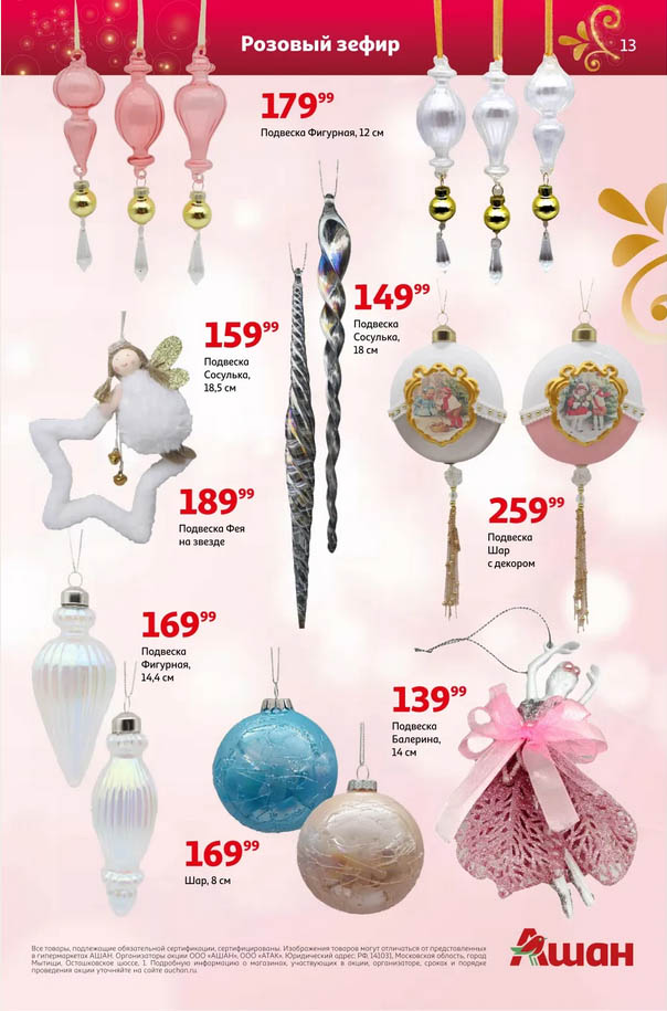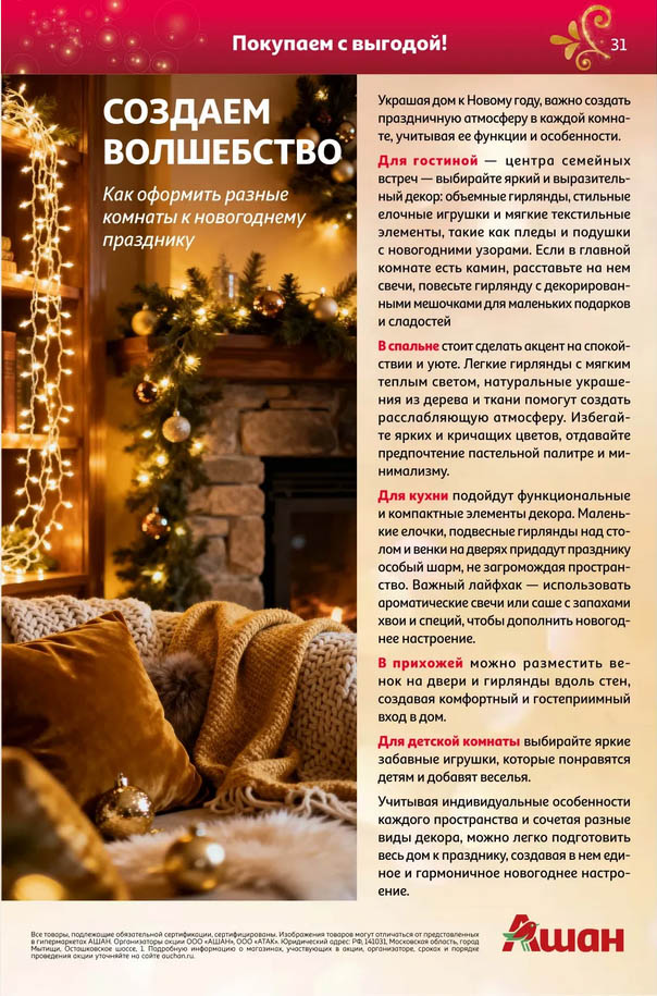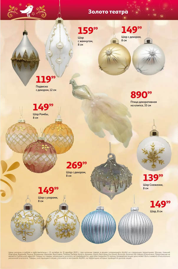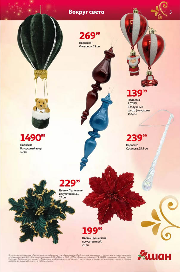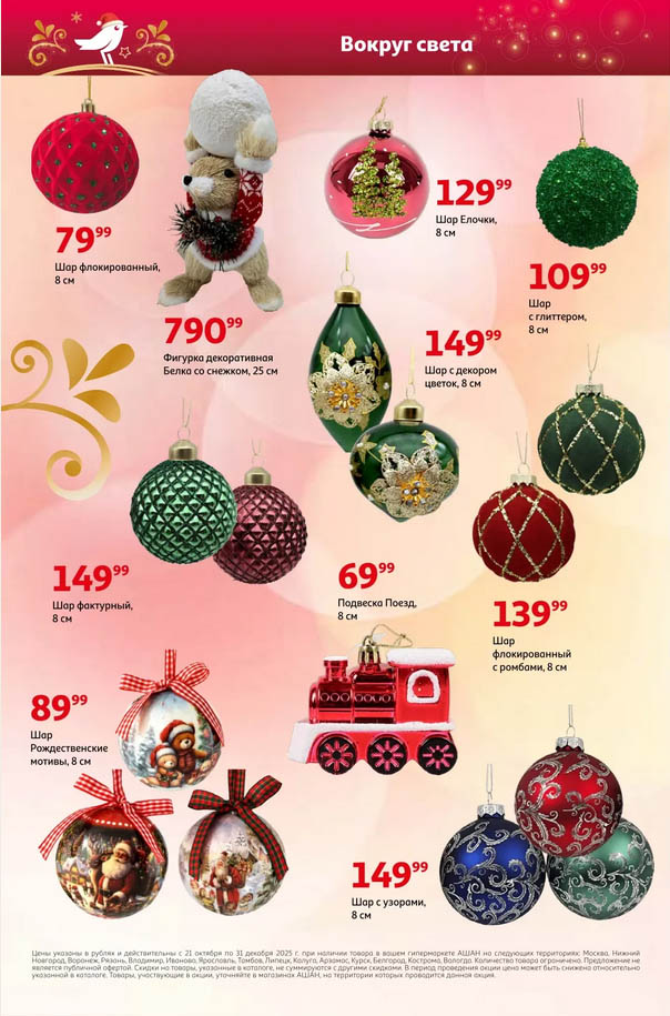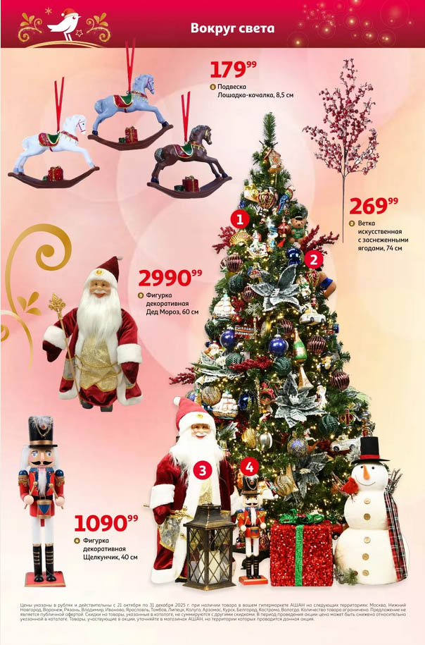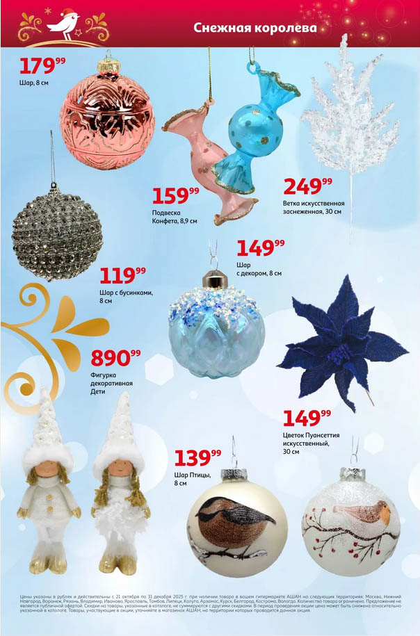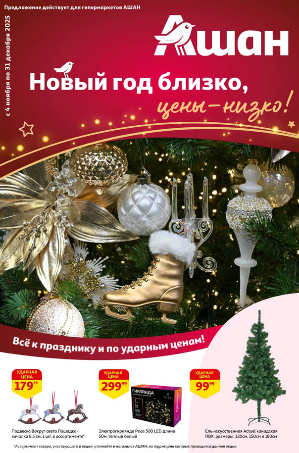 Ашан акции с 4 ноября — 31 декабря 2025. Каталог новогодних украшений и декора