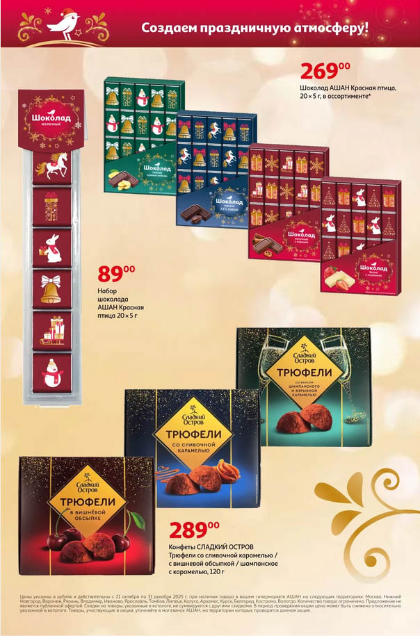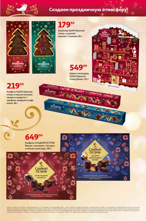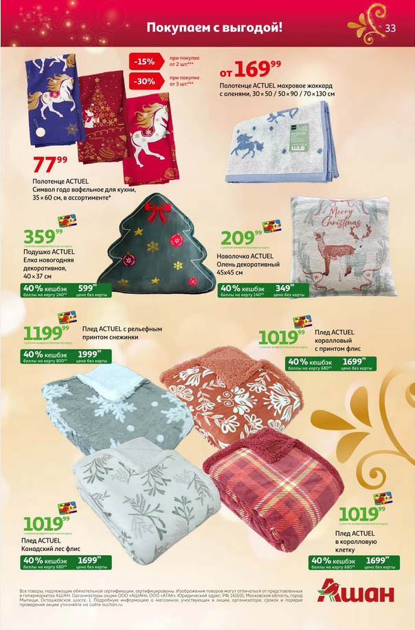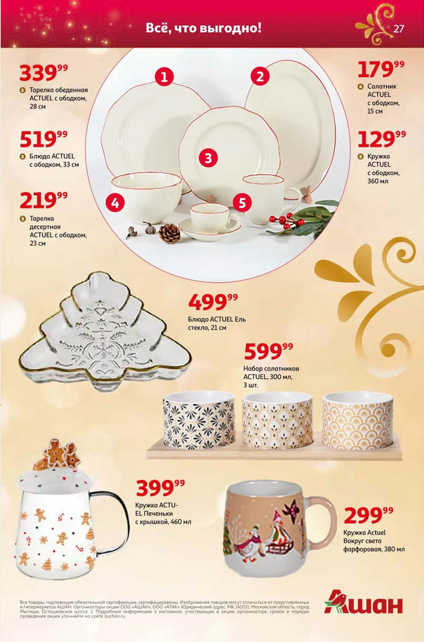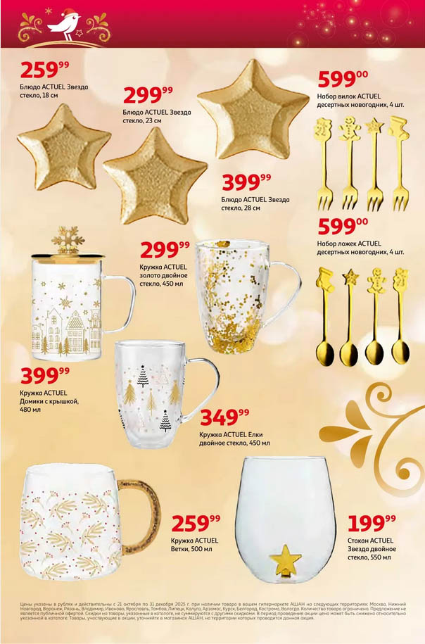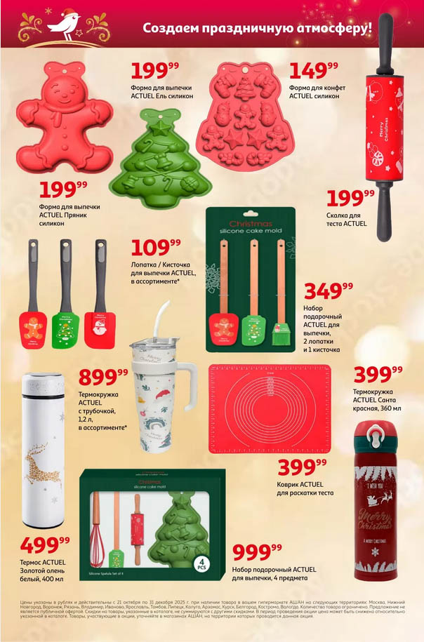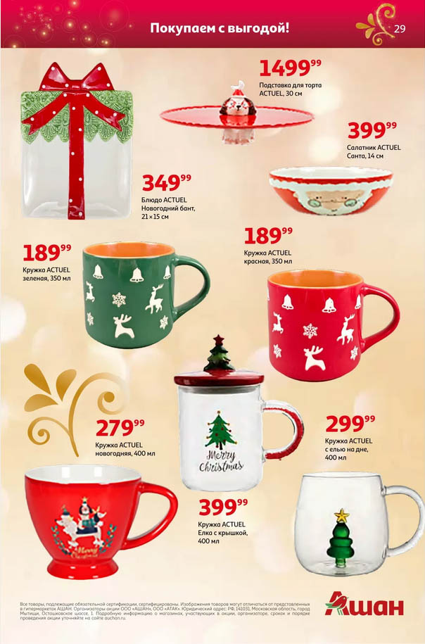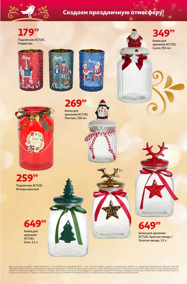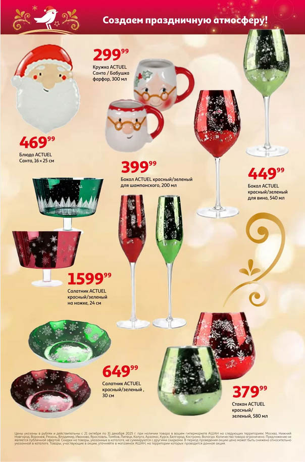 Ашан акции с 4 ноября — 31 декабря 2025. Каталог новогодних украшений и декора
