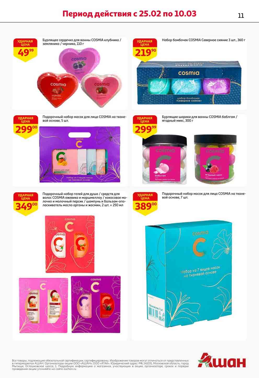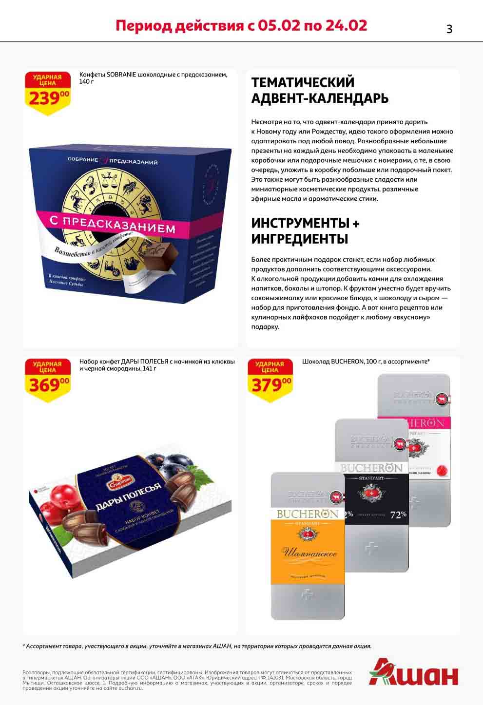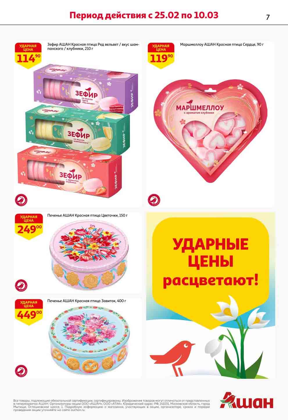 На страницах каталога Ашан вы найдете все свои любимые продукты, которые сейчас предлагаются в супермаркете. Не пропустите последние специальные предложения и сэкономьте на покупках. Предложение действительно при наличии товара на прилавках. Скидки на товары, указанные в каталоге, не суммируются с другими скидками. Изображения товаров могут незначительно отличаться от представленных на полках. Цены по акции Ашан действуют в городах: Москва. Балашиха. Химки. Подольск. Королев. Мытищи. Люберцы. Электросталь. Коломна. Одинцово. Железнодорожный, Серпухов, Орехово-Зуево. Красногорск, Щелково, Сергиев Посад, Пушкино. Жуковский, Ногинск, Раменское и многих других населенных пунктах Московского региона.