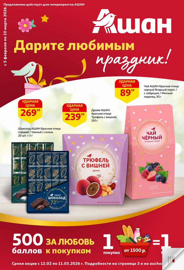 Ашан акции с 5 февраля — 10 марта 2026. Каталог Дарите любимым праздник