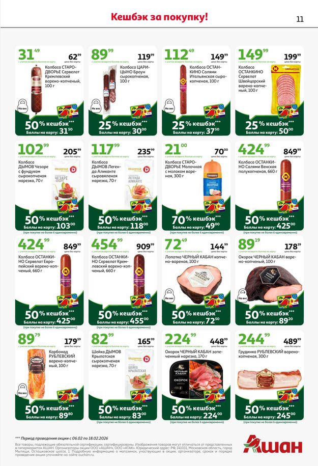 Подробную информацию об правилах, адресах и скидках узнавайте в магазинах или по тел. 8 800 700-58-00 и на сайте: auchan.ru
