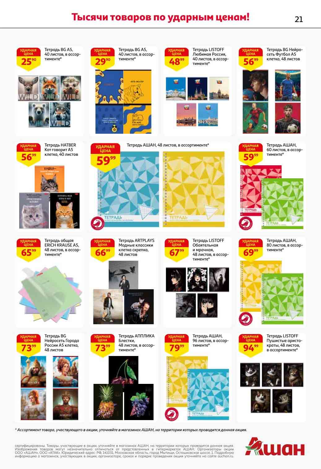 На страницах каталога Ашан вы найдете все свои любимые продукты, которые сейчас предлагаются в супермаркете. Не пропустите последние специальные предложения и сэкономьте на покупках. Предложение действительно при наличии товара на прилавках. Скидки на товары, указанные в каталоге, не суммируются с другими скидками. Изображения товаров могут незначительно отличаться от представленных на полках. Цены по акции Ашан действуют в городах: Москва. Балашиха. Химки. Подольск. Королев. Мытищи. Люберцы. Электросталь. Коломна. Одинцово. Железнодорожный, Серпухов, Орехово-Зуево. Красногорск, Щелково, Сергиев Посад, Пушкино. Жуковский, Ногинск, Раменское и многих других населенных пунктах Московского региона.