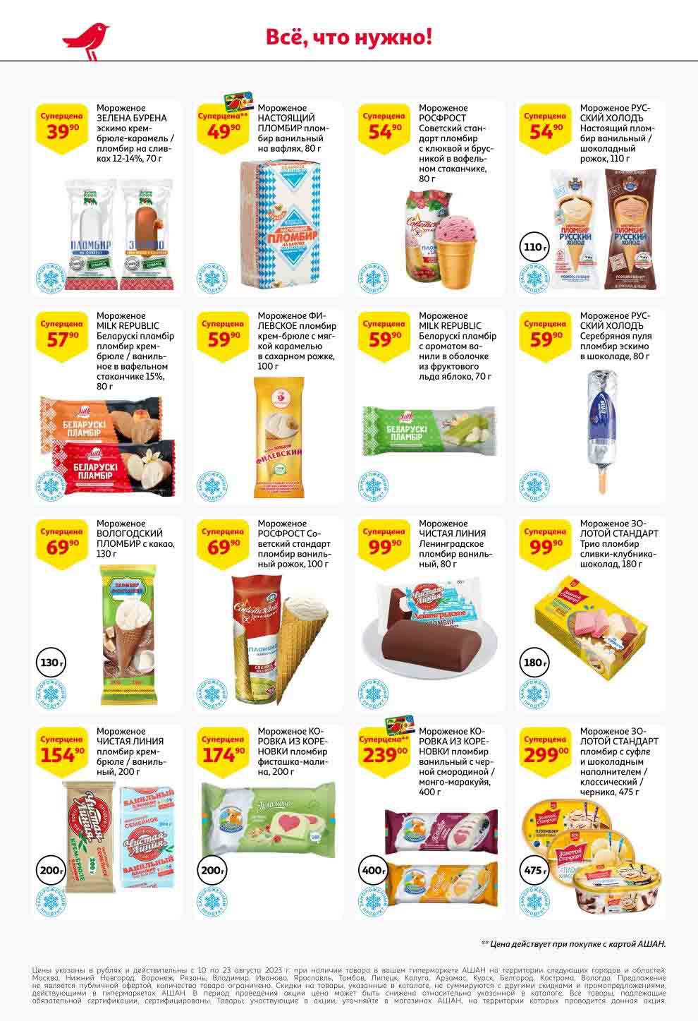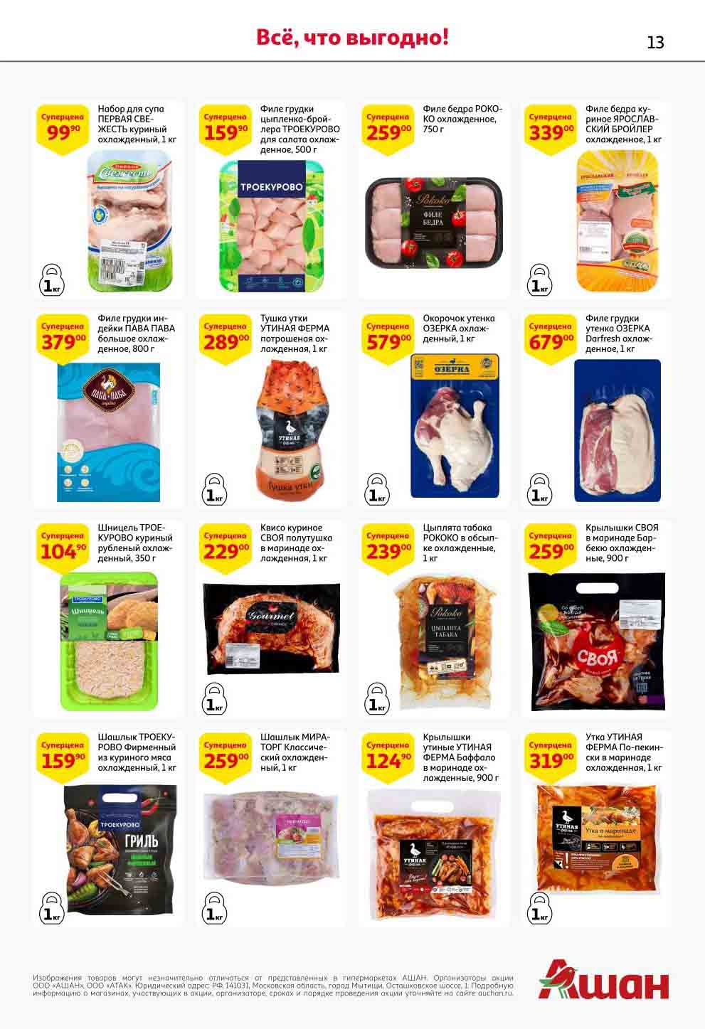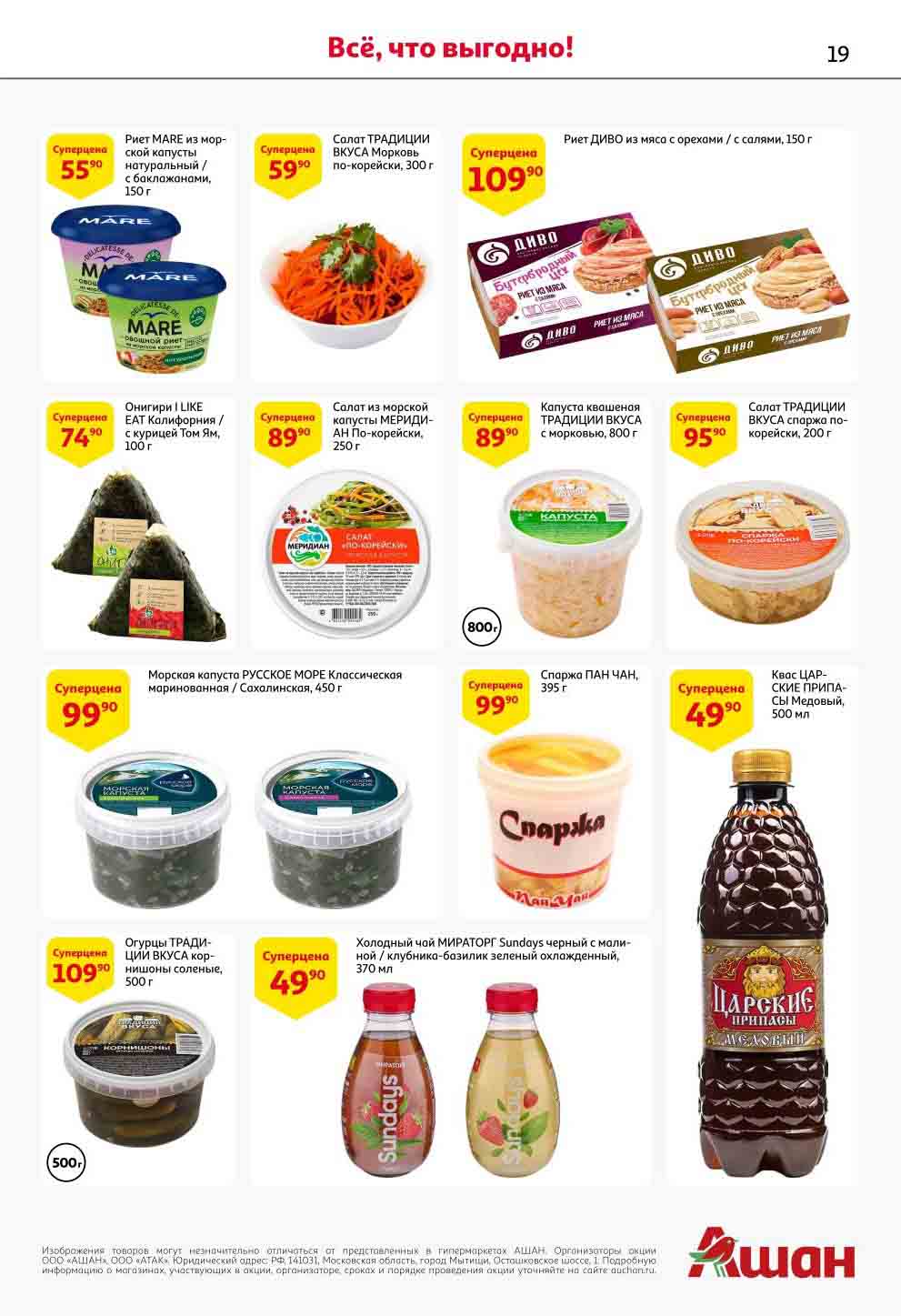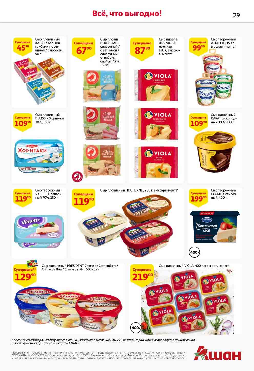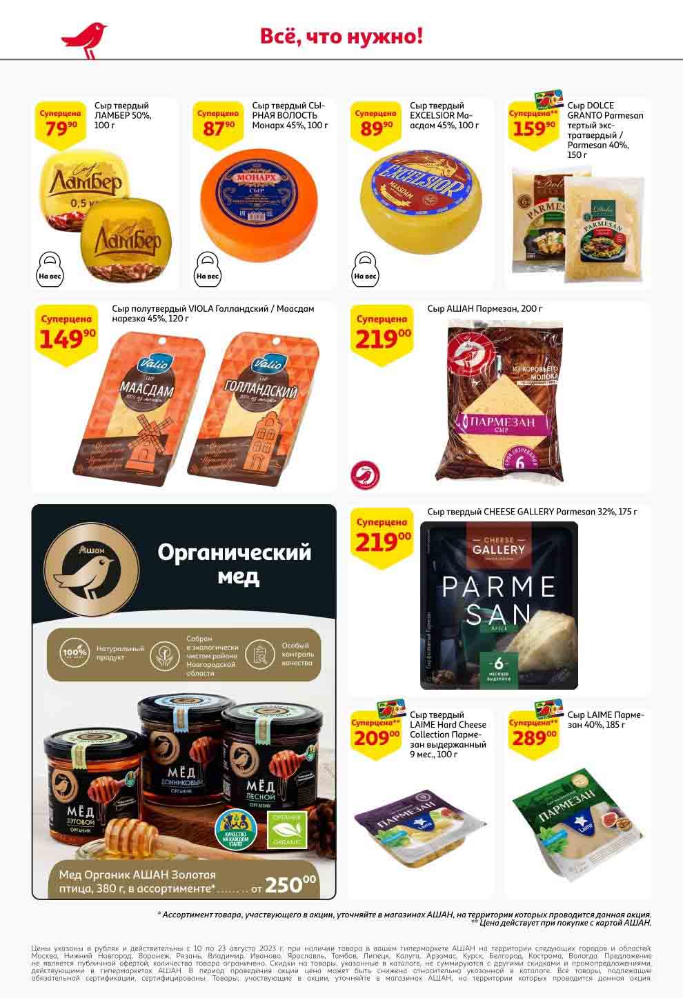 На страницах каталога Ашан вы найдете все свои любимые продукты, которые сейчас предлагаются в супермаркете. Не пропустите последние специальные предложения и сэкономьте на покупках. Предложение действительно при наличии товара на прилавках. Скидки на товары, указанные в каталоге, не суммируются с другими скидками. Изображения товаров могут незначительно отличаться от представленных на полках. Цены по акции Ашан действуют в городах: Москва. Балашиха. Химки. Подольск. Королев. Мытищи. Люберцы. Электросталь. Коломна. Одинцово. Железнодорожный, Серпухов, Орехово-Зуево. Красногорск, Щелково, Сергиев Посад, Пушкино. Жуковский, Ногинск, Раменское и многих других населенных пунктах Московского региона.