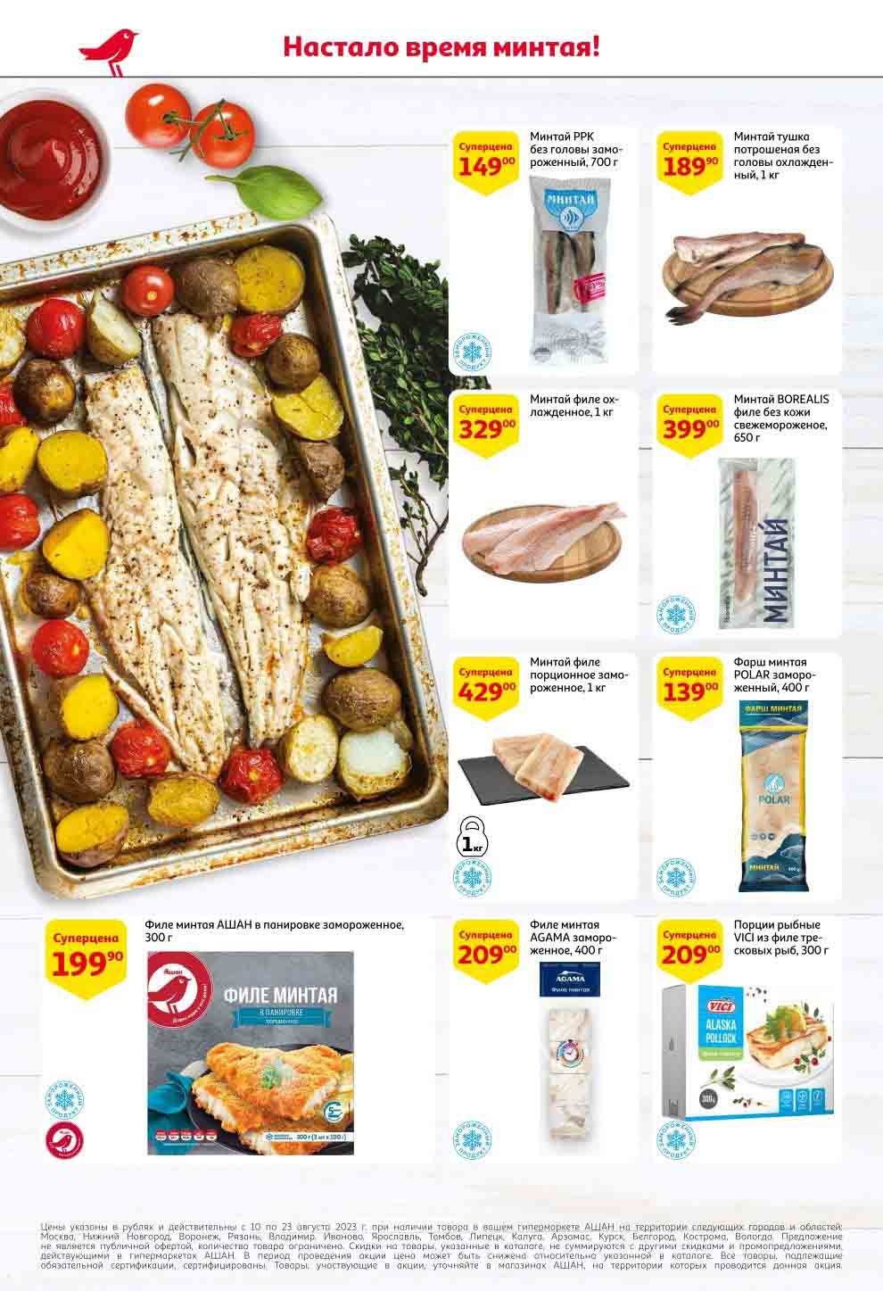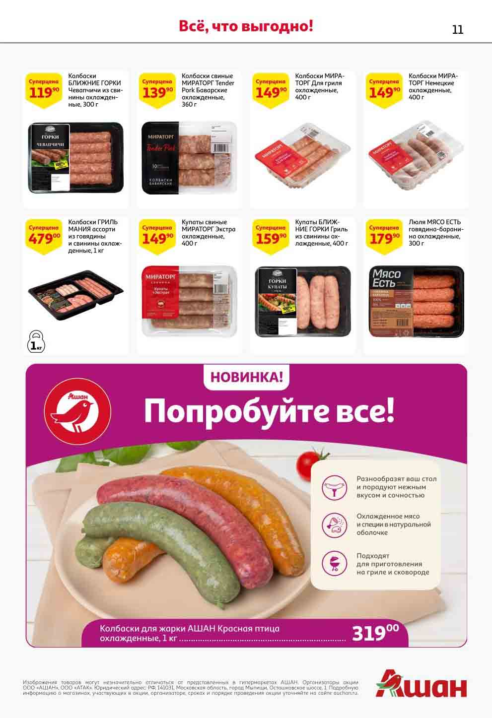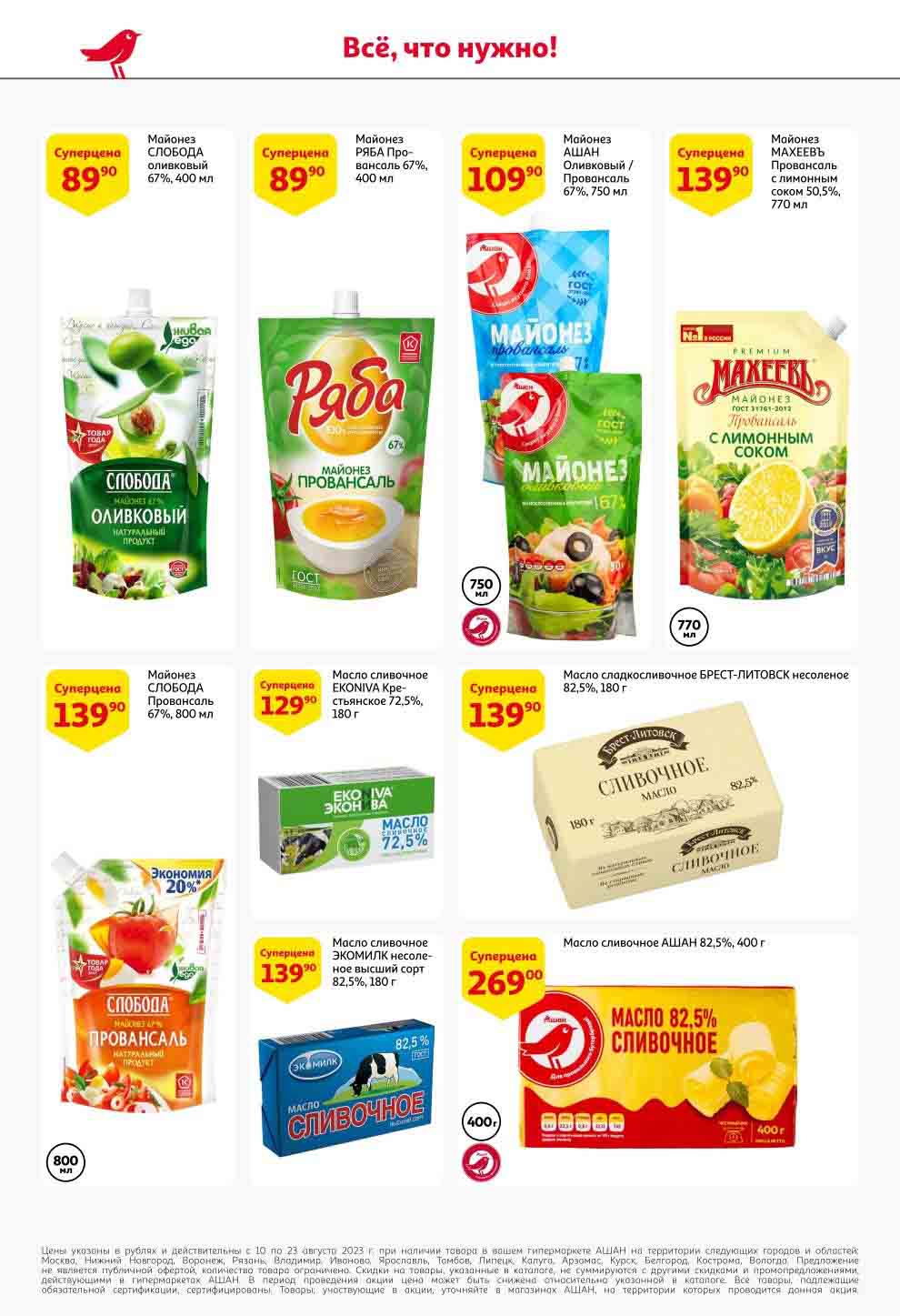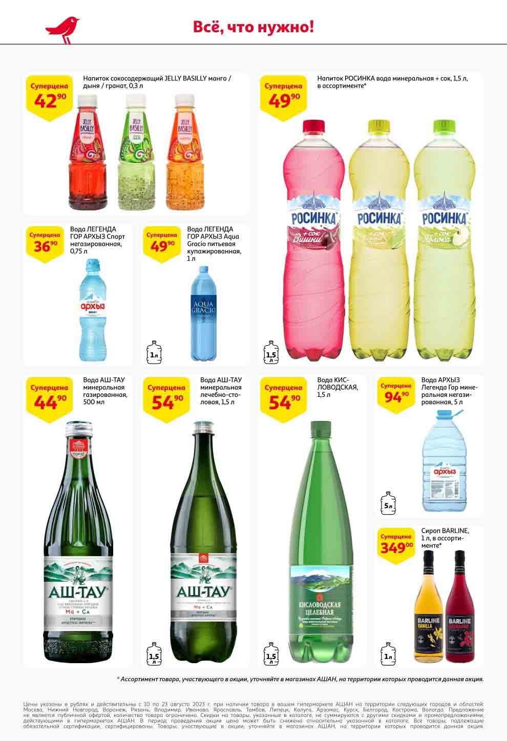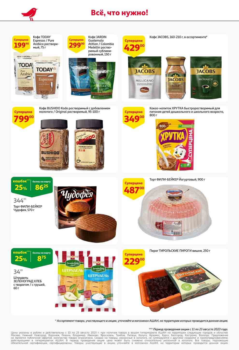На страницах каталога Ашан вы найдете все свои любимые продукты, которые сейчас предлагаются в супермаркете. Не пропустите последние специальные предложения и сэкономьте на покупках. Предложение действительно при наличии товара на прилавках. Скидки на товары, указанные в каталоге, не суммируются с другими скидками. Изображения товаров могут незначительно отличаться от представленных на полках. Цены по акции Ашан действуют в городах: Москва. Балашиха. Химки. Подольск. Королев. Мытищи. Люберцы. Электросталь. Коломна. Одинцово. Железнодорожный, Серпухов, Орехово-Зуево. Красногорск, Щелково, Сергиев Посад, Пушкино. Жуковский, Ногинск, Раменское и многих других населенных пунктах Московского региона.