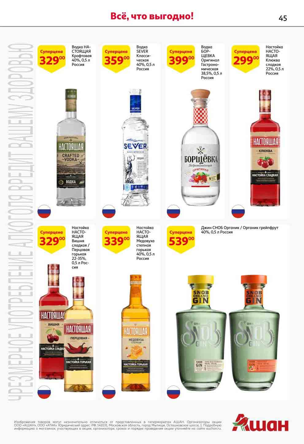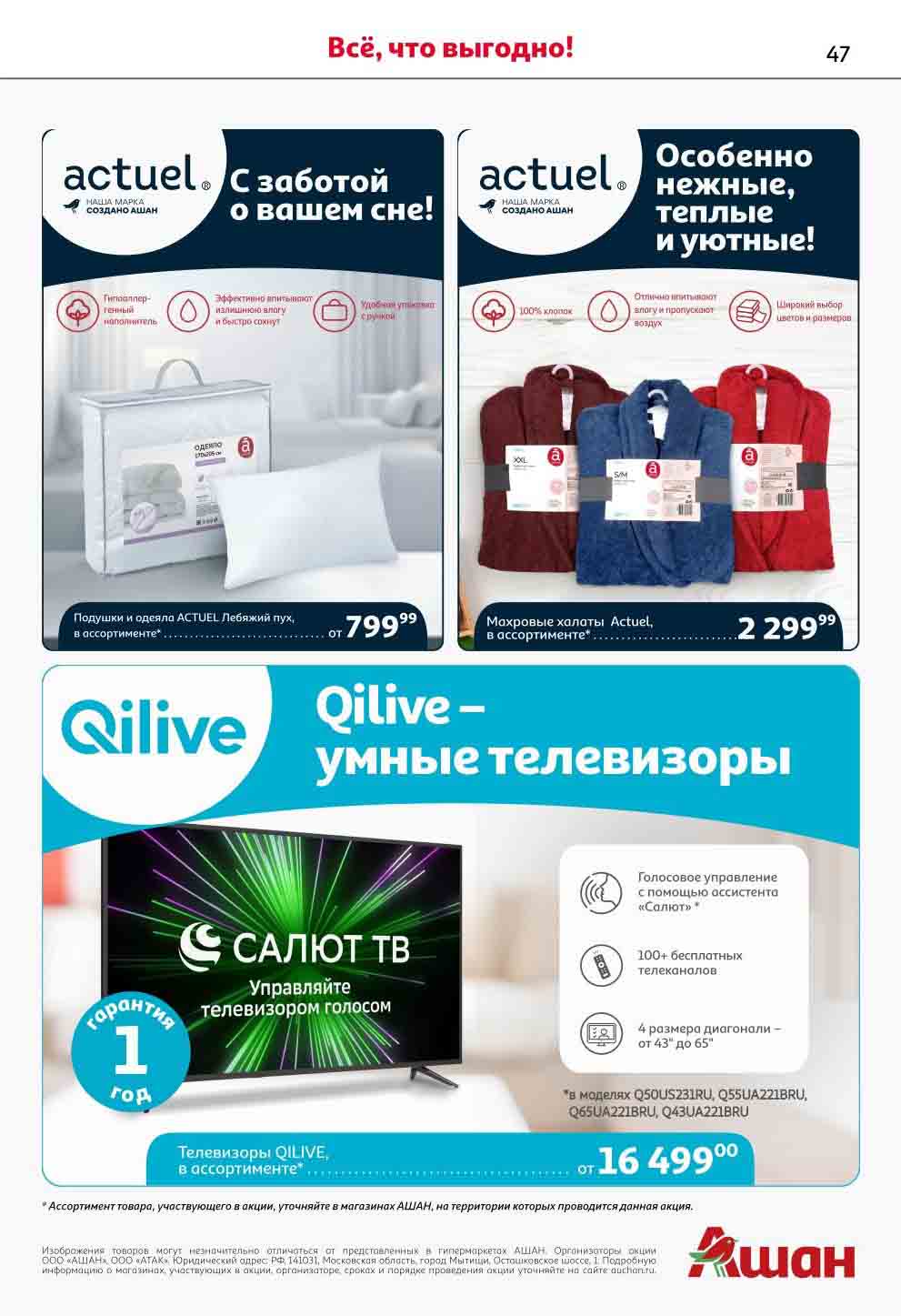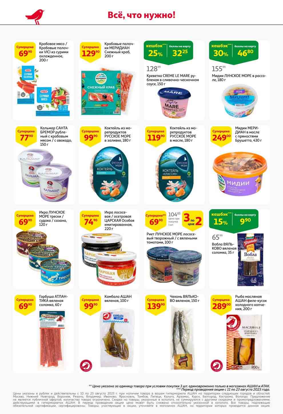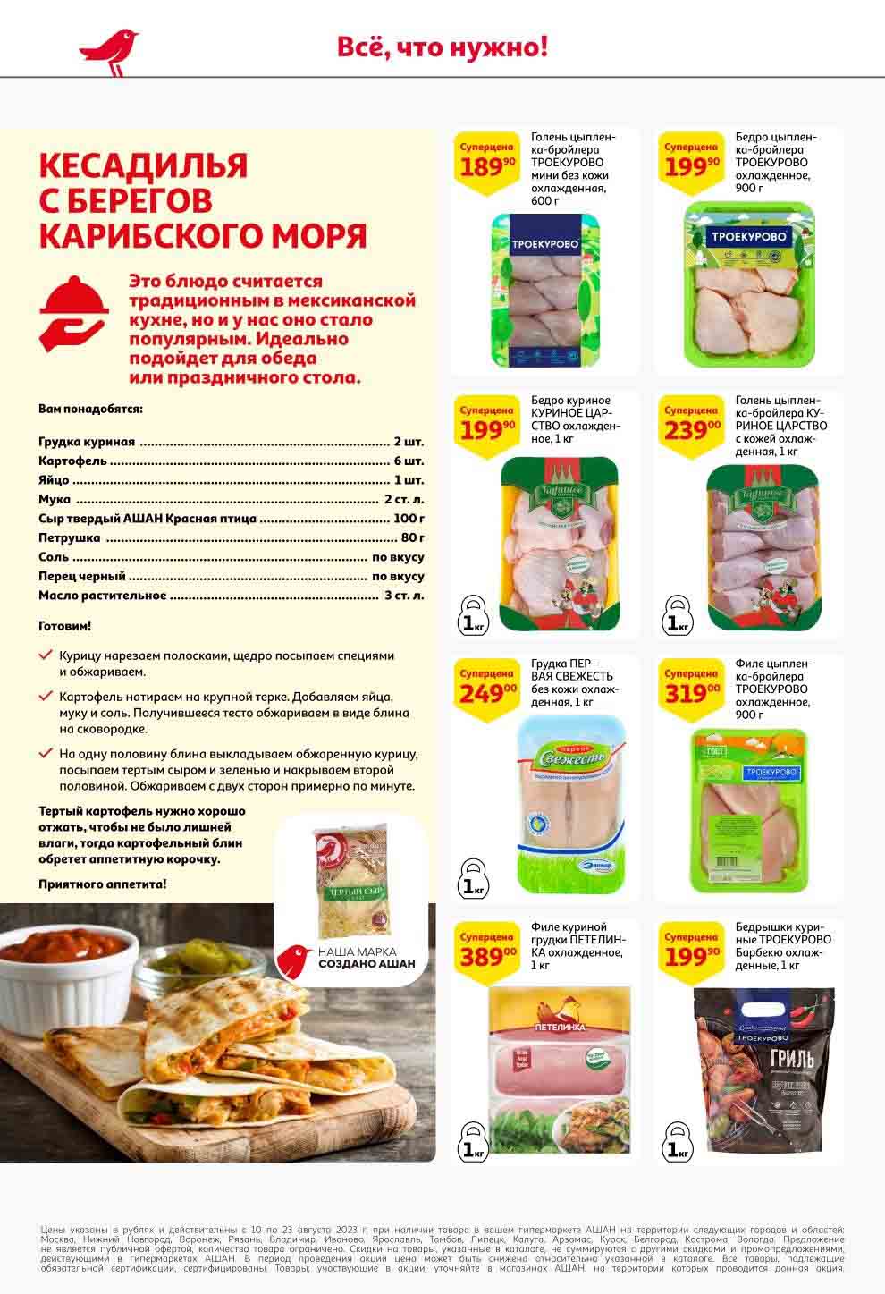 На страницах каталога Ашан вы найдете все свои любимые продукты, которые сейчас предлагаются в супермаркете. Не пропустите последние специальные предложения и сэкономьте на покупках. Предложение действительно при наличии товара на прилавках. Скидки на товары, указанные в каталоге, не суммируются с другими скидками. Изображения товаров могут незначительно отличаться от представленных на полках. Цены по акции Ашан действуют в городах: Москва. Балашиха. Химки. Подольск. Королев. Мытищи. Люберцы. Электросталь. Коломна. Одинцово. Железнодорожный, Серпухов, Орехово-Зуево. Красногорск, Щелково, Сергиев Посад, Пушкино. Жуковский, Ногинск, Раменское и многих других населенных пунктах Московского региона.