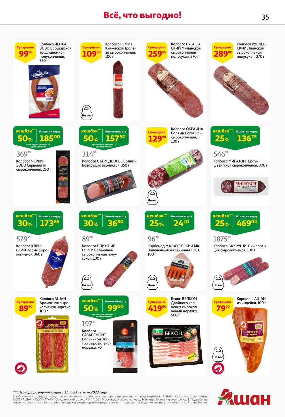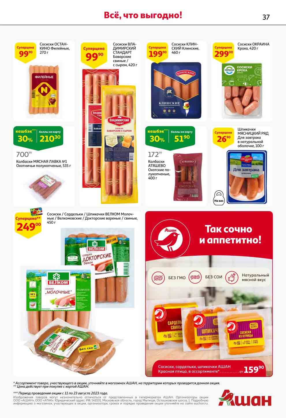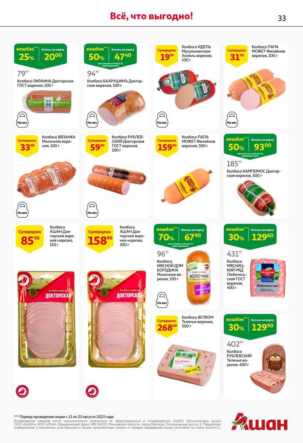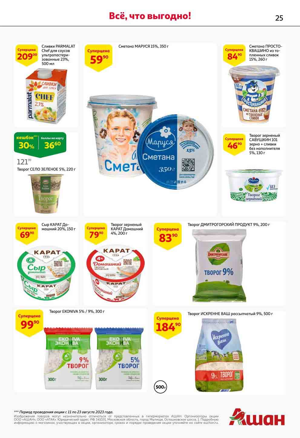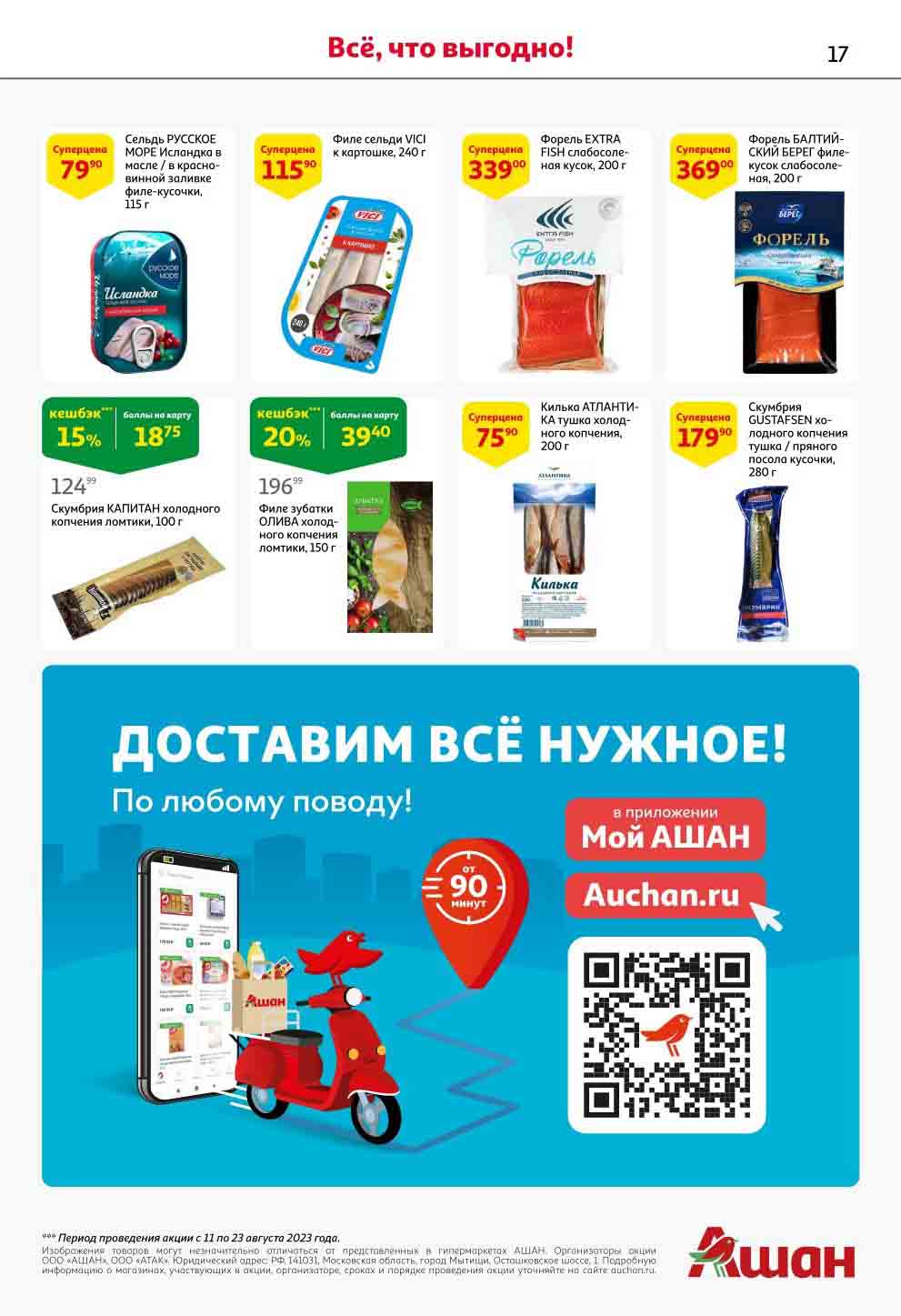 На страницах каталога Ашан вы найдете все свои любимые продукты, которые сейчас предлагаются в супермаркете. Не пропустите последние специальные предложения и сэкономьте на покупках. Предложение действительно при наличии товара на прилавках. Скидки на товары, указанные в каталоге, не суммируются с другими скидками. Изображения товаров могут незначительно отличаться от представленных на полках. Цены по акции Ашан действуют в городах: Москва. Балашиха. Химки. Подольск. Королев. Мытищи. Люберцы. Электросталь. Коломна. Одинцово. Железнодорожный, Серпухов, Орехово-Зуево. Красногорск, Щелково, Сергиев Посад, Пушкино. Жуковский, Ногинск, Раменское и многих других населенных пунктах Московского региона.