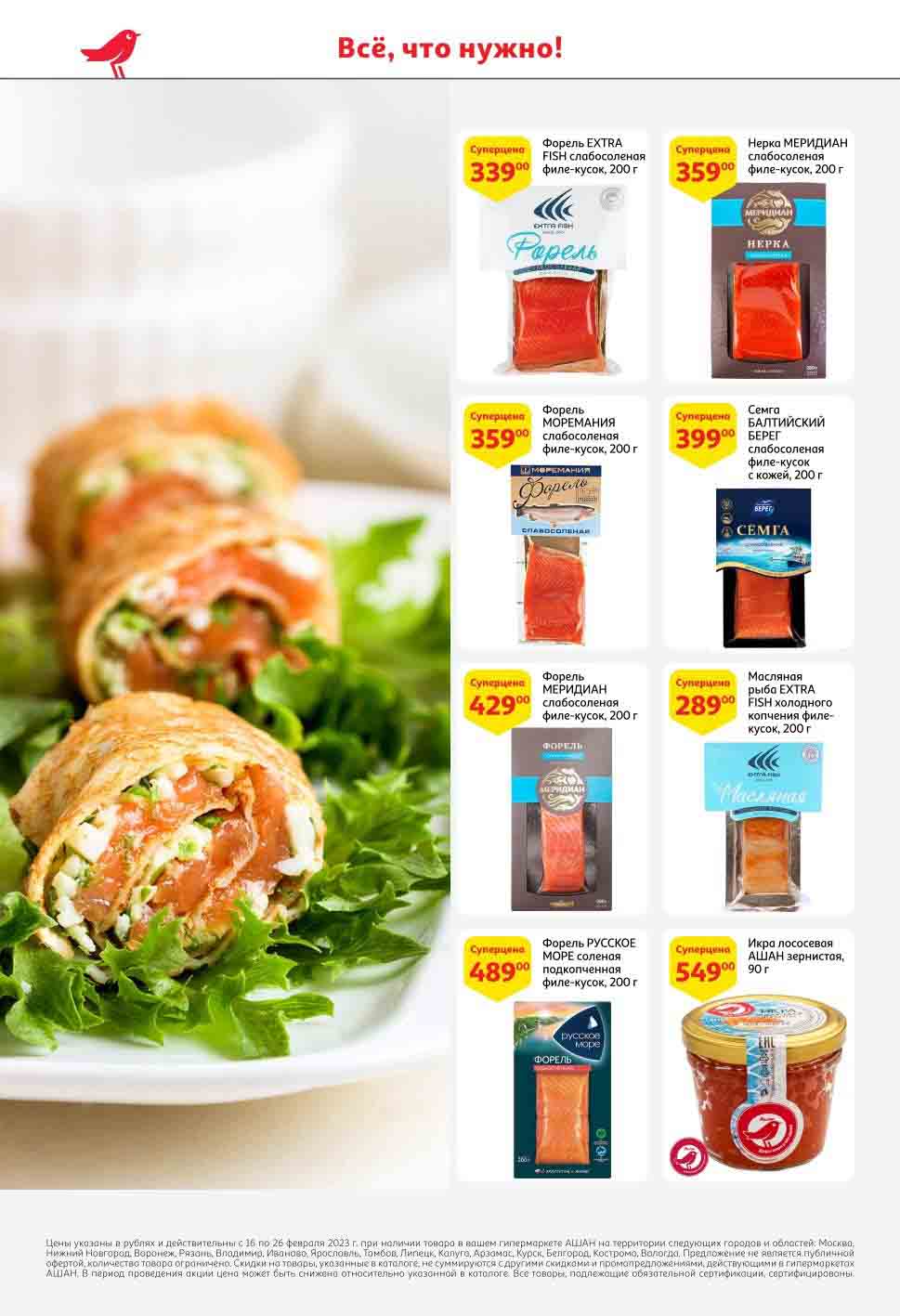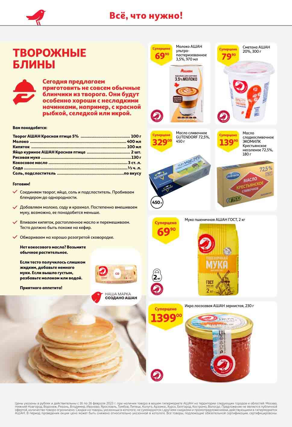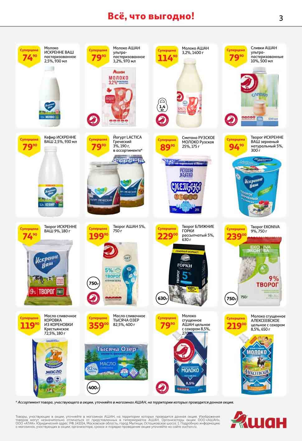 На страницах каталога Ашан вы найдете все свои любимые продукты, которые сейчас предлагаются в супермаркете. Не пропустите последние специальные предложения и сэкономьте на покупках. Предложение действительно при наличии товара на прилавках. Скидки на товары, указанные в каталоге, не суммируются с другими скидками. Изображения товаров могут незначительно отличаться от представленных на полках. Цены по акции Ашан действуют в городах: Москва. Балашиха. Химки. Подольск. Королев. Мытищи. Люберцы. Электросталь. Коломна. Одинцово. Железнодорожный, Серпухов, Орехово-Зуево. Красногорск, Щелково, Сергиев Посад, Пушкино. Жуковский, Ногинск, Раменское и многих других населенных пунктах Московского региона.