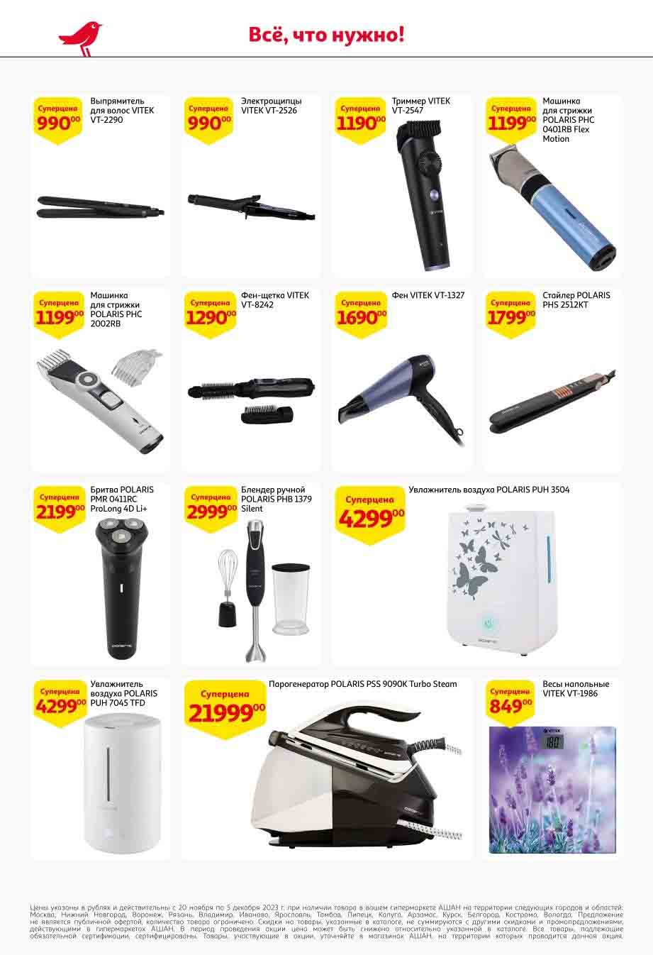 На страницах каталога Ашан вы найдете все свои любимые продукты, которые сейчас предлагаются в супермаркете. Не пропустите последние специальные предложения и сэкономьте на покупках. Предложение действительно при наличии товара на прилавках. Скидки на товары, указанные в каталоге, не суммируются с другими скидками. Изображения товаров могут незначительно отличаться от представленных на полках. Цены по акции Ашан действуют в городах: Москва. Балашиха. Химки. Подольск. Королев. Мытищи. Люберцы. Электросталь. Коломна. Одинцово. Железнодорожный, Серпухов, Орехово-Зуево. Красногорск, Щелково, Сергиев Посад, Пушкино. Жуковский, Ногинск, Раменское и многих других населенных пунктах Московского региона.