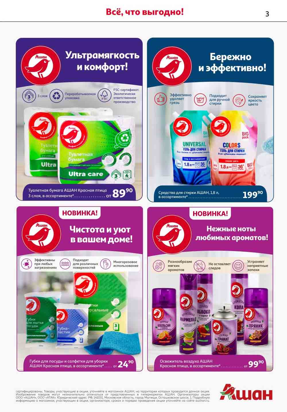 На страницах каталога Ашан вы найдете все свои любимые продукты, которые сейчас предлагаются в супермаркете. Не пропустите последние специальные предложения и сэкономьте на покупках. Предложение действительно при наличии товара на прилавках. Скидки на товары, указанные в каталоге, не суммируются с другими скидками. Изображения товаров могут незначительно отличаться от представленных на полках. Цены по акции Ашан действуют в городах: Москва. Балашиха. Химки. Подольск. Королев. Мытищи. Люберцы. Электросталь. Коломна. Одинцово. Железнодорожный, Серпухов, Орехово-Зуево. Красногорск, Щелково, Сергиев Посад, Пушкино. Жуковский, Ногинск, Раменское и многих других населенных пунктах Московского региона.