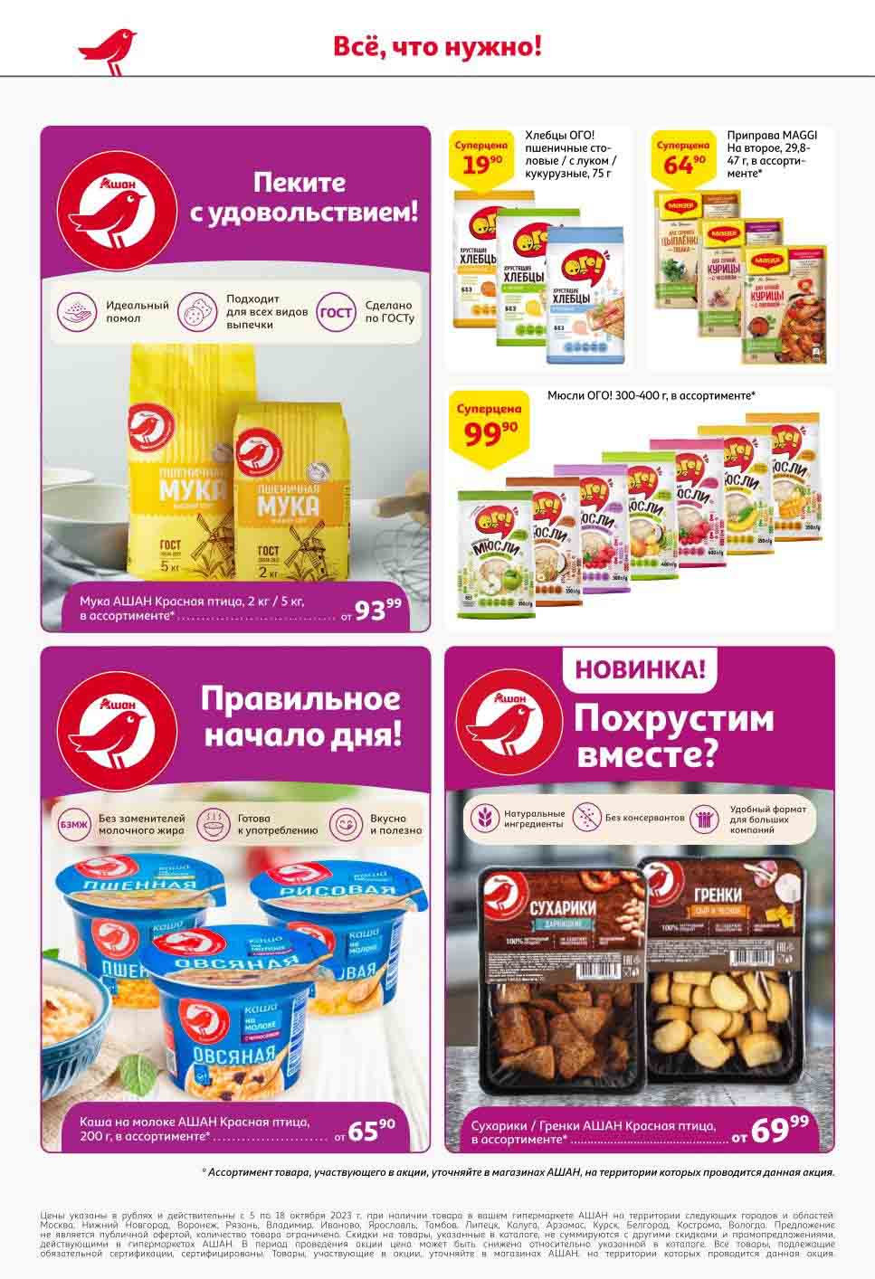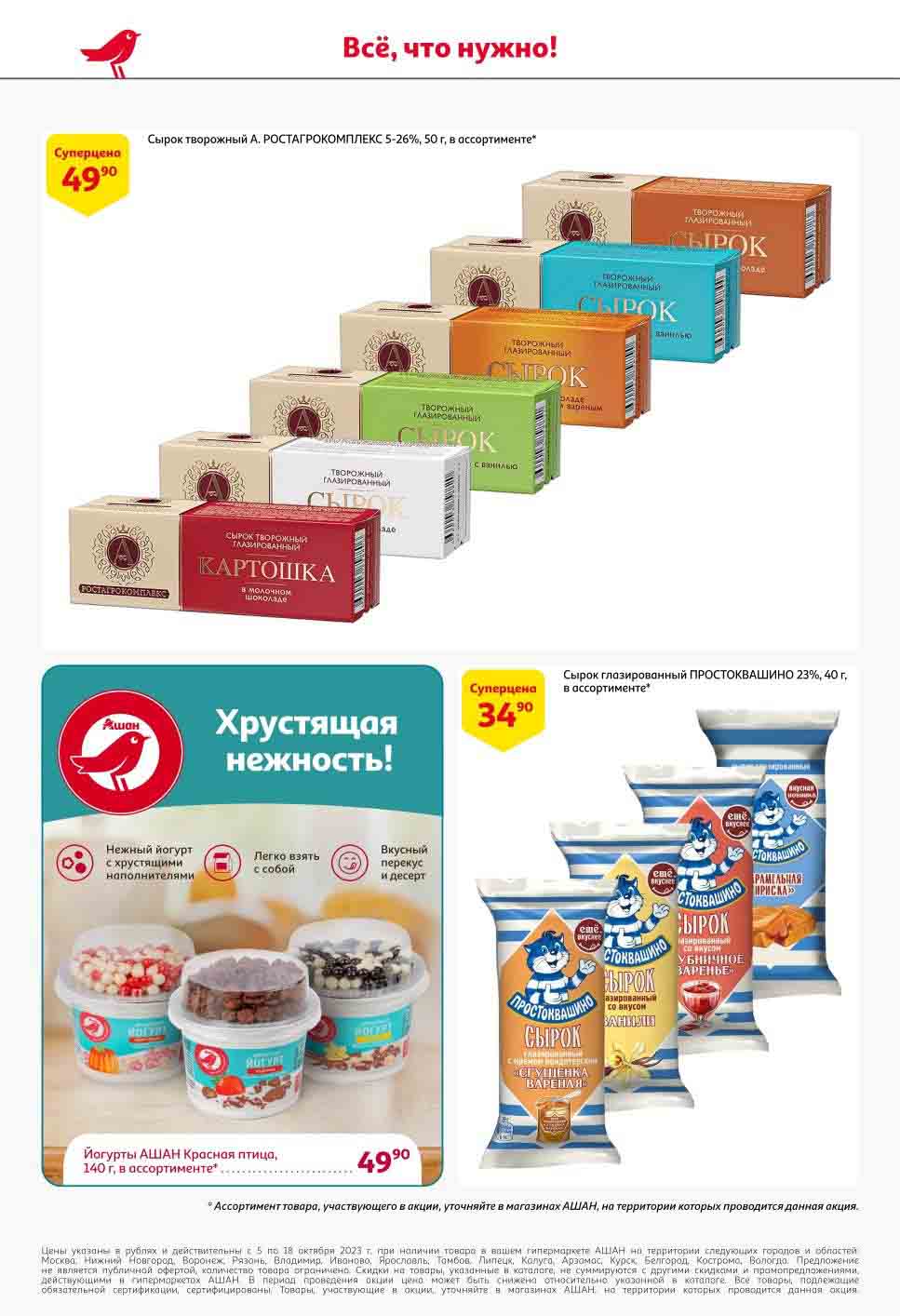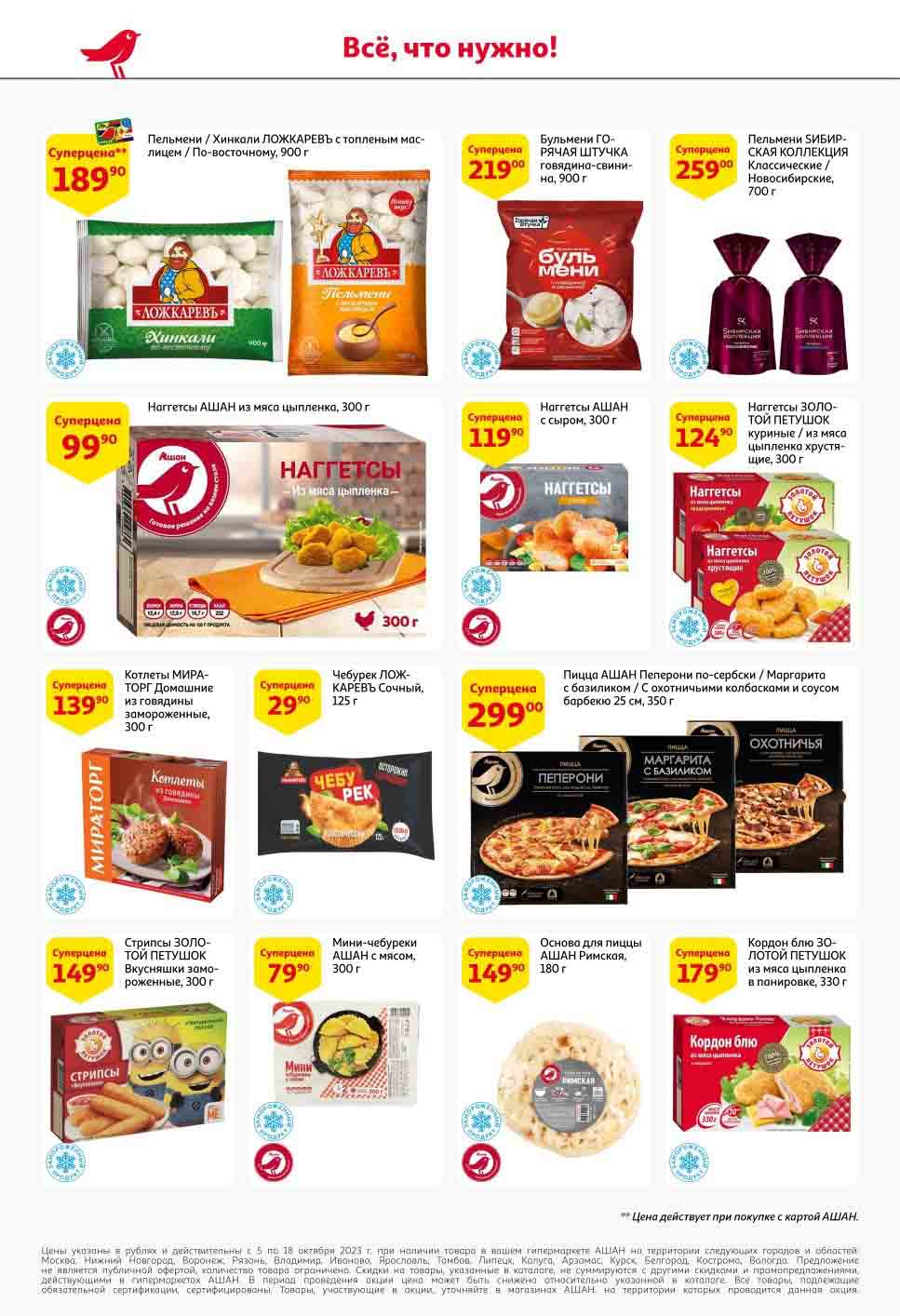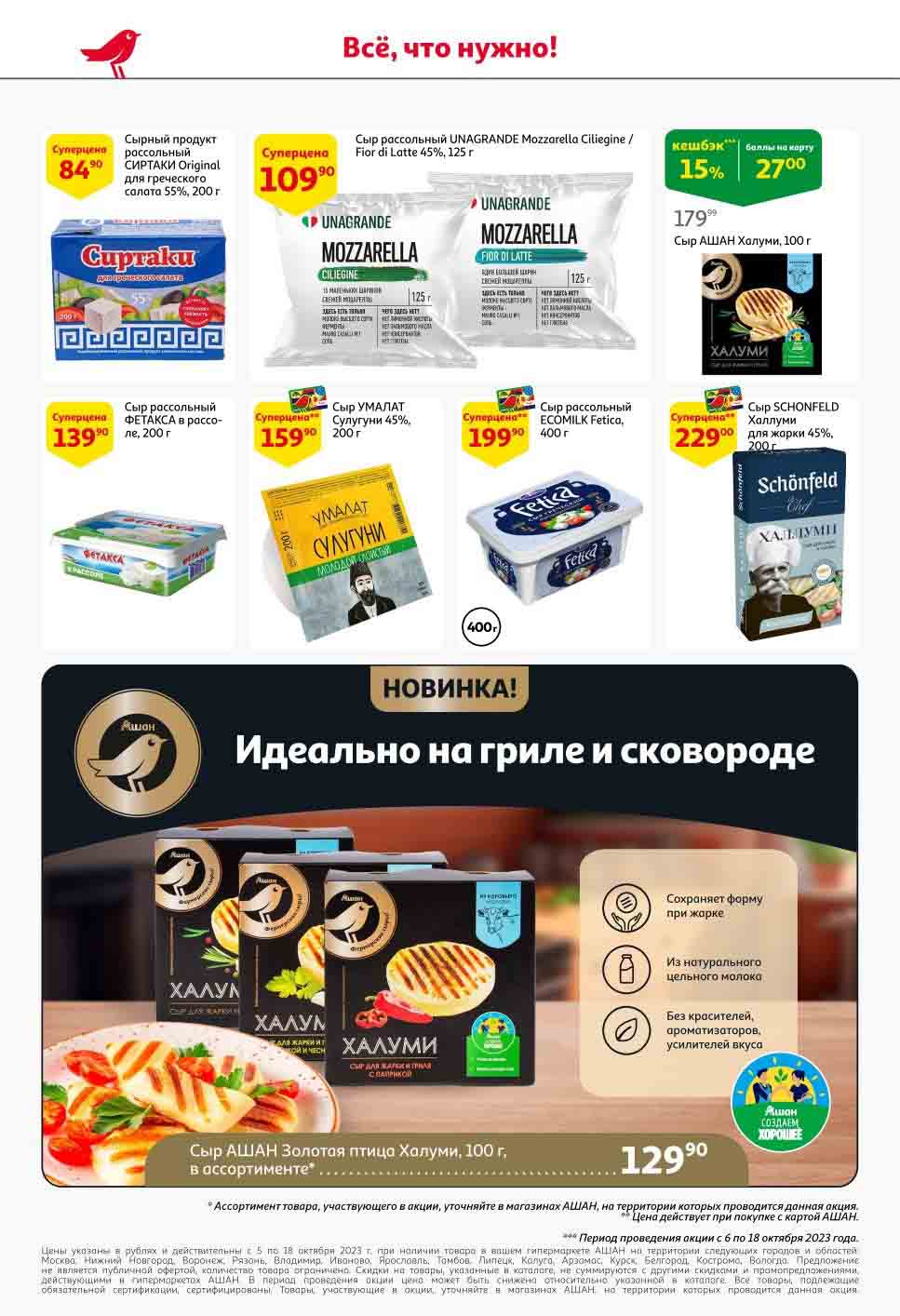 На страницах каталога Ашан вы найдете все свои любимые продукты, которые сейчас предлагаются в супермаркете. Не пропустите последние специальные предложения и сэкономьте на покупках. Предложение действительно при наличии товара на прилавках. Скидки на товары, указанные в каталоге, не суммируются с другими скидками. Изображения товаров могут незначительно отличаться от представленных на полках. Цены по акции Ашан действуют в городах: Москва. Балашиха. Химки. Подольск. Королев. Мытищи. Люберцы. Электросталь. Коломна. Одинцово. Железнодорожный, Серпухов, Орехово-Зуево. Красногорск, Щелково, Сергиев Посад, Пушкино. Жуковский, Ногинск, Раменское и многих других населенных пунктах Московского региона.