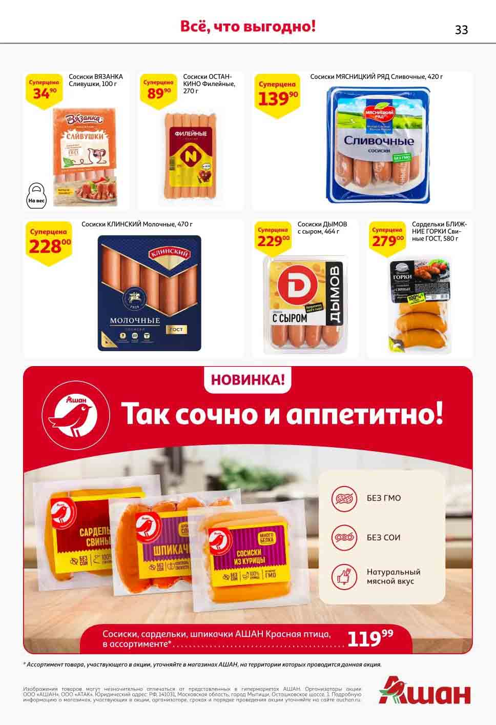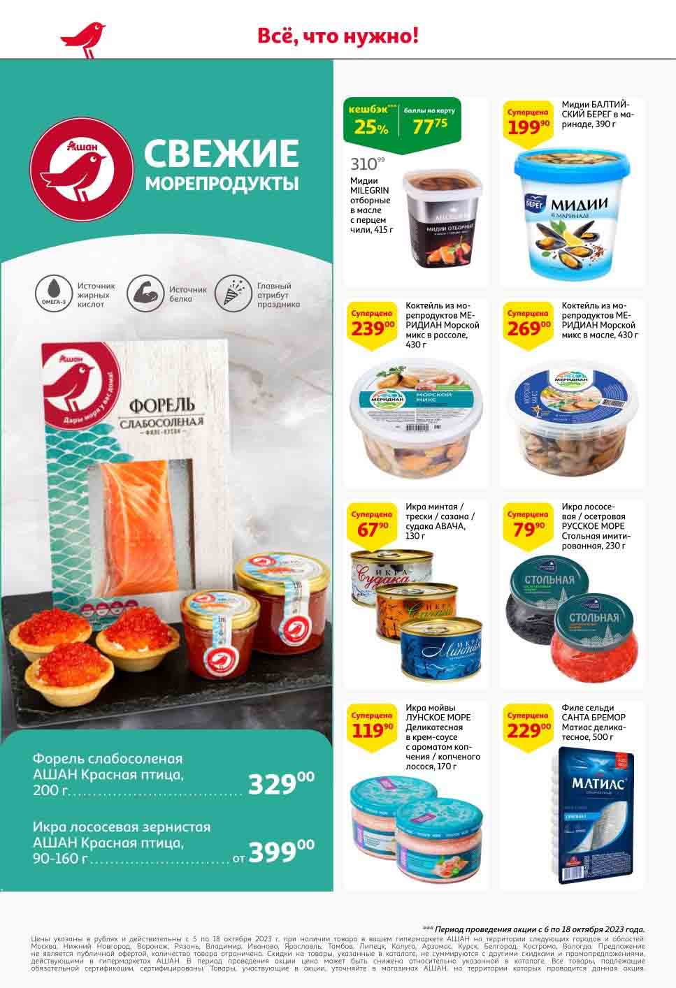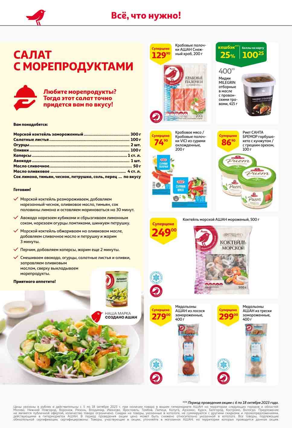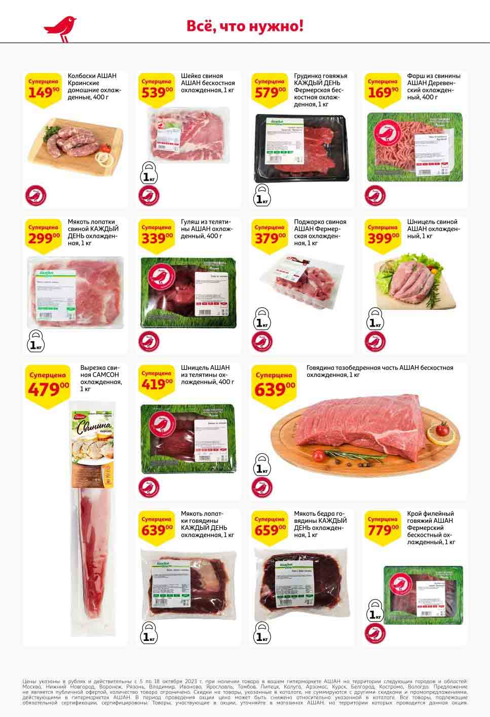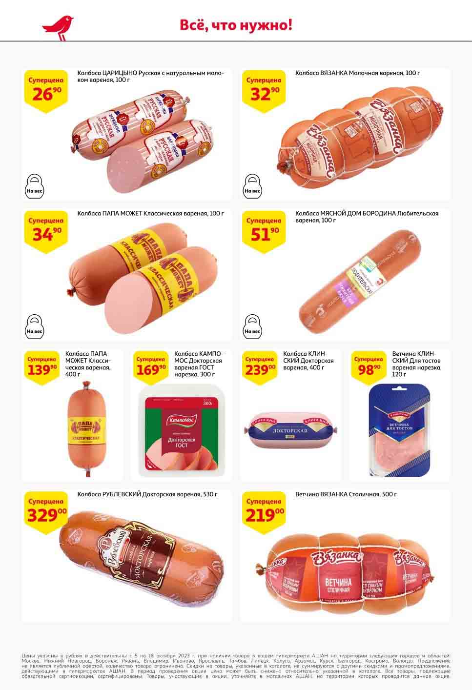 На страницах каталога Ашан вы найдете все свои любимые продукты, которые сейчас предлагаются в супермаркете. Не пропустите последние специальные предложения и сэкономьте на покупках. Предложение действительно при наличии товара на прилавках. Скидки на товары, указанные в каталоге, не суммируются с другими скидками. Изображения товаров могут незначительно отличаться от представленных на полках. Цены по акции Ашан действуют в городах: Москва. Балашиха. Химки. Подольск. Королев. Мытищи. Люберцы. Электросталь. Коломна. Одинцово. Железнодорожный, Серпухов, Орехово-Зуево. Красногорск, Щелково, Сергиев Посад, Пушкино. Жуковский, Ногинск, Раменское и многих других населенных пунктах Московского региона.