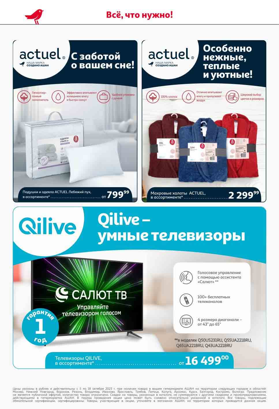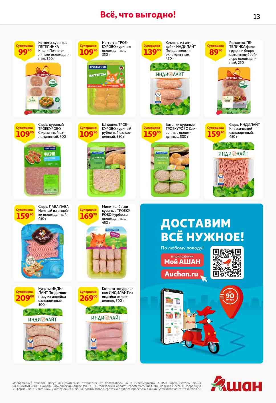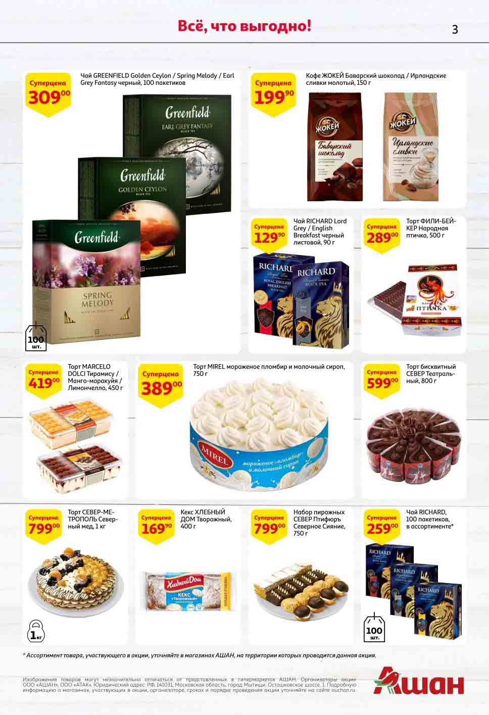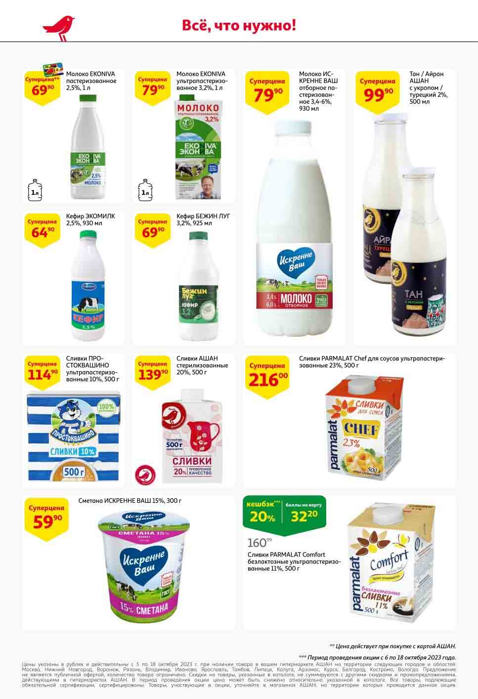 На страницах каталога Ашан вы найдете все свои любимые продукты, которые сейчас предлагаются в супермаркете. Не пропустите последние специальные предложения и сэкономьте на покупках. Предложение действительно при наличии товара на прилавках. Скидки на товары, указанные в каталоге, не суммируются с другими скидками. Изображения товаров могут незначительно отличаться от представленных на полках. Цены по акции Ашан действуют в городах: Москва. Балашиха. Химки. Подольск. Королев. Мытищи. Люберцы. Электросталь. Коломна. Одинцово. Железнодорожный, Серпухов, Орехово-Зуево. Красногорск, Щелково, Сергиев Посад, Пушкино. Жуковский, Ногинск, Раменское и многих других населенных пунктах Московского региона.