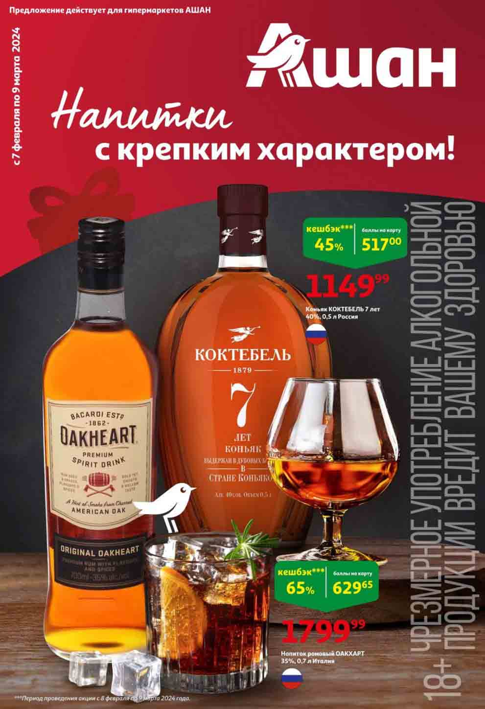 Ашан каталог с 7 февраля — 9 марта 2024. Каталог Напитки с крепким характером