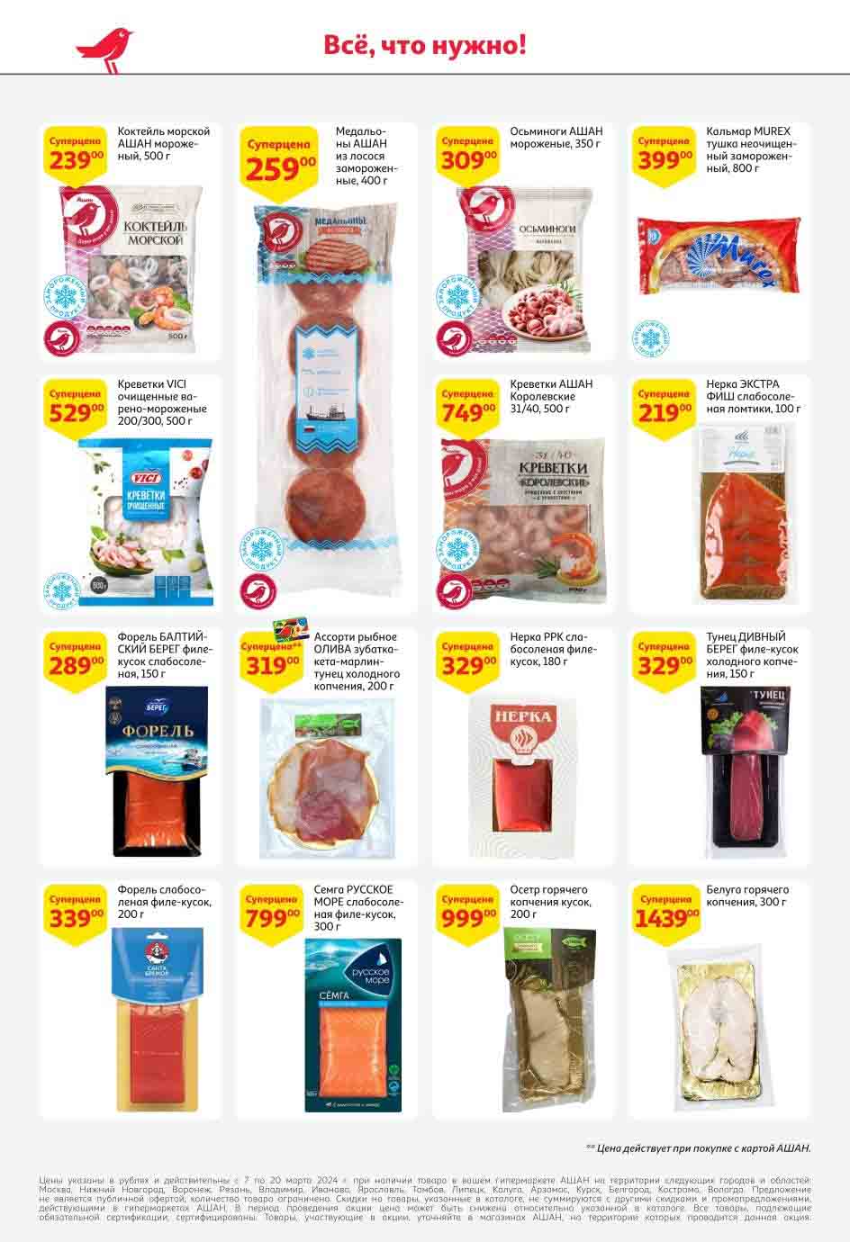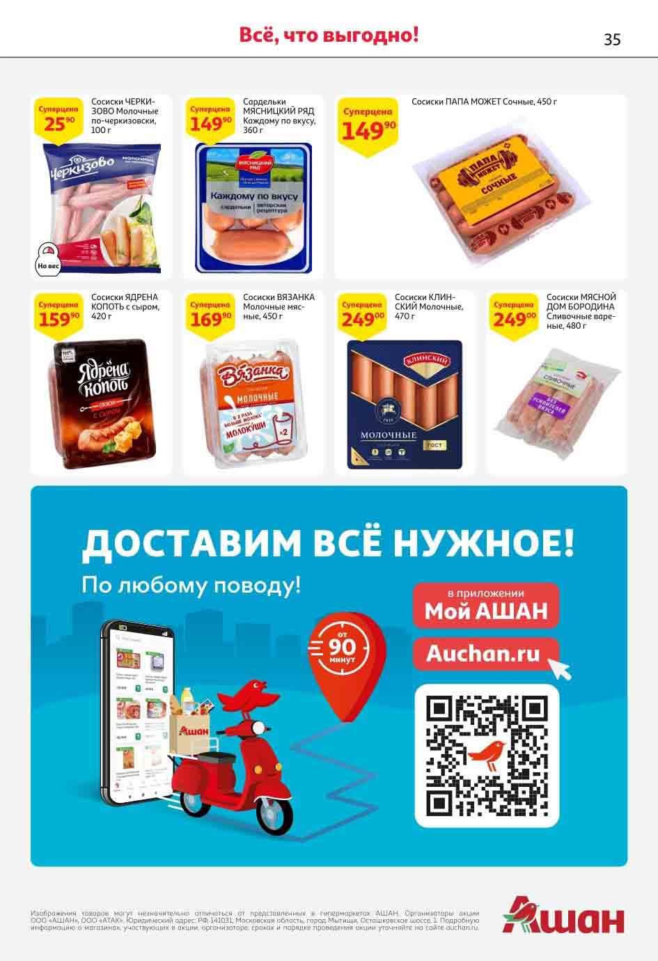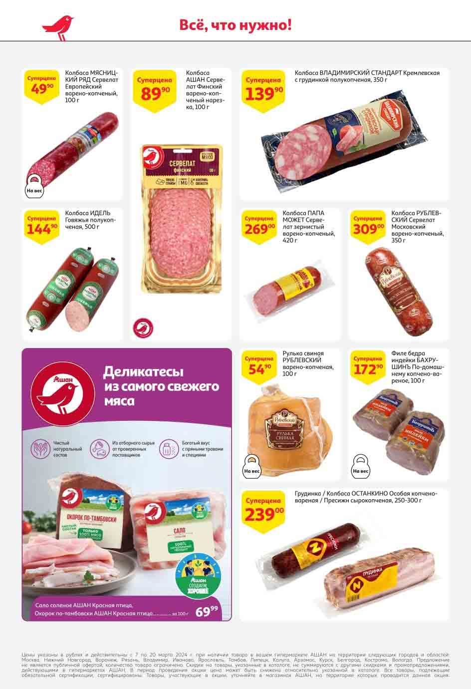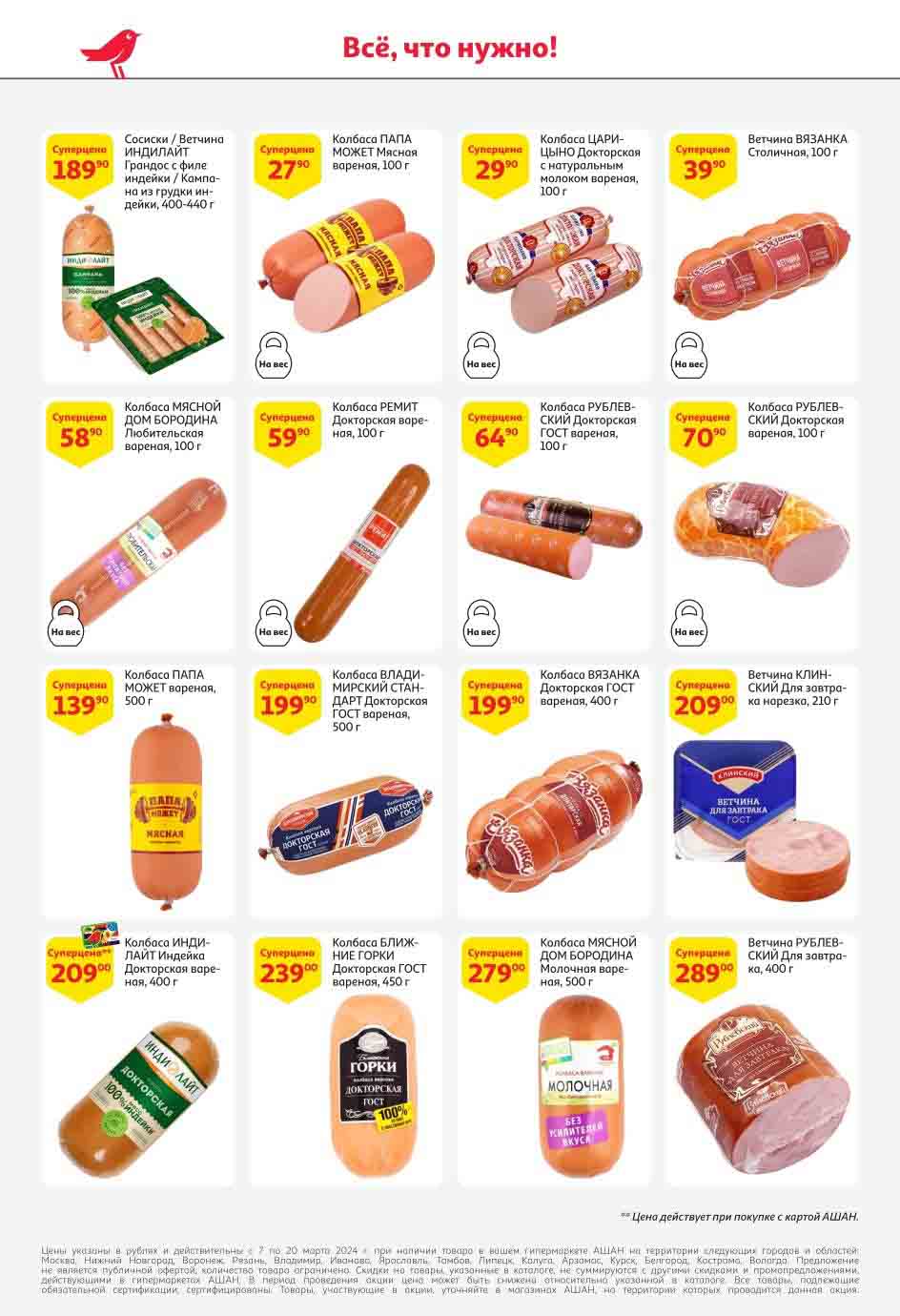 В акционном буклете предложены выгодные цены на различные продукты, такие как сосиски Вязанка рубленые — 183.99 руб., сметана 10% ПРОСТОКВАШИНО — 59.90 руб., форель Балтийский берег 150гр. за 289 руб. и многое другое.