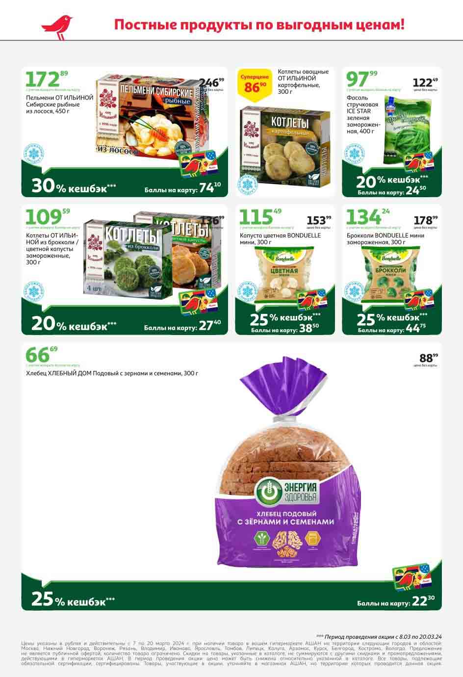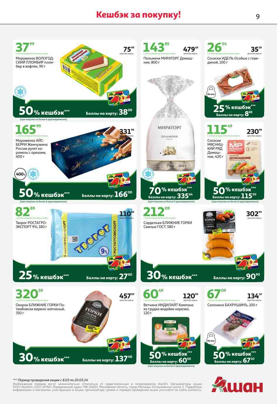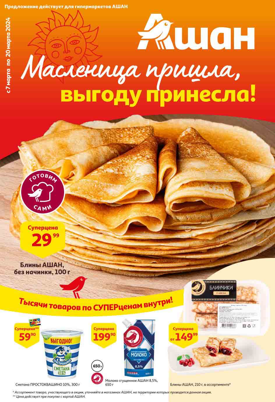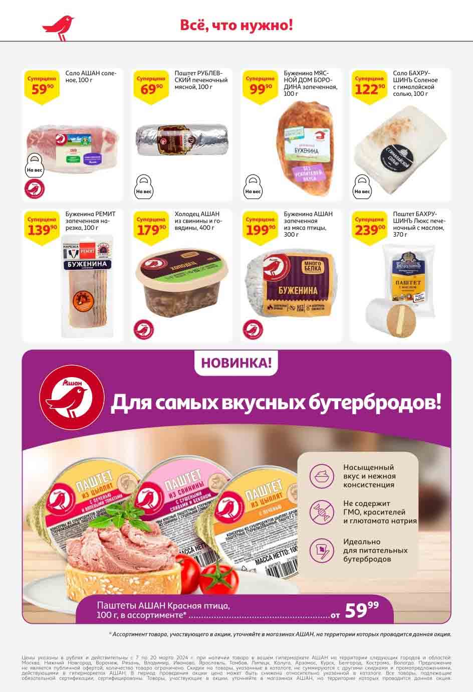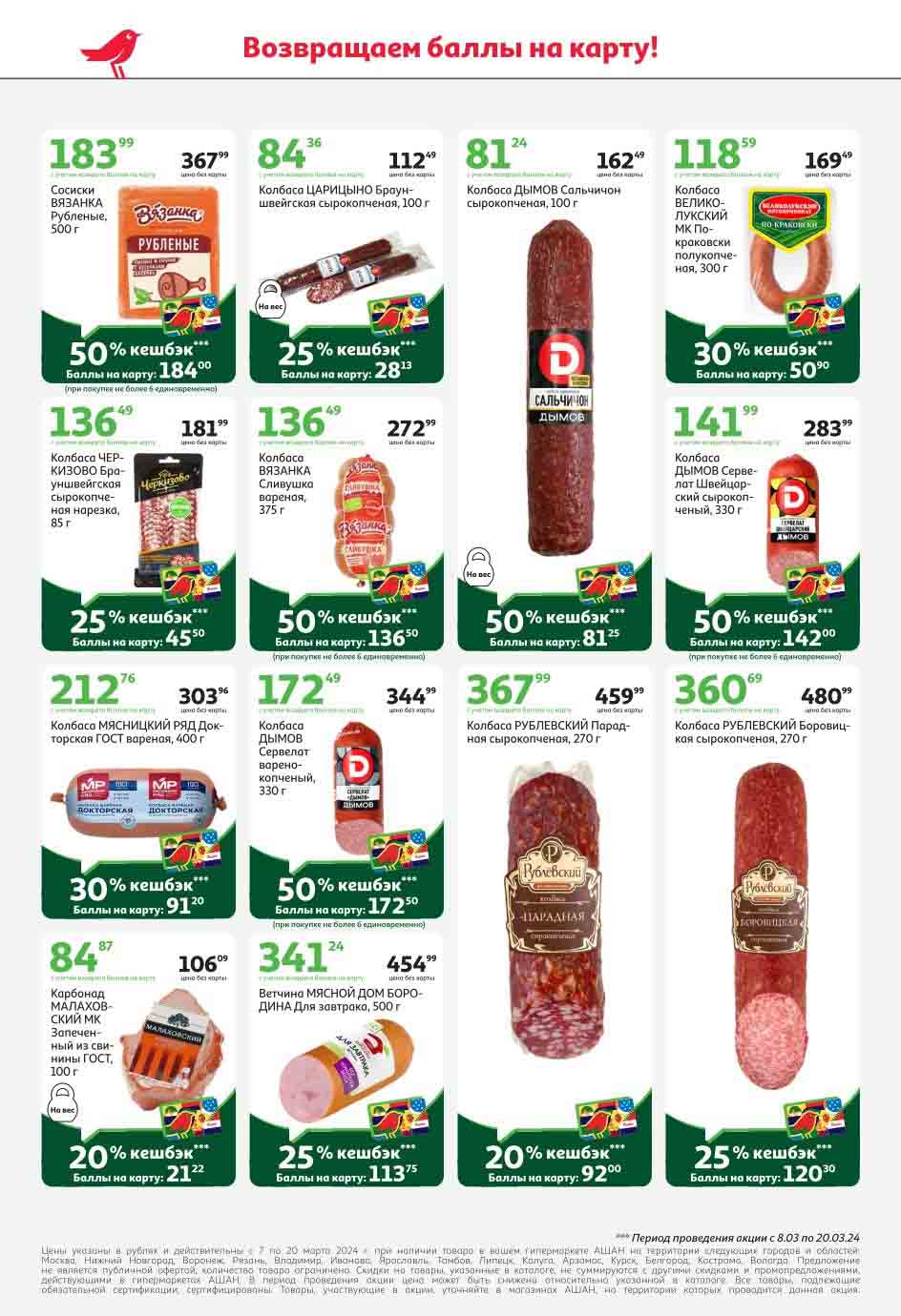 В акционном буклете предложены выгодные цены на различные продукты, такие как сосиски Вязанка рубленые — 183.99 руб., сметана 10% ПРОСТОКВАШИНО — 59.90 руб., форель Балтийский берег 150гр. за 289 руб. и многое другое.