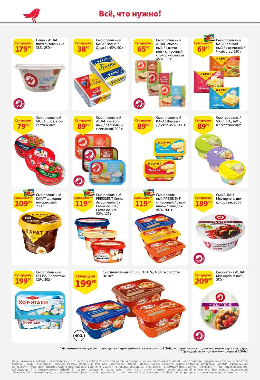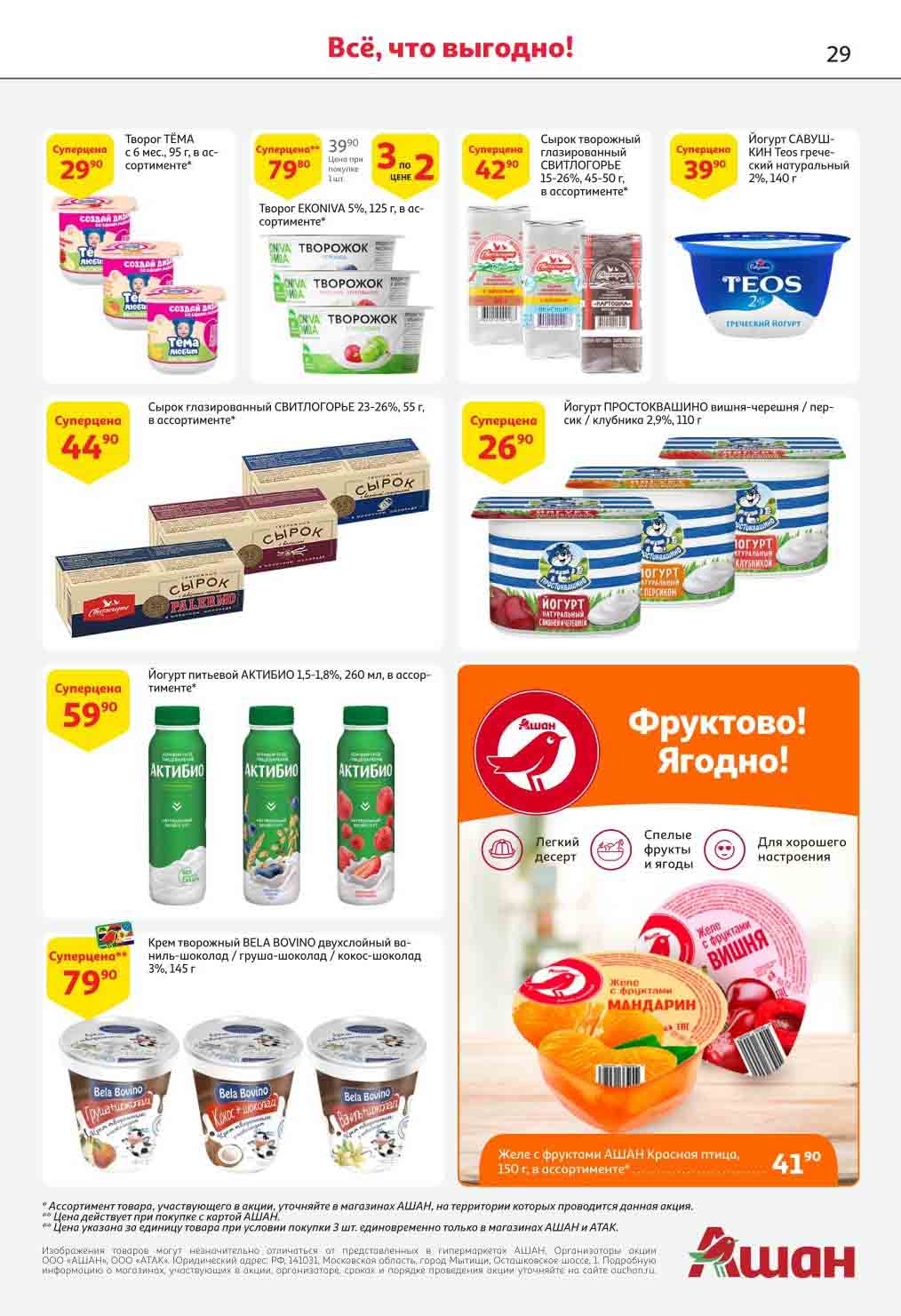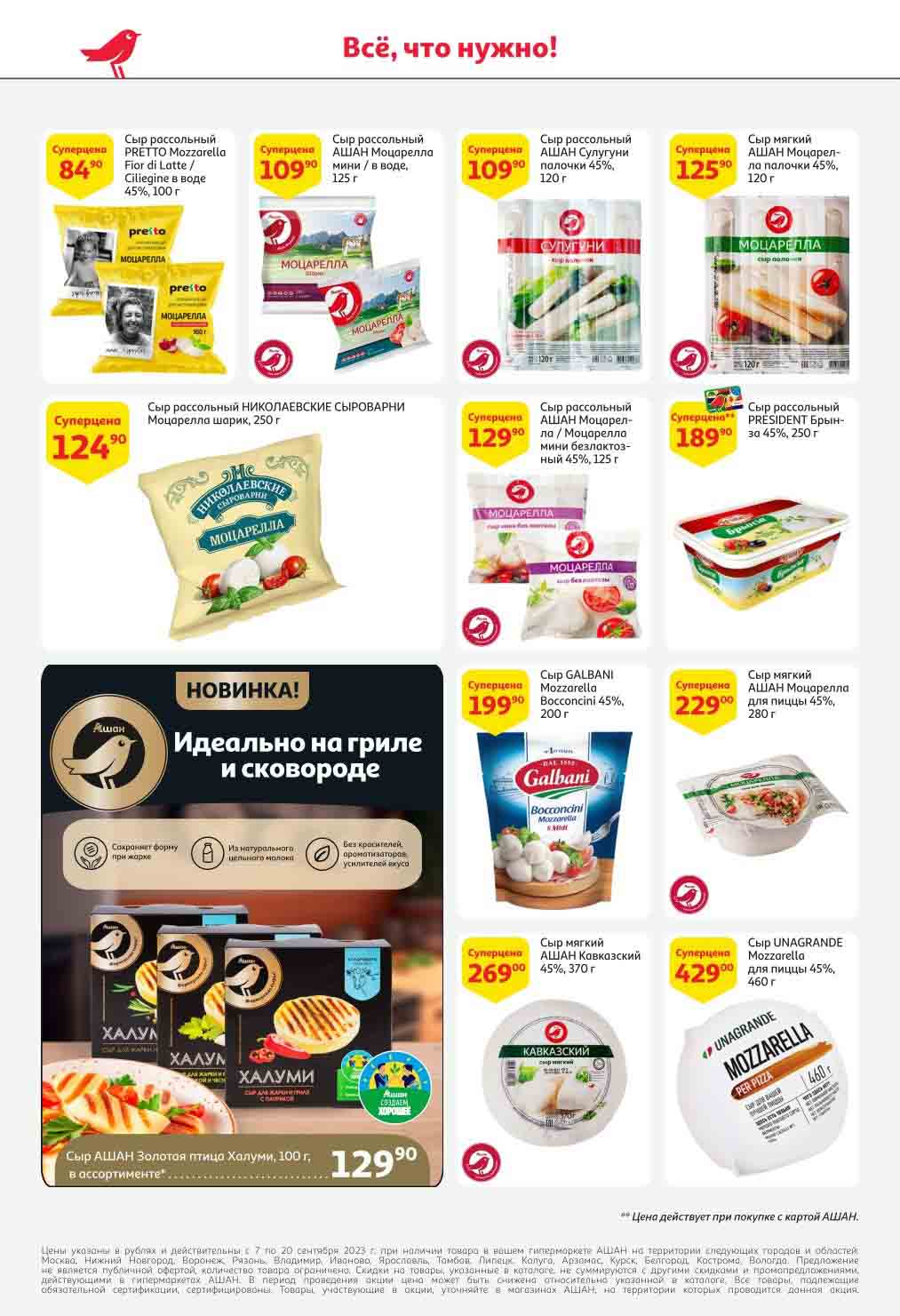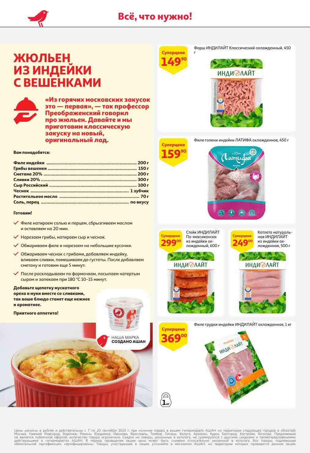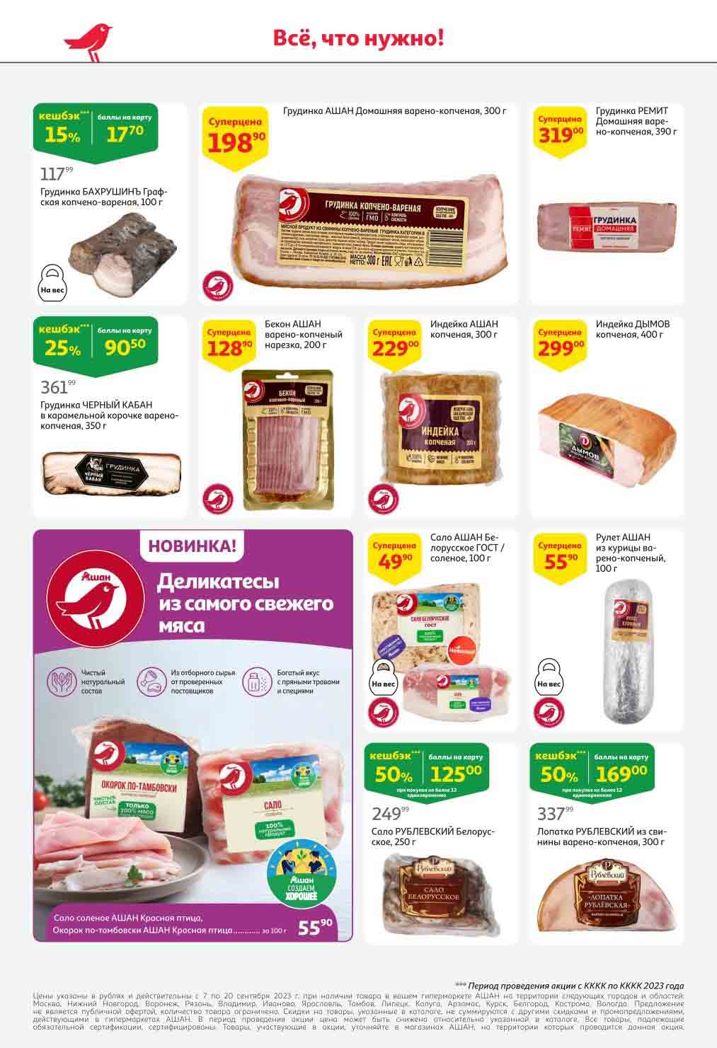 На страницах каталога Ашан вы найдете все свои любимые продукты, которые сейчас предлагаются в супермаркете. Не пропустите последние специальные предложения и сэкономьте на покупках. Предложение действительно при наличии товара на прилавках. Скидки на товары, указанные в каталоге, не суммируются с другими скидками. Изображения товаров могут незначительно отличаться от представленных на полках. Цены по акции Ашан действуют в городах: Москва. Балашиха. Химки. Подольск. Королев. Мытищи. Люберцы. Электросталь. Коломна. Одинцово. Железнодорожный, Серпухов, Орехово-Зуево. Красногорск, Щелково, Сергиев Посад, Пушкино. Жуковский, Ногинск, Раменское и многих других населенных пунктах Московского региона.