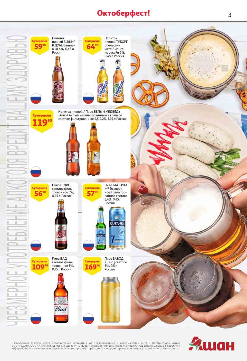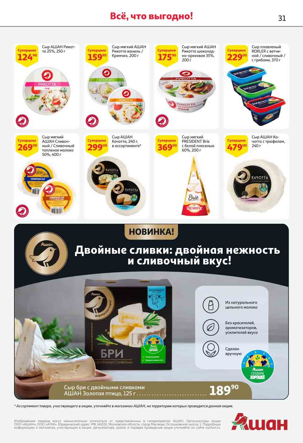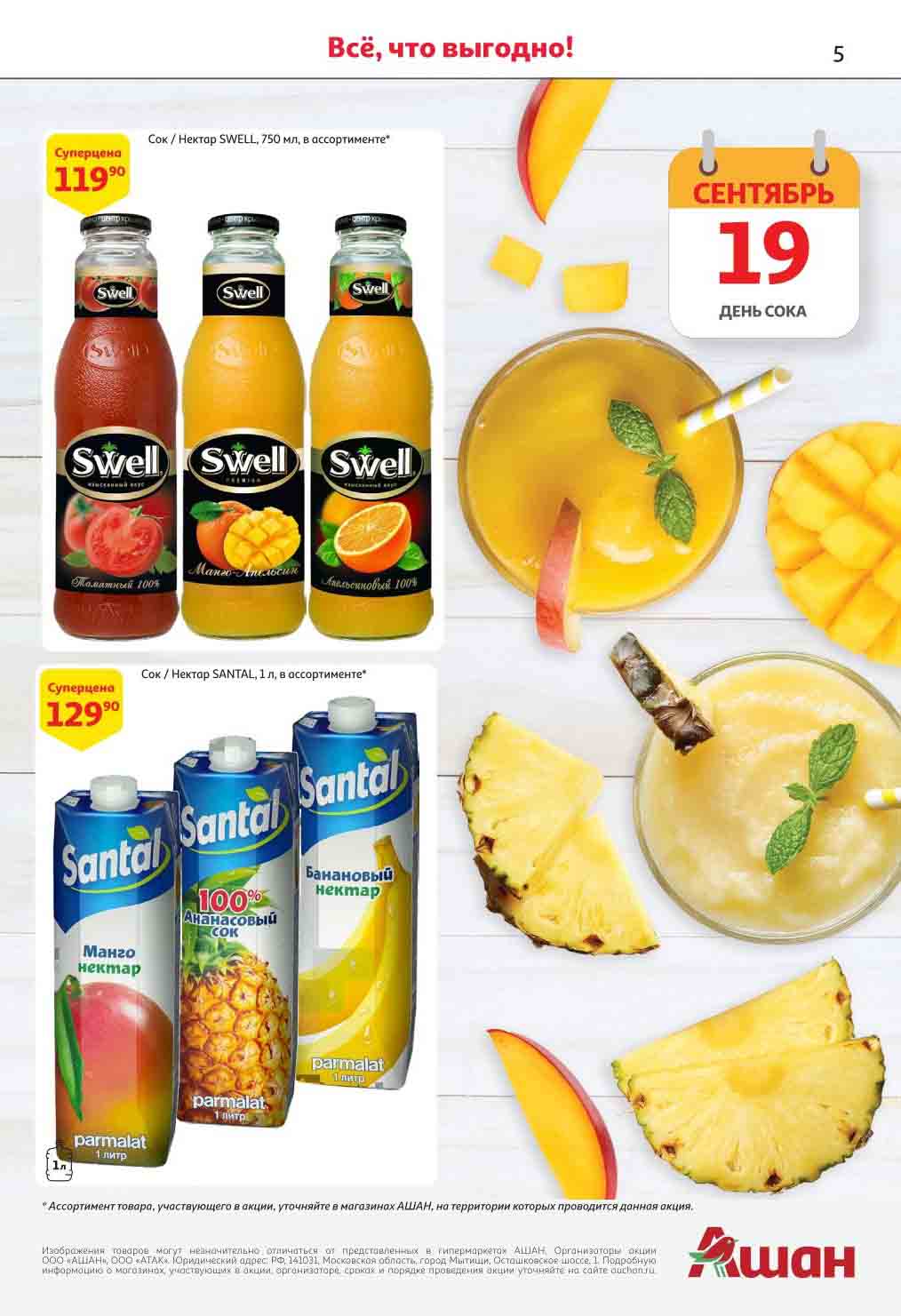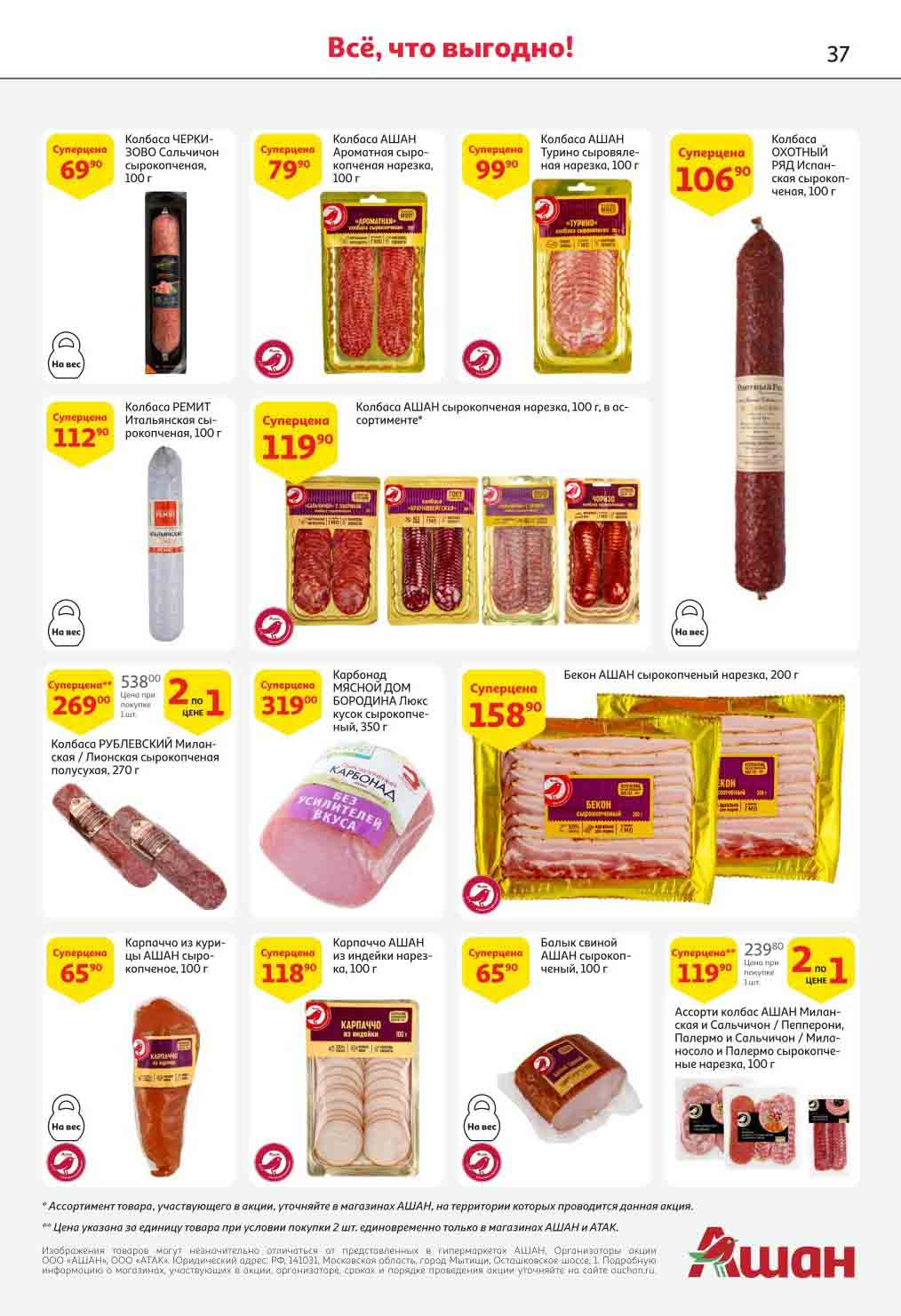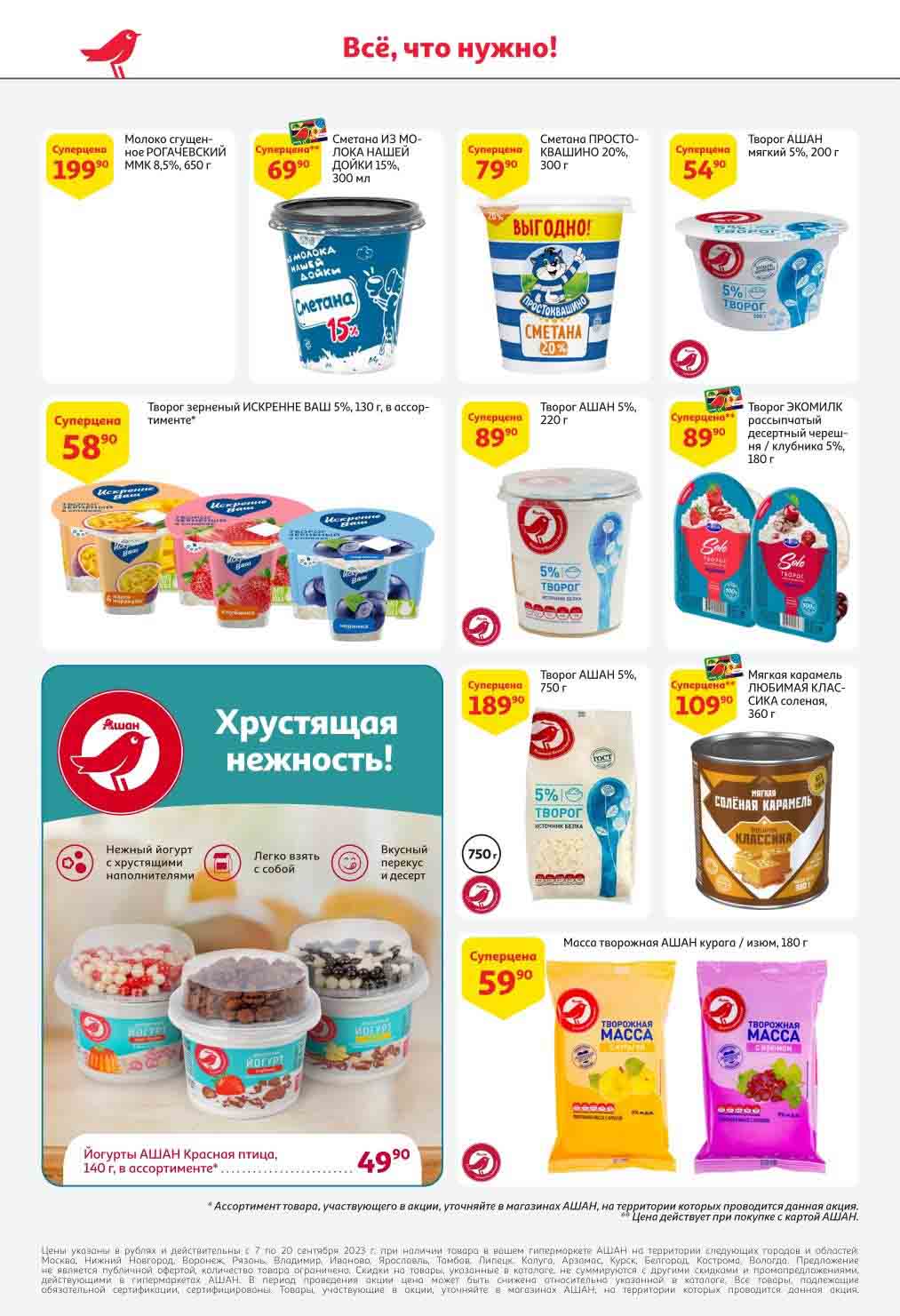 На страницах каталога Ашан вы найдете все свои любимые продукты, которые сейчас предлагаются в супермаркете. Не пропустите последние специальные предложения и сэкономьте на покупках. Предложение действительно при наличии товара на прилавках. Скидки на товары, указанные в каталоге, не суммируются с другими скидками. Изображения товаров могут незначительно отличаться от представленных на полках. Цены по акции Ашан действуют в городах: Москва. Балашиха. Химки. Подольск. Королев. Мытищи. Люберцы. Электросталь. Коломна. Одинцово. Железнодорожный, Серпухов, Орехово-Зуево. Красногорск, Щелково, Сергиев Посад, Пушкино. Жуковский, Ногинск, Раменское и многих других населенных пунктах Московского региона.