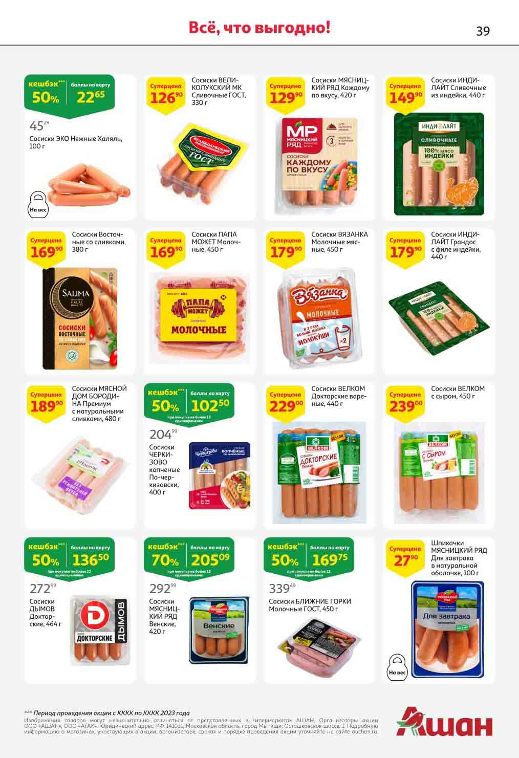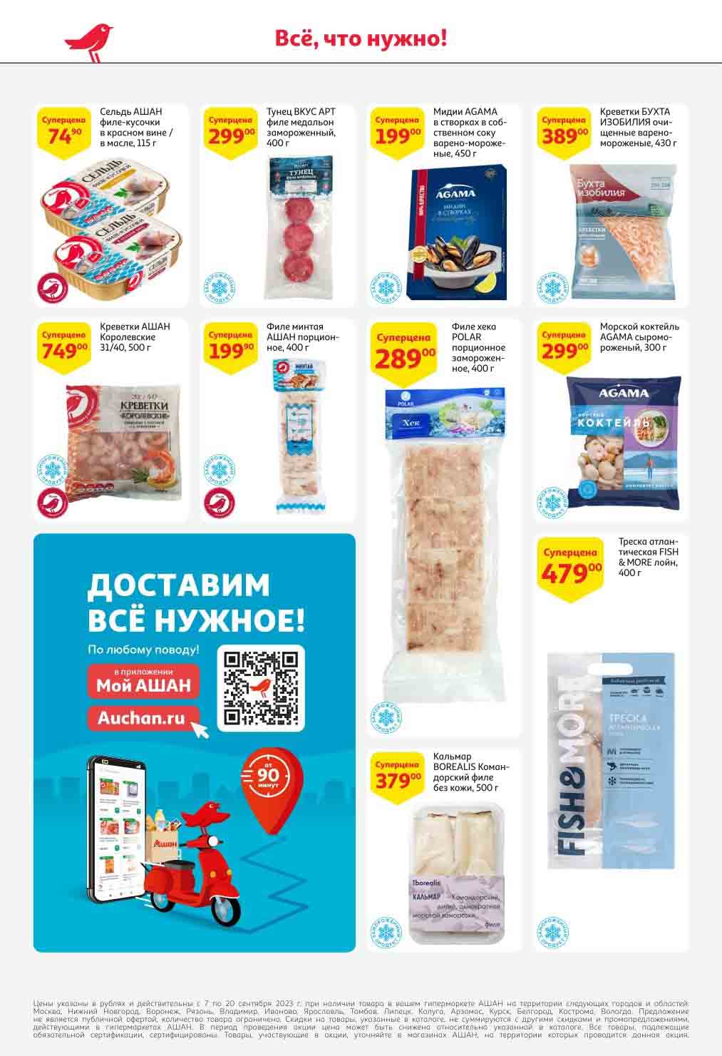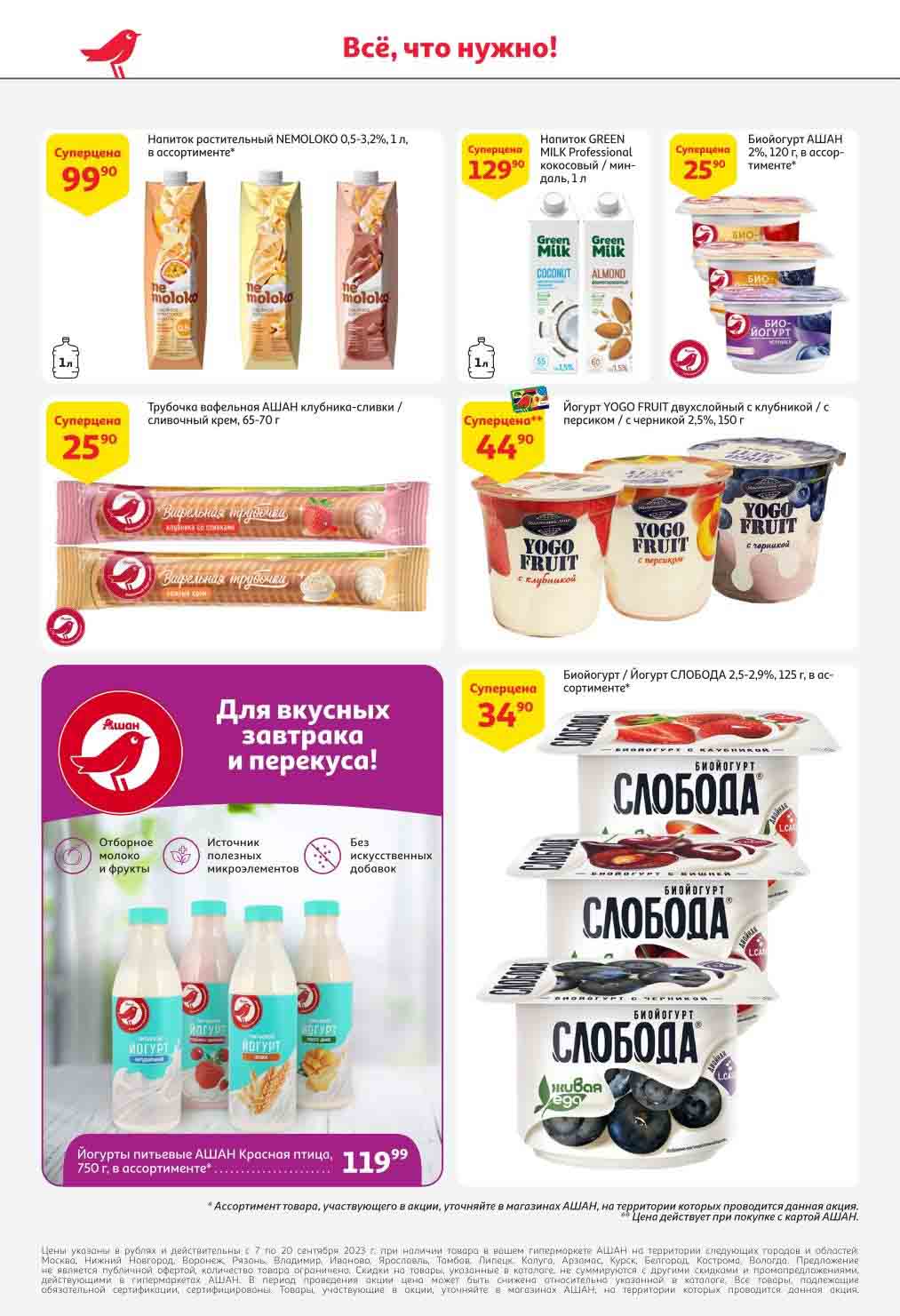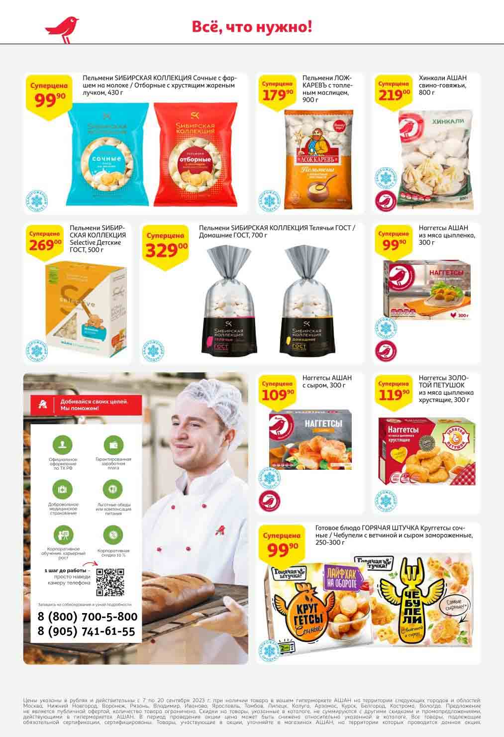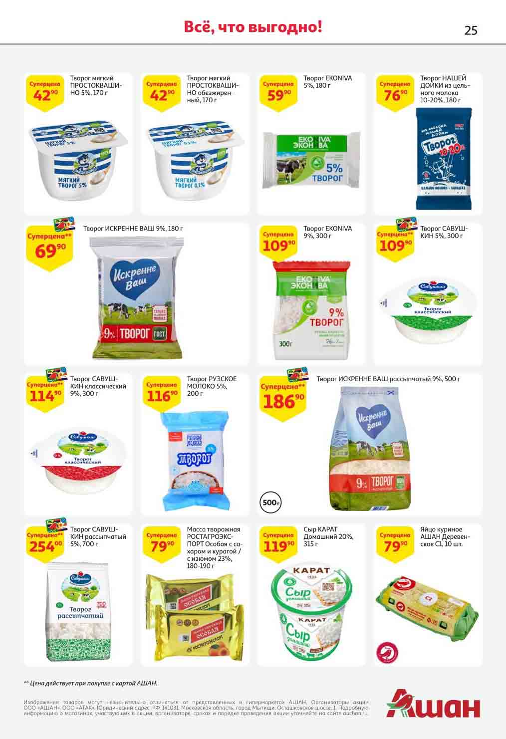 На страницах каталога Ашан вы найдете все свои любимые продукты, которые сейчас предлагаются в супермаркете. Не пропустите последние специальные предложения и сэкономьте на покупках. Предложение действительно при наличии товара на прилавках. Скидки на товары, указанные в каталоге, не суммируются с другими скидками. Изображения товаров могут незначительно отличаться от представленных на полках. Цены по акции Ашан действуют в городах: Москва. Балашиха. Химки. Подольск. Королев. Мытищи. Люберцы. Электросталь. Коломна. Одинцово. Железнодорожный, Серпухов, Орехово-Зуево. Красногорск, Щелково, Сергиев Посад, Пушкино. Жуковский, Ногинск, Раменское и многих других населенных пунктах Московского региона.