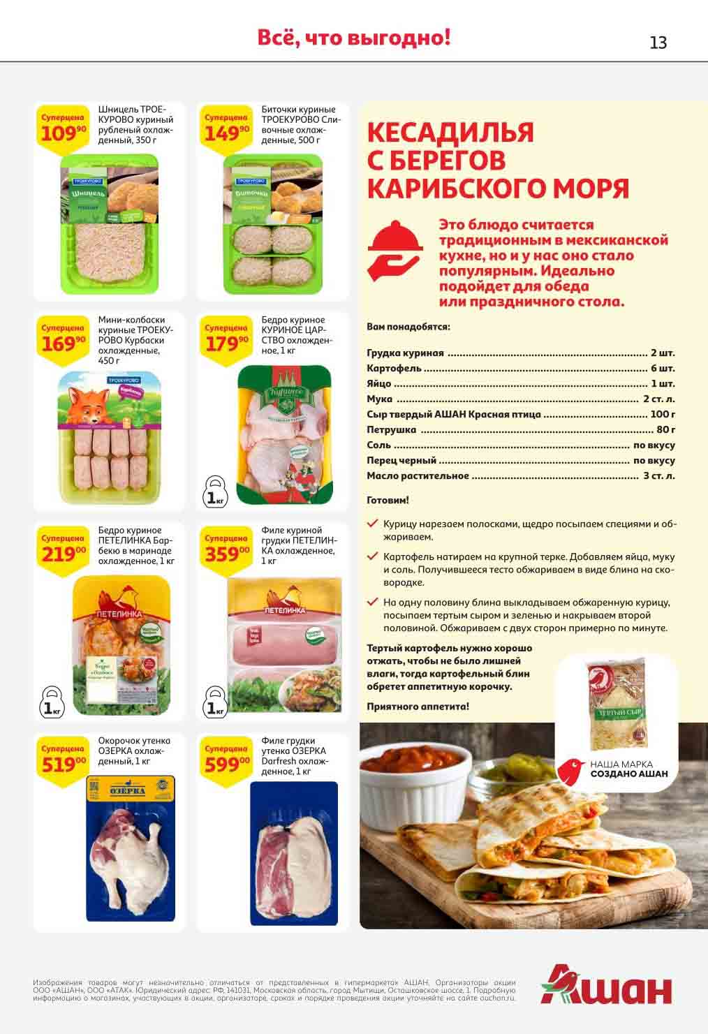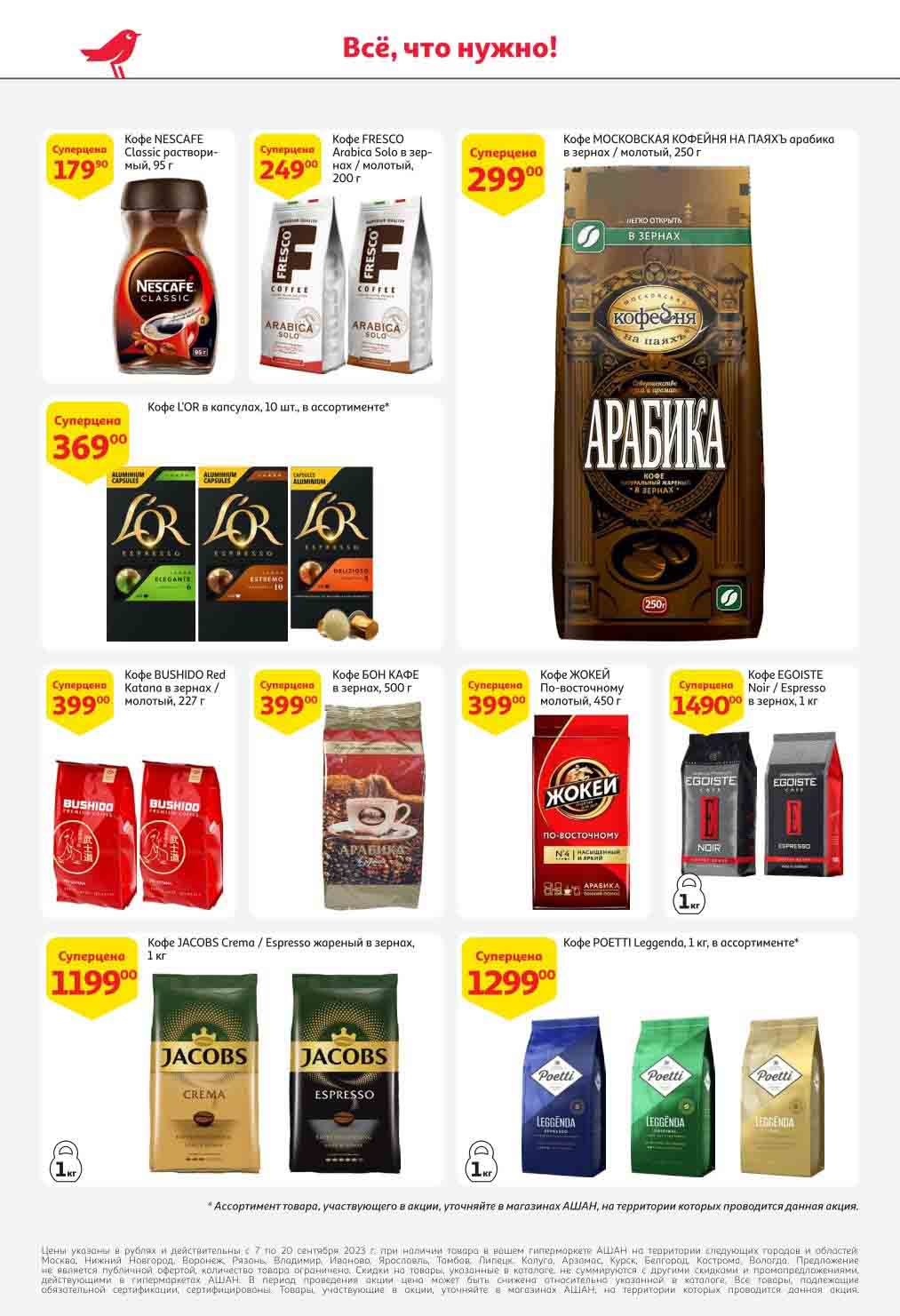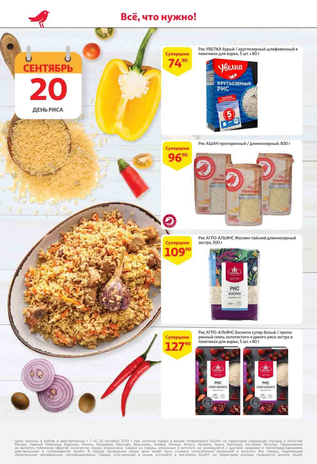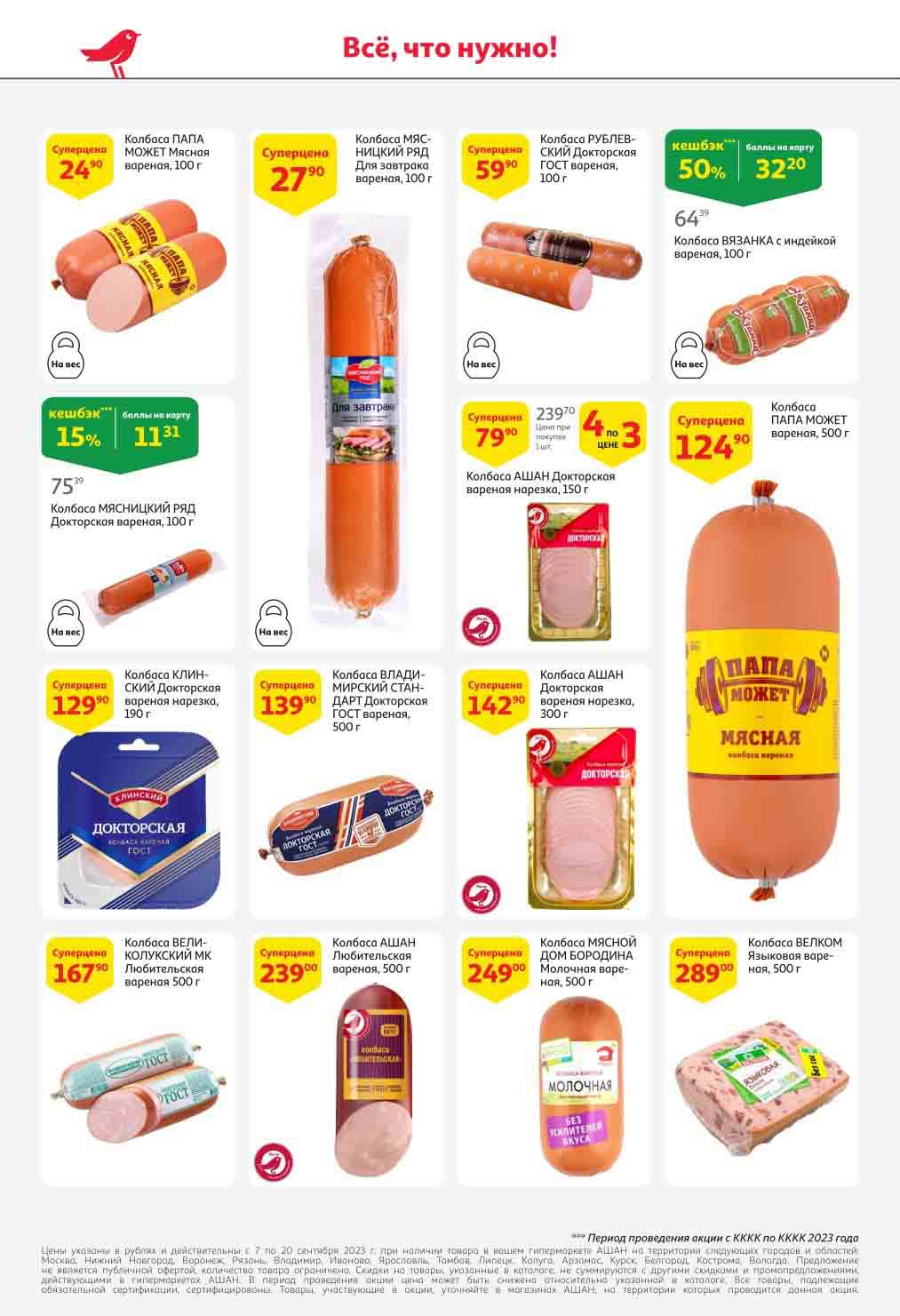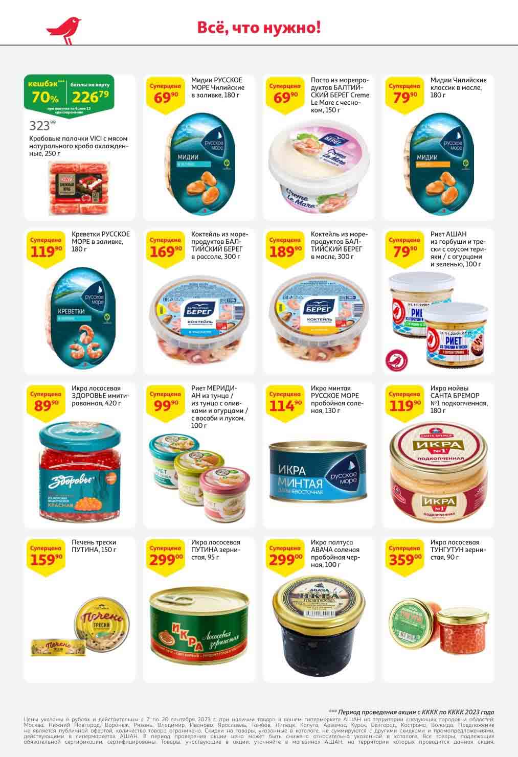 На страницах каталога Ашан вы найдете все свои любимые продукты, которые сейчас предлагаются в супермаркете. Не пропустите последние специальные предложения и сэкономьте на покупках. Предложение действительно при наличии товара на прилавках. Скидки на товары, указанные в каталоге, не суммируются с другими скидками. Изображения товаров могут незначительно отличаться от представленных на полках. Цены по акции Ашан действуют в городах: Москва. Балашиха. Химки. Подольск. Королев. Мытищи. Люберцы. Электросталь. Коломна. Одинцово. Железнодорожный, Серпухов, Орехово-Зуево. Красногорск, Щелково, Сергиев Посад, Пушкино. Жуковский, Ногинск, Раменское и многих других населенных пунктах Московского региона.